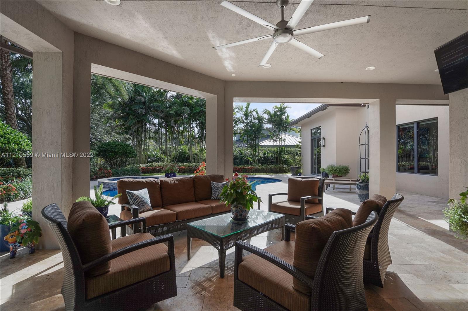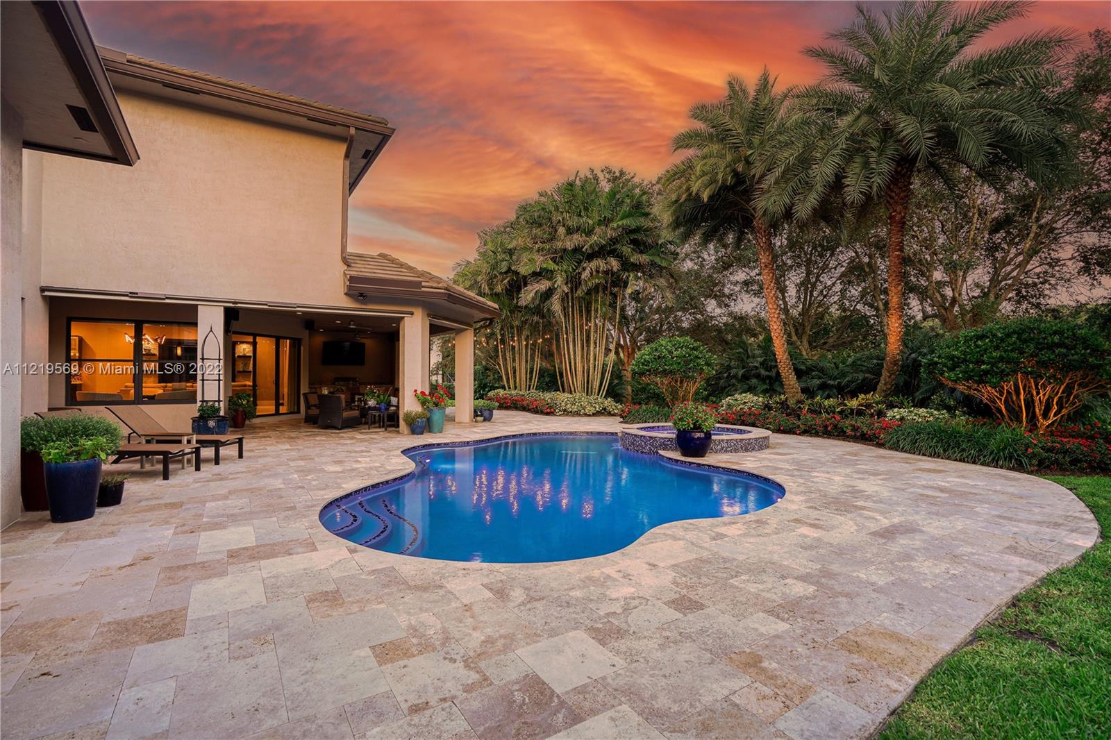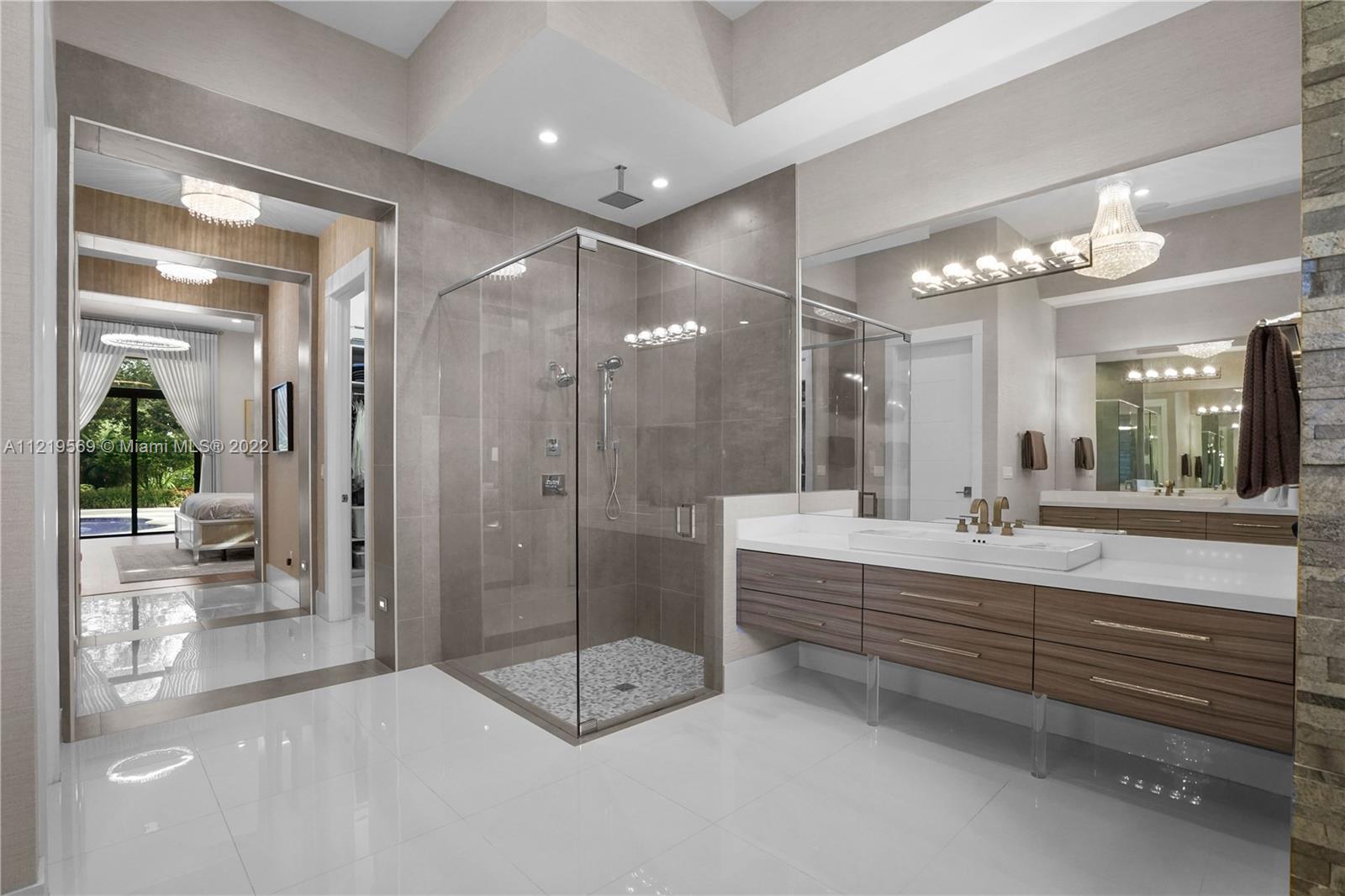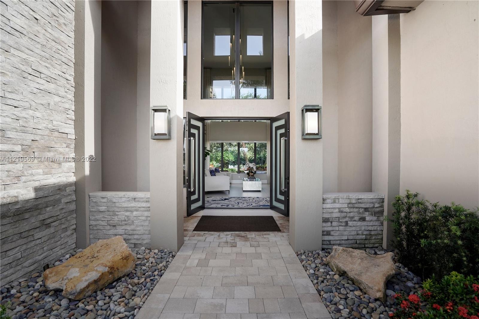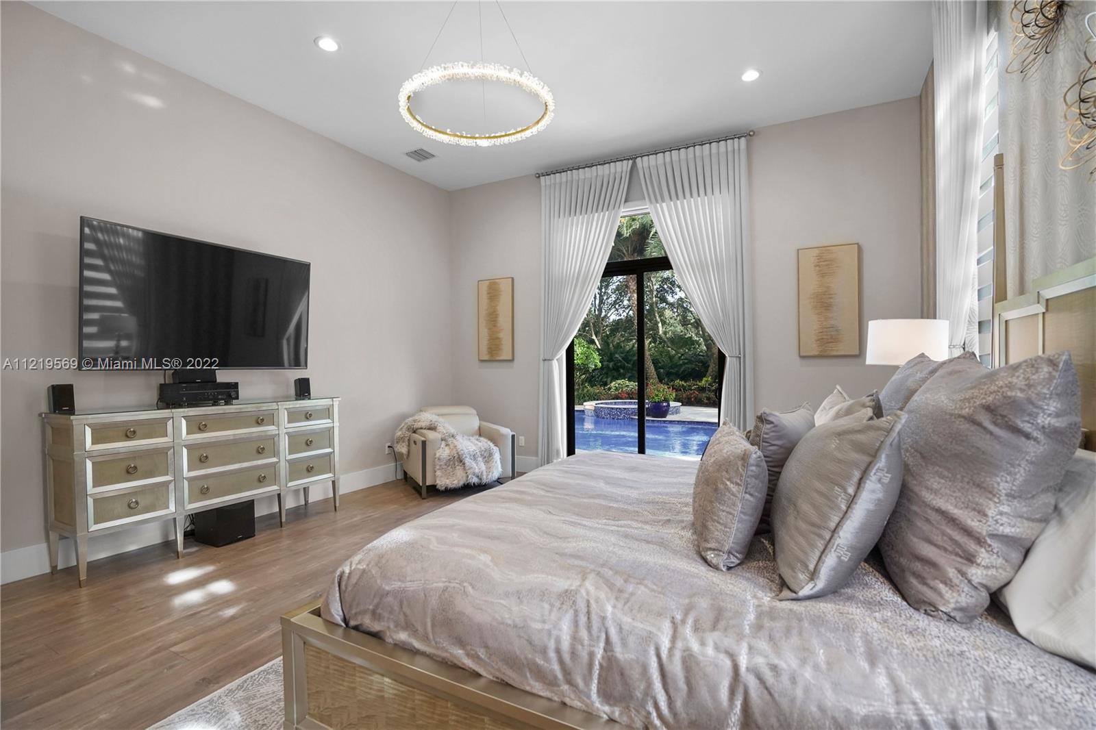 This home is an entertainer's dream! A true tropical oasis with a contemporary modern design in Davie's most sought after gated community- Grand Oaks Estates. Featuring 5 bedrooms, 5 full baths, 4 car garage, office with custom shelving, impressive audio package, smart home with a chef's kitchen and gas stovetop. This home presents in an airy comfortable way, open concept formal living area with soaring ceilings, gourmet kitchen featuring touch open custom cabinetry, Quartz countertops, lighting details throughout and a large family room! Oversized primary suite on the ground floor with spacious closets, romantic hallway lighting details and an exquisite primary bath. Second floor features guest bedrooms & loft. Finest S.Fl. living enjoy your pool, jacuzzi spa with surround sound audio!