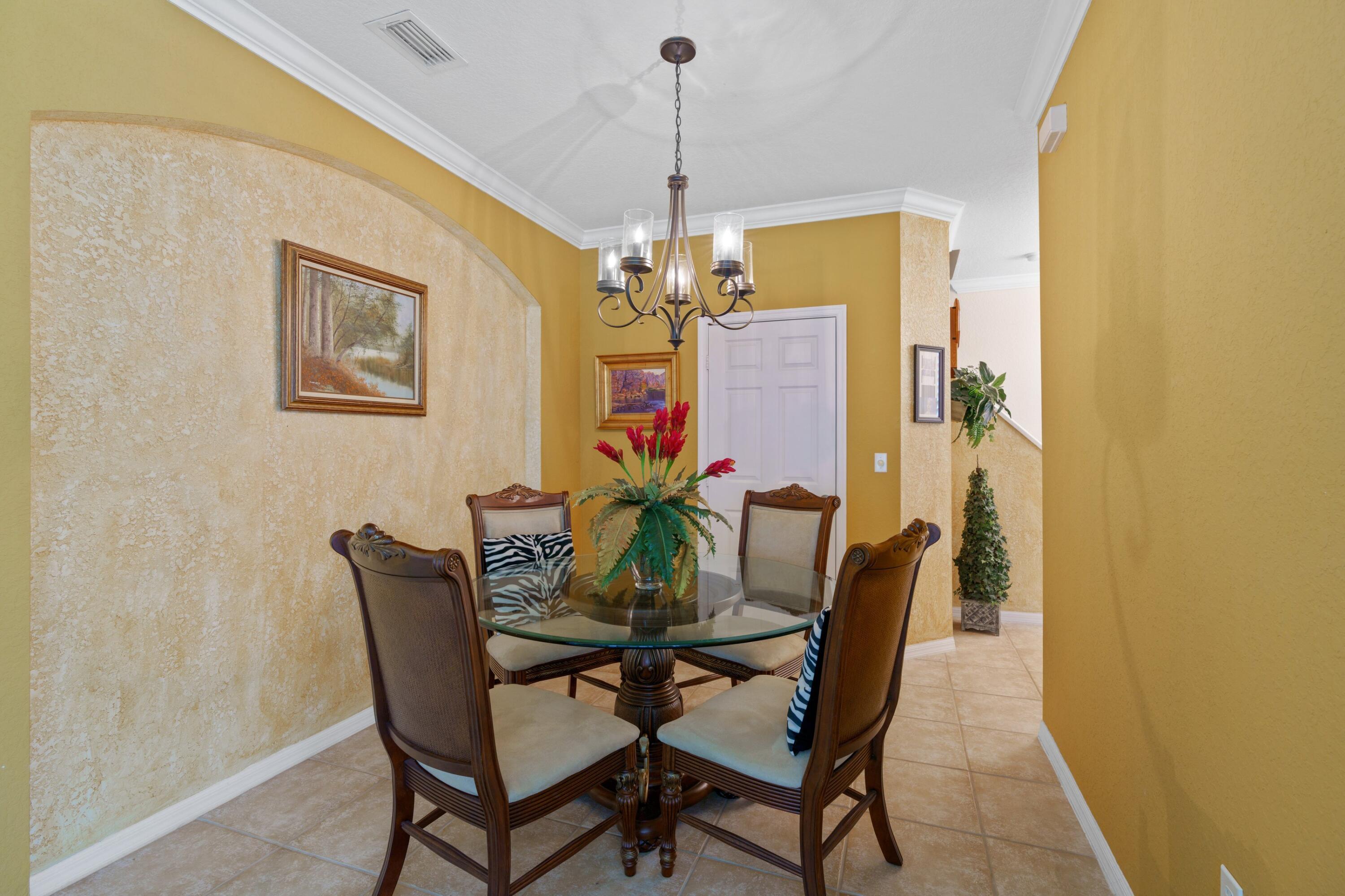 Welcome home to a beautiful meticulously maintained 2-story townhome! Features include tile throughout on first floor, Kitchen with wood cabinetry, Pantry, Dining Area, Living Room, Powder Room, Crown molding throughout and Plantation Shutters. Second Floor features Primary Bedroom w/ Walk-in Closet w/ built-ins & additional closet, Primary Bathroom with Double Sinks, & Soaking Tub. Two Additional Bedrooms with Closets, full size bathroom w/ tub! 2 Car Garage and on a Corner Lot with beautiful trees & plenty of grass area! This sought-after man gated community includes a pool, tennis, pickle ball, tennis, basketball & racquet ball courts, children's playground, plus walking path for evening walks. Minutes from I-95, the beach plus shopping & Dining.