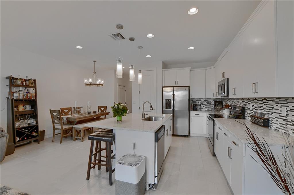 MUST SEE! Luxurious lake view townhome featuring 3 bedrooms and 2.5 bathrooms, build in 2019 in very desirable gated community Enclave. Open floor plan offers the beautiful kitchen with white shaker cabinets, kitchen island, stainless steel appliances and quartz countertops that is perfect for entertainment. All three bedrooms are upstairs, along with the convenient laundry room that comes with extra storage. Owner's suite offers a walk-in closet and large shower with a double sink. Home comes with designer features, custom light fixtures and fans in the living, kitchen, bedrooms and bathrooms area. Community amenities include clubhouse, fitness center, pool & Spa.