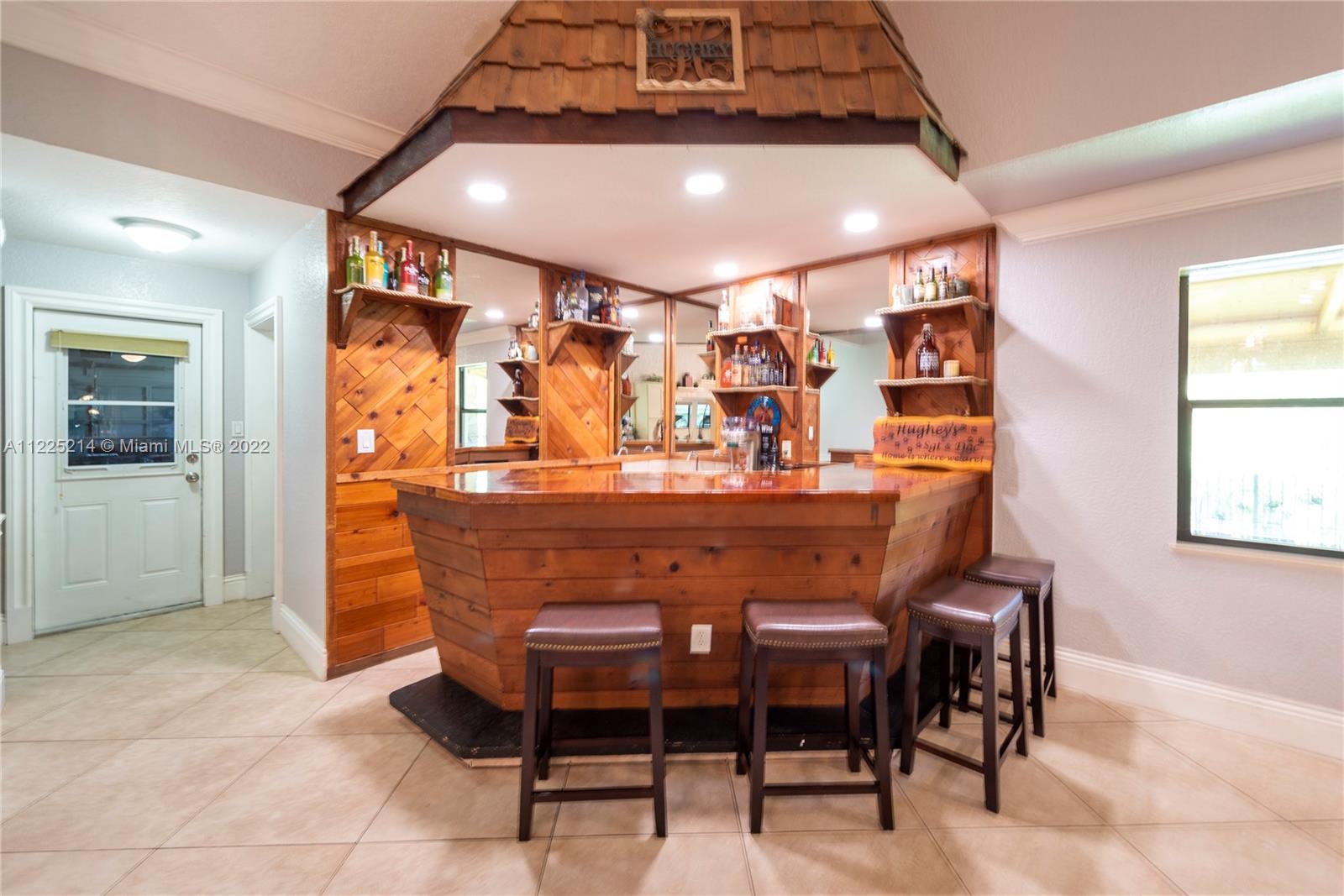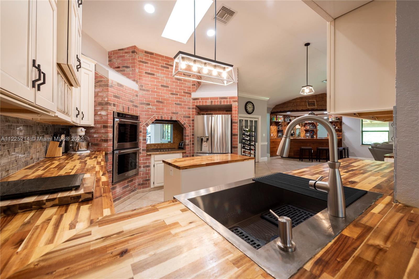 Spacious 4-bed/3.5-bath home w/large circular driveway sits on 1+ acres lot in Pine Tree Estates, Parkland. Lots of room for an RV/Boat. NO HOA! Large open spaces and skylights make this home bright & cheerful. Impact windows throughout. Newer roof installed 2020. Numerous upgrades. This home was built for entertaining & includes a beautiful Bar area, formal Dining & Living Rooms, sunken Conversation Pit, Family Room, & 31' long Great Room! Brand new 2021 kitchen w/lots of storage, lg center island & butcher block countertops. Fully fenced yard & outdoor shower is perfect for family & pets to play safely. Pool w/waterfall feature, Summer Kitchen & seating areas fully enclosed by hurricane impact screening. Dedicated electric & hookups for your generator. Newer A/C. Excellent schools!