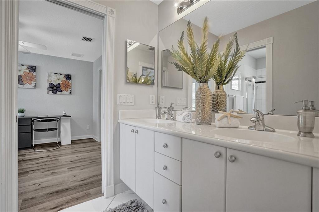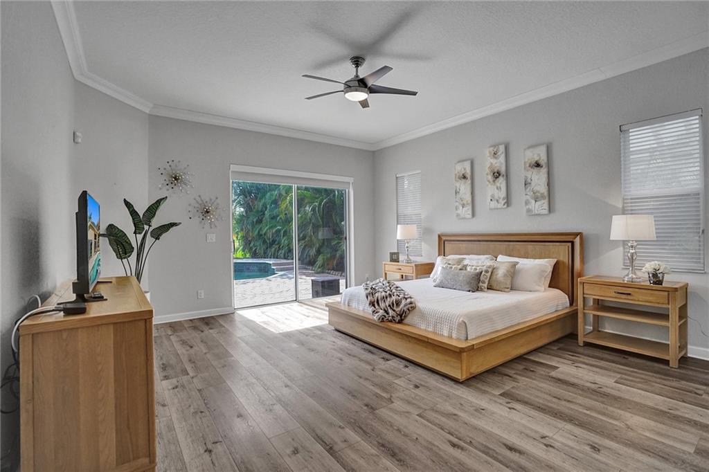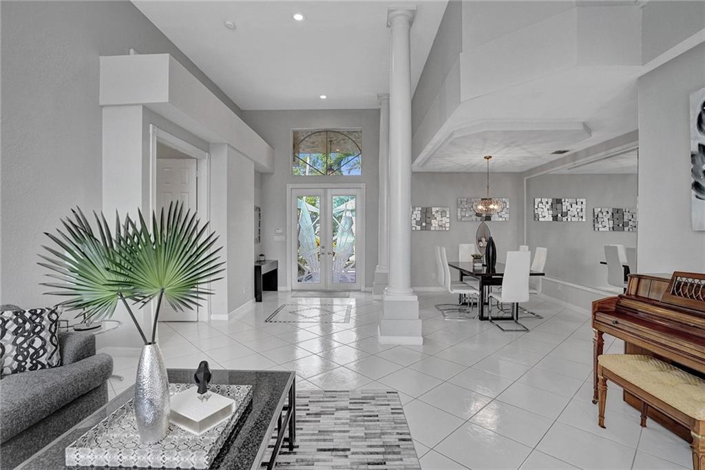 Grand 5 bedroom, 4 bath, 2+ car garage Executive Pool Home w/ large circular driveway, Golf, & Lake Views in exclusive Lake Estates at Rolling Hills. Open, light-filled layout w/ 2 story volume ceilings. Primary & guest bed/bath on ground level. 3 bedrooms, 2 baths & Loft upstairs. 2019 Roof! Newer A/C, Water Heater, Refrigerator, Micro, Dishwasher & Washer/Dryer. Neutral paint tone. Newer LVP Flooring in primary bedroom, stairs & upstairs. Newer light fixtures incl kitchen pendant lights, shower heads & blackout shades in primary & 2nd bedroom. Central Vacuum. Built-in Closets in bedrooms, upstairs baths & laundry room. Shelving throughout garage. Centrally located, close to top-rated schools, parks, beach, shops & restaurants. Maint. incl Cable w/HBO & internet, Alarm & 24/7 manned gate.