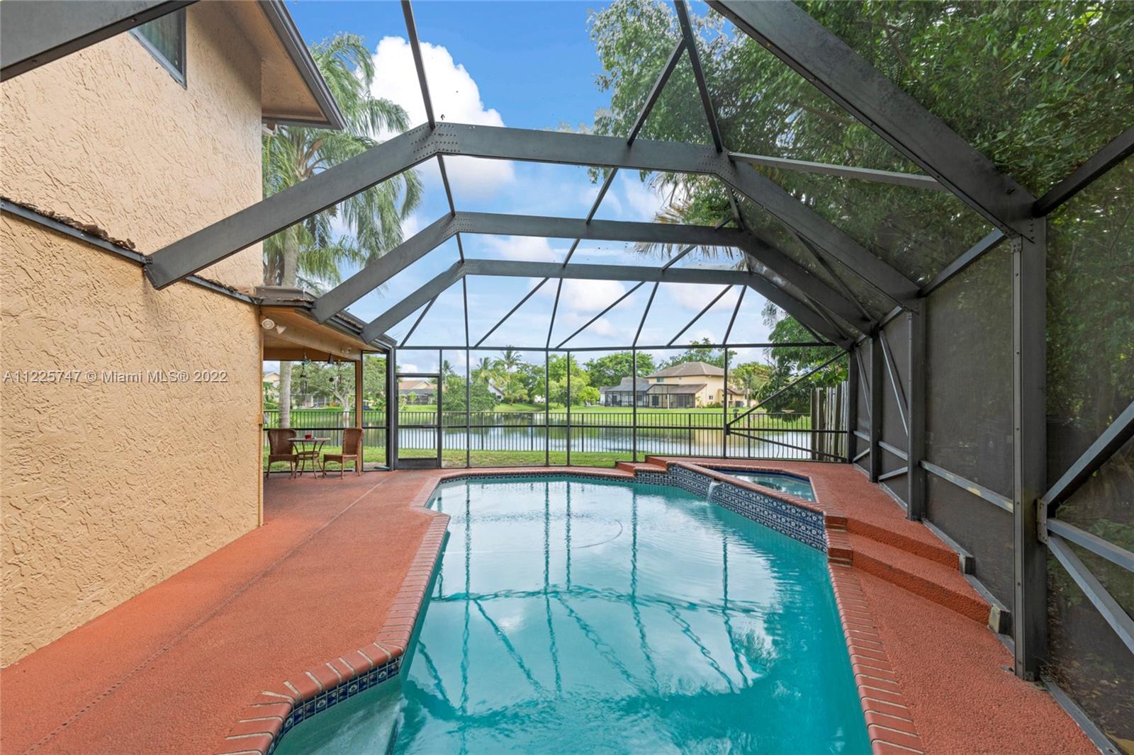 Amazing opportunity! This house has it all. Situated in a cul-de-sac on a lake with over 2100 ft.² of living area. This home has a beautiful heated pool/entertaining area which is screened in for your enjoyment. The electrical panels have been upgraded, upstairs windows are all impact, new gutter and sprinkler system and much more. The home features a large 2 car garage and very low HOA fees paid quarterly. There are four spacious bedrooms upstairs and plenty of space of living area downstairs with separated dining room. The yard is fenced in and very dog friendly community.