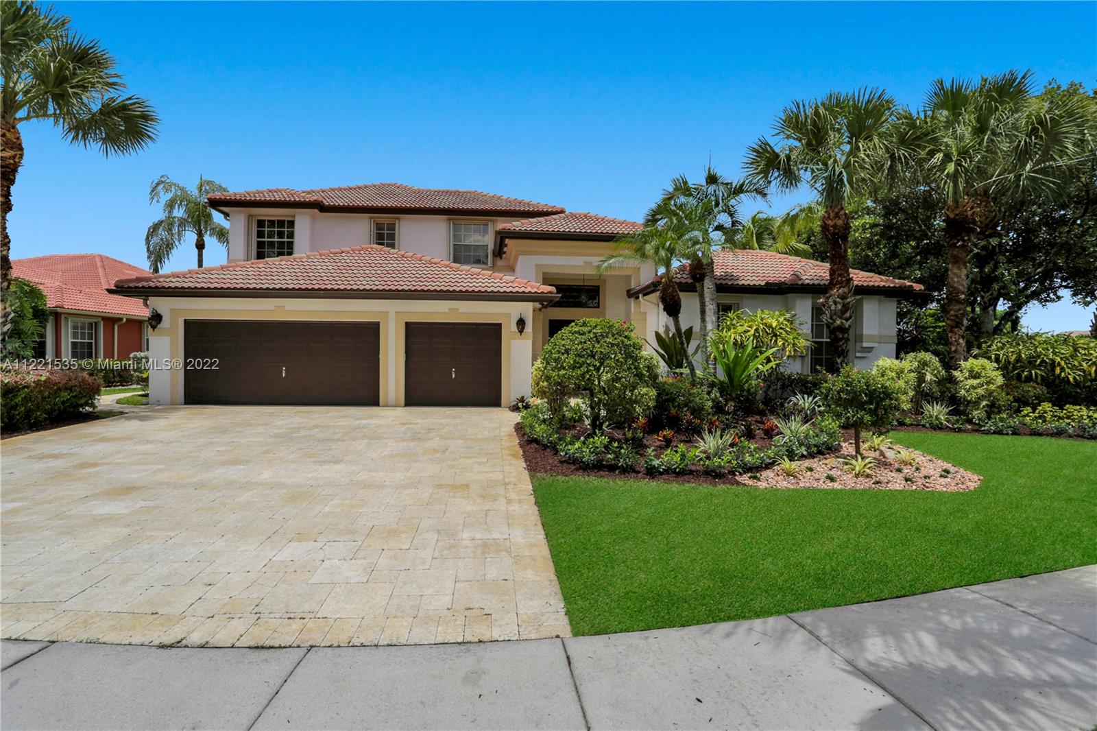 THIS FULLY RENOVATED MIRASOL MODEL HOME W/ WALLED COURTYARD, LUSH LANDSCAPING SURROUNDING THE TROPICAL TREE FORM POOL FEATURES A 3 CAR GARAGE, A GUEST HOUSE AND MANY OUTSTANDING UPGRADES IN THE BEAUTIFUL GATED COMMUNITY OF SUNSET LAKES. ALL NEW WENGUE HARDWOOD FLOORS W/ A GRAND CHANDELIER IN THE FORMAL DINING ROOM. KITCHEN FEATURES SUB ZERO FRIDGE, FREEZER & WINE COOLER. AMAZING LIBRARY/ENTERTAINMENT ROOM IS PERFECT FOR QUIET TIME OR GAME NIGHT. CUSTOM WROUGHT IRON FRONT DOOR & STAIRCASE. GYM INCLUDES A BRAND-NEW SAUNA. OVERSIZED MASTER SUITE ON FIRST FLOOR FEATURES A SEPARATE SITTING AREA, OFFICE & FRENCH DOORS ON BOTH SIDES, ONE LEADING TO YOUR PRIVATE PERGOLA, THE OTHER LEADING TO THE POOL.GORGEOUS MASTER BATHROOM W CUSTOM UPGRADES! TRAVERTINE POOL DECK & DRIVEWAY. MUST-SEE ESTATE!