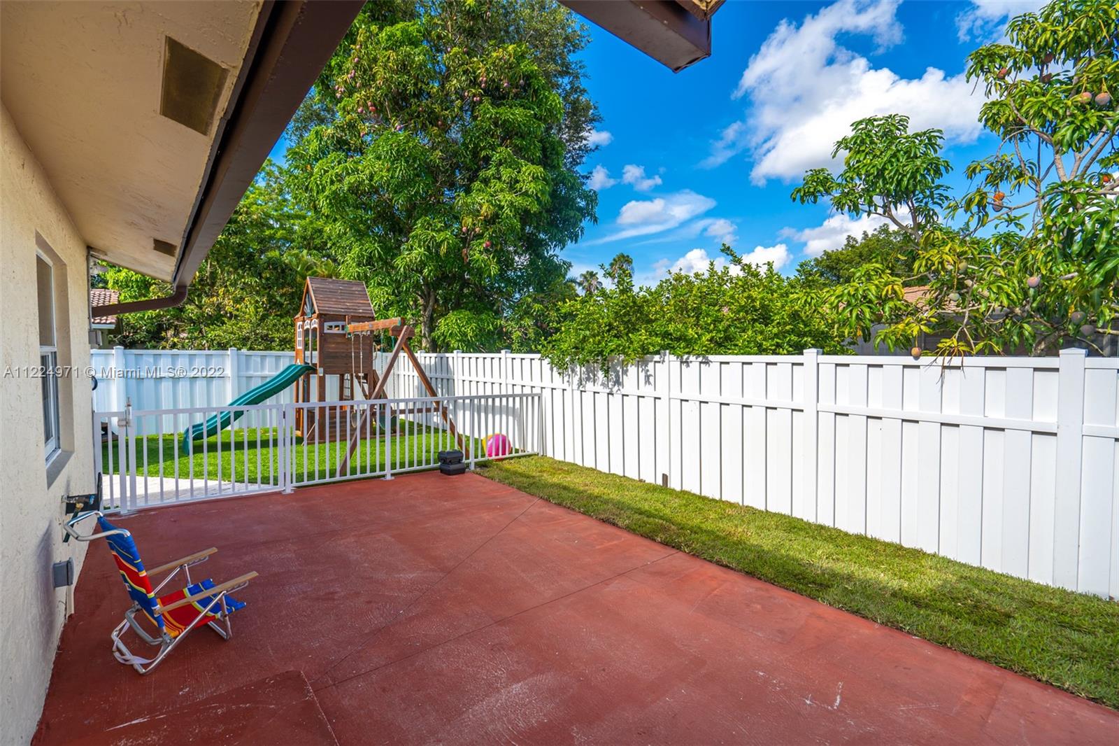 A beautiful ready to move in home in the desirable community of Ramblewood South. This corner home offers 3 bedrooms, 2 baths and many upgrades like impact windows and doors, tile floors throughout, upgraded kitchen, bathrooms, custom closets built-in, with plenty of storage, french doors opening to the outdoor area, patio has been upgraded with artificial turf grass, swimming spa by Jacuzzi put in in the last 2 years, kids playground, completely fenced, just the perfect area to entertain. Sprinkler system connected to a well. This home also comes with EV charger for your electric car, tropical fruit trees & so much more. Close to Coral Springs mall, Bj’s, shopping centers, walking distance to Ramblewood Elementary. NO HOA.