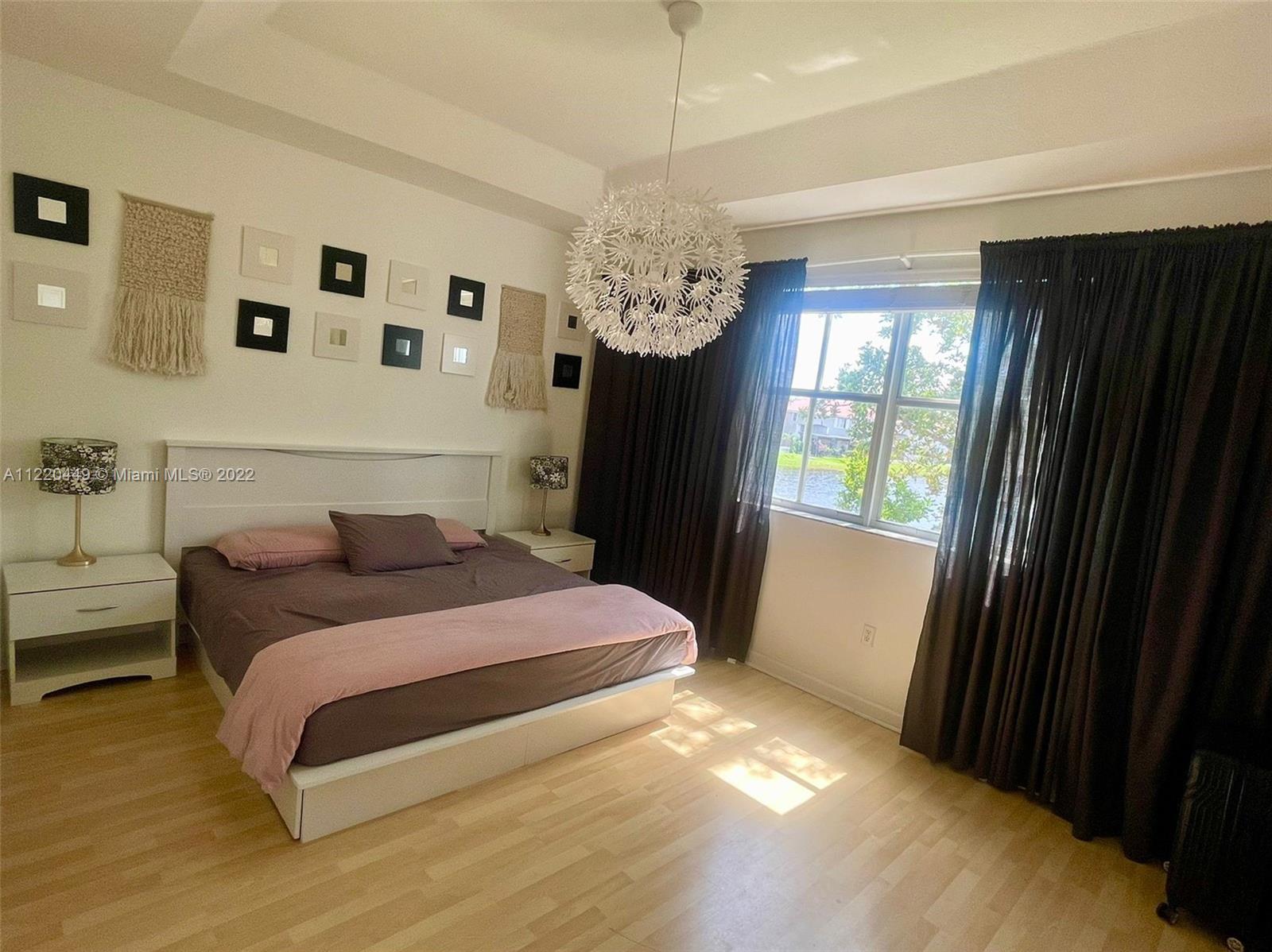 Spectacular sunrise view on the lake with this upgraded 2-story spacious townhouse features 3 bedrooms and 2.5 baths. All new upgraded European style bathrooms with glass door. Custom design walk-in closets. New light fixtures. Fairly new washer and dryer. One car garage converted to a play/ family room. Easily converted back. Private Community pool and children playground. Access to Island at Doral Club House. Close to highway, schools and shopping centers. Must see.