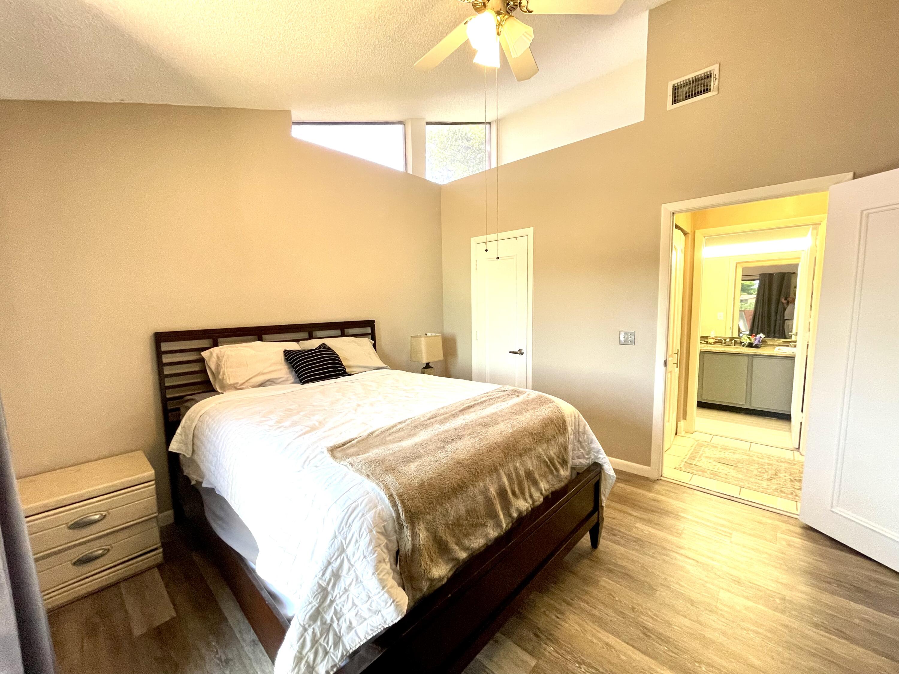 Step into this beautifully upgraded townhome/villa located in a serene community with luscious landscaping and lake views. Featuring high vaulted ceilings, a split floorplan, and an open concept, which is perfect for entertaining. Last but not least, this home is mere minutes from major highways, the beach, shopping, and dining, making your journeys that much easier