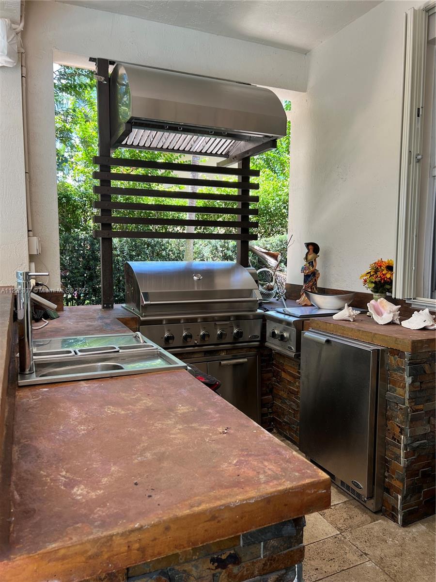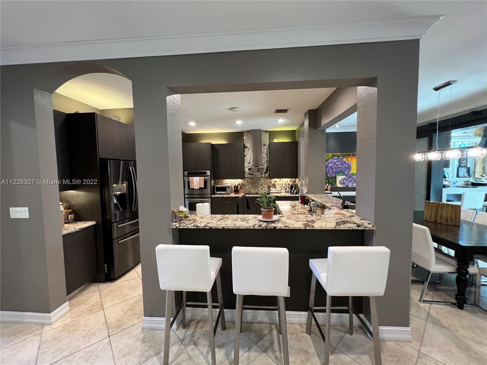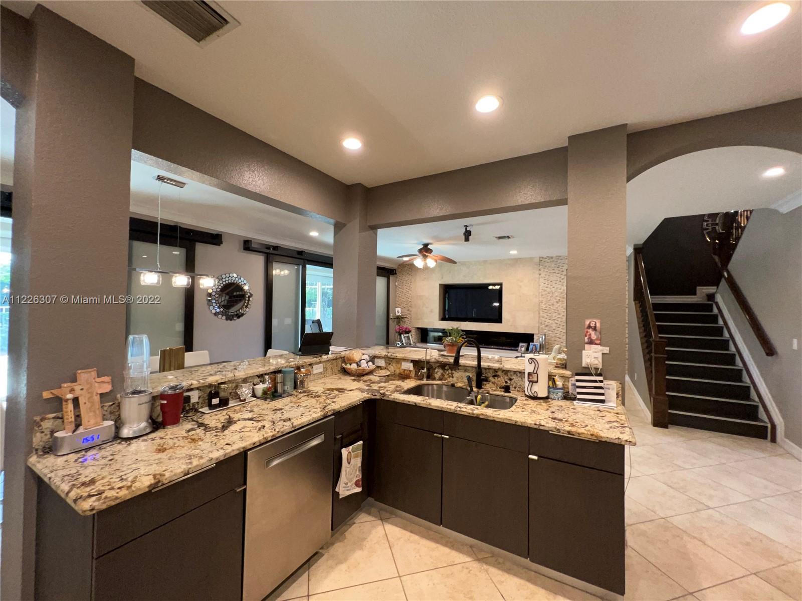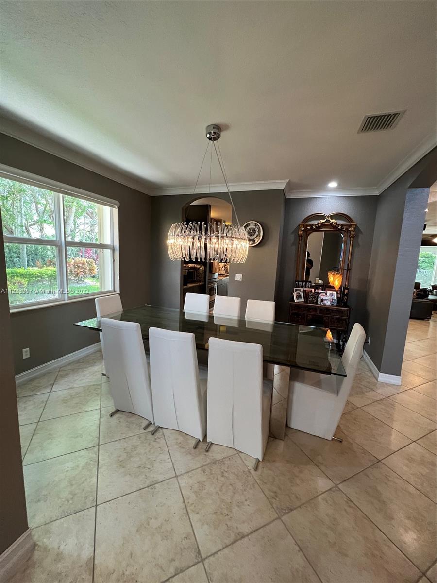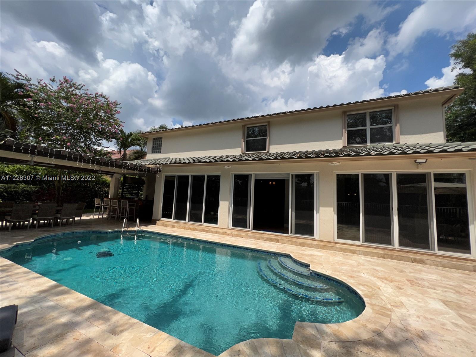 Original owners are ready to downsize as they are empty nesters! Five bedrooms, five full bathrooms. Three-car garage located in Isles At Weston. The house underwent a significant remodeling process in 2017; Enclosed lanai serves as a gathering for the man of the house with their bar and entertainment area. They remodeled the backyard in 2021 with a heated pool, outside shower, a pergola serving for a dining table outdoor, a fully equipped kitchen, and a sitting area with a fire pit connection. Gas Generator installed in 2020—impact sliding doors. The front and interior doors are new—built-in closets in each bedroom. Items that do not convey are the outside heaters and beer fridge cabinet inside the garage—items that convey the TV inside the LED fireplace and the TV in the outdoor kitchen.