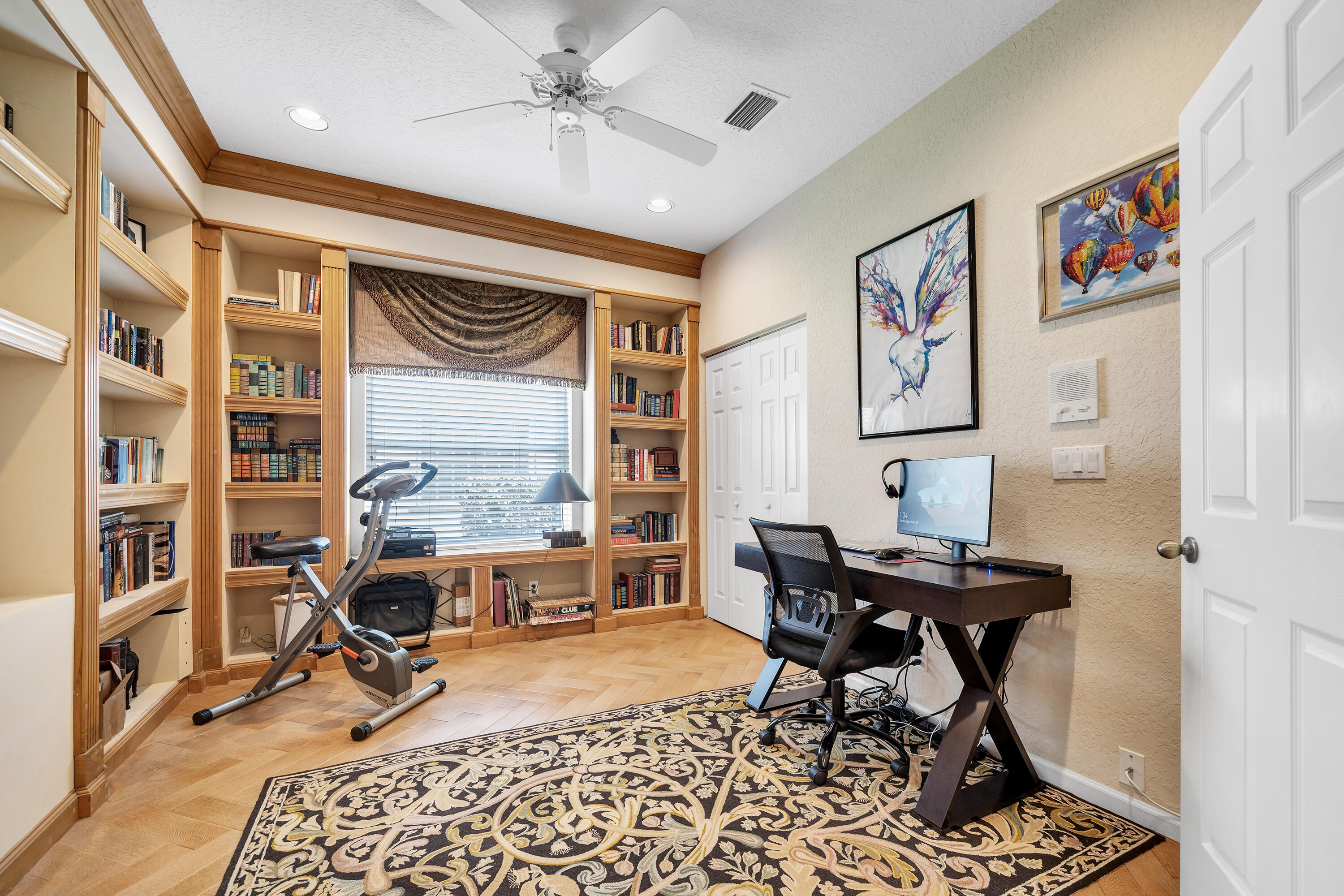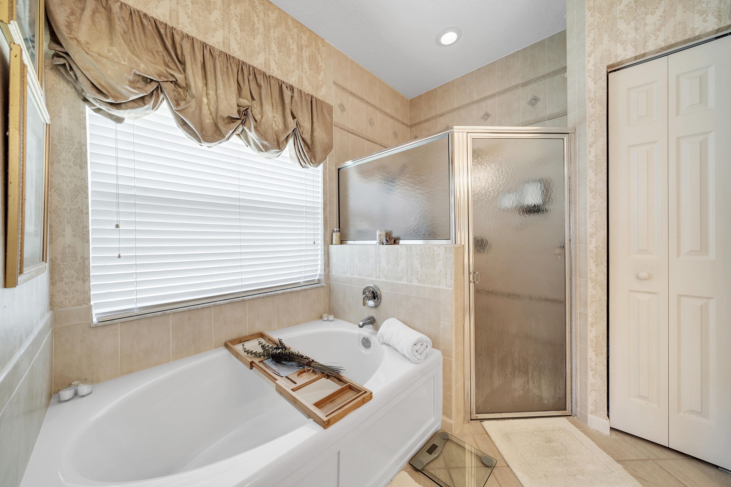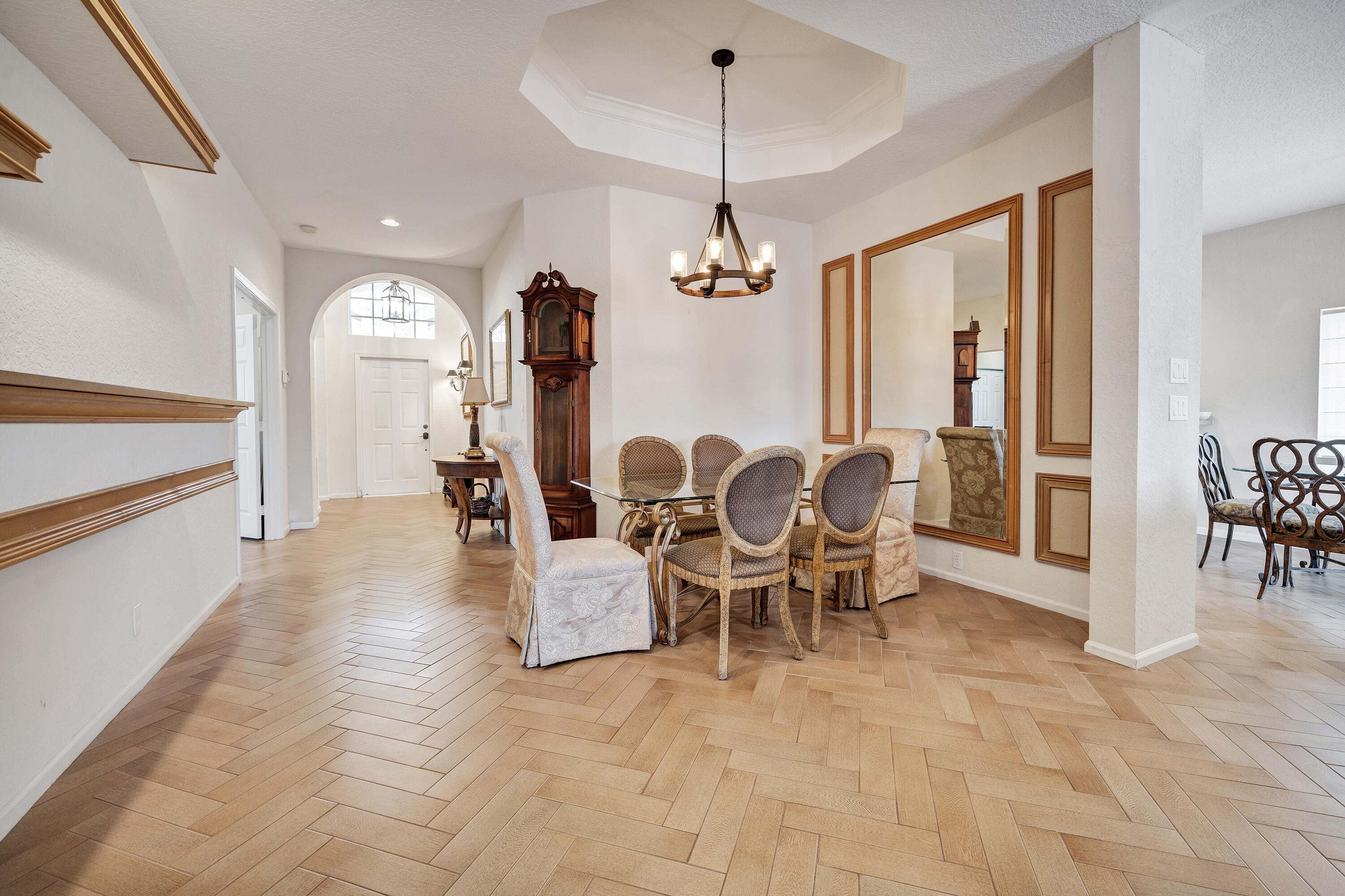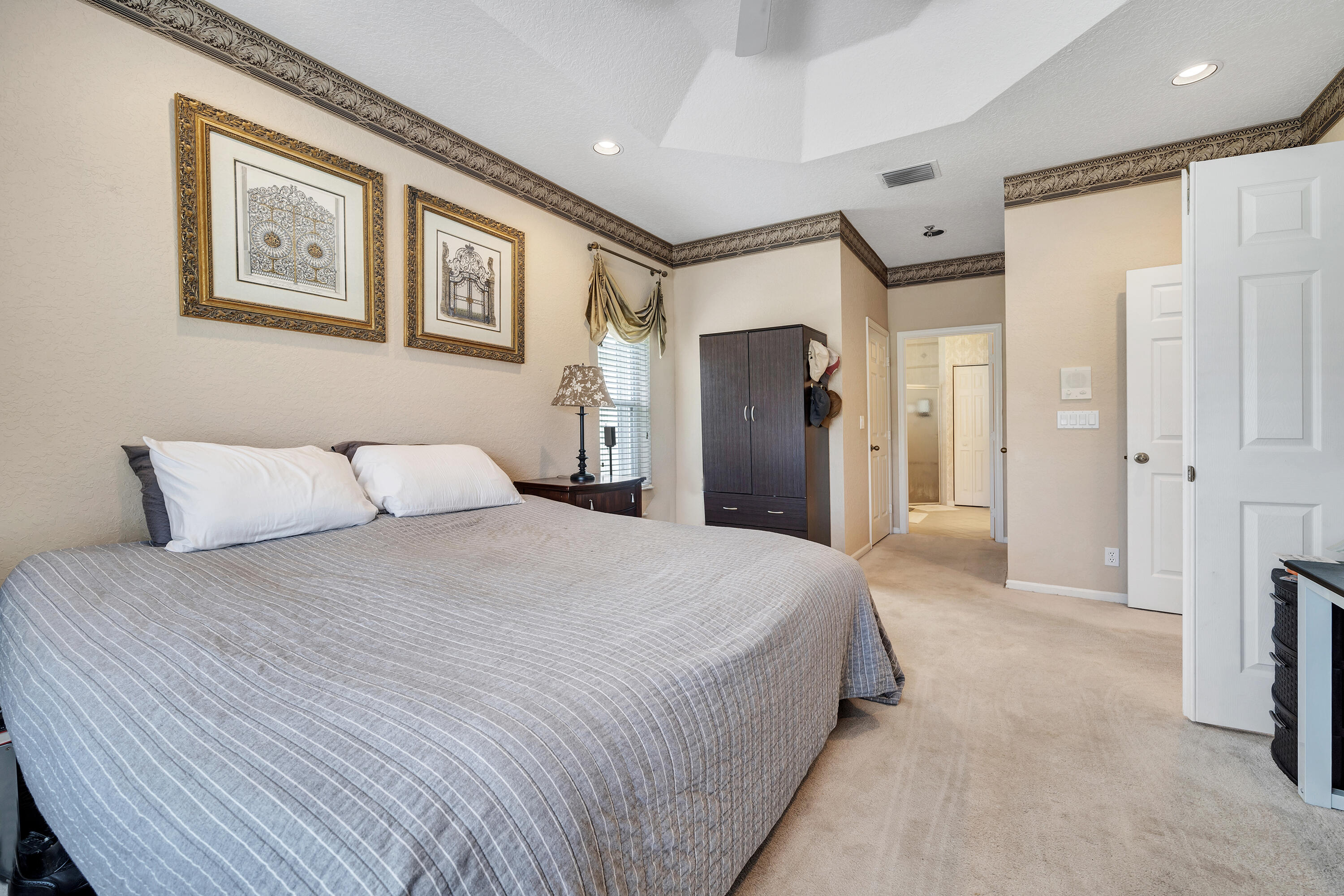 Rare find! Beautiful home w/private heated pool & gorgeous water view is just a short walk to this all-ages community's fabulous amenities incl spa, pool, tennis, tot lot, billiards, card rm, fitness center, basketball, shuffleboard. Spacious, split-plan features open living space, perfect for entertaining. Lg kitchen has new s/s appliances w/on-trend induction/air fry oven. Inside laundry w/new washer/dryer. New pool heater/pump. Wood-look tile set in herringbone pattern thruout main liv areas & Bdrm 2 w/double doors, lg closet & beautiful built-ins, Owner's suite nicely sized w/tons of organized closet space & bath w/dual vanities, garden tub, lg shower & separate water closet. HOA incl amenities, Xfinity cable/internet, alarm monitoring, sprinkler/lawn maint, trash, 24 hr manned gate