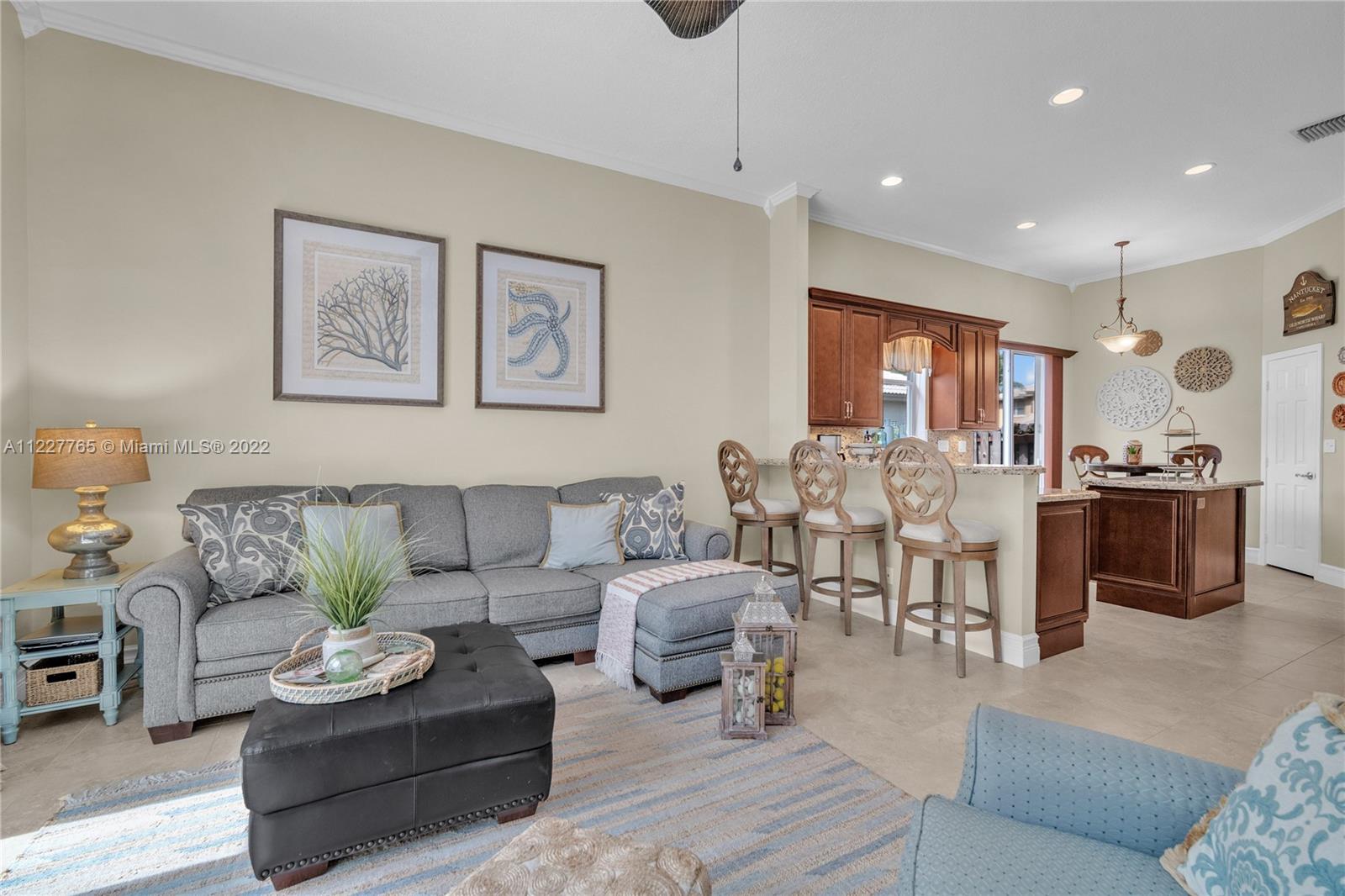 Expansive paved circular driveway, 2 car garage, landscaped fenced in yard, screened in pool and patio. Large focal point Plantation shutter in the living room. 4 bedrooms and 3 full baths with updated fixtures. Re-designed kitchen with gas stove and stainless steel appliances. Granite countertops with wood cabinetry and recessed lighting. Luxurious clubhouse with resort-style pool, spa, gym, tennis and basketball courts with banquet hall. HOA includes cable, high-speed internet, and alarm systems.