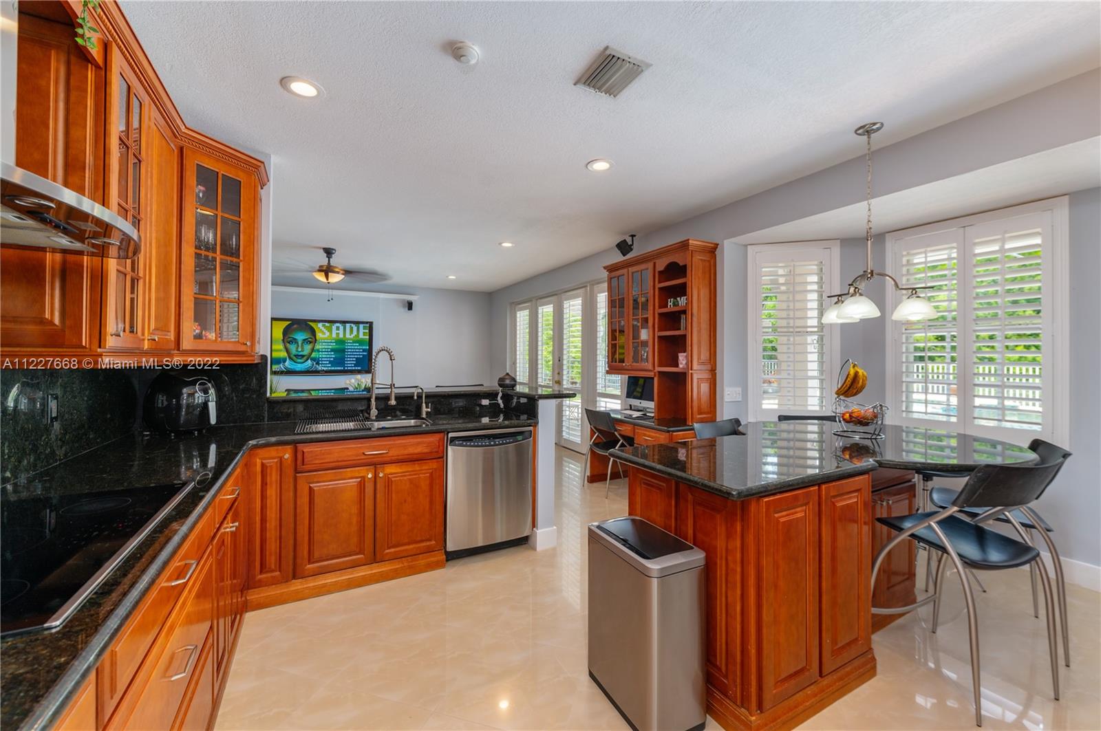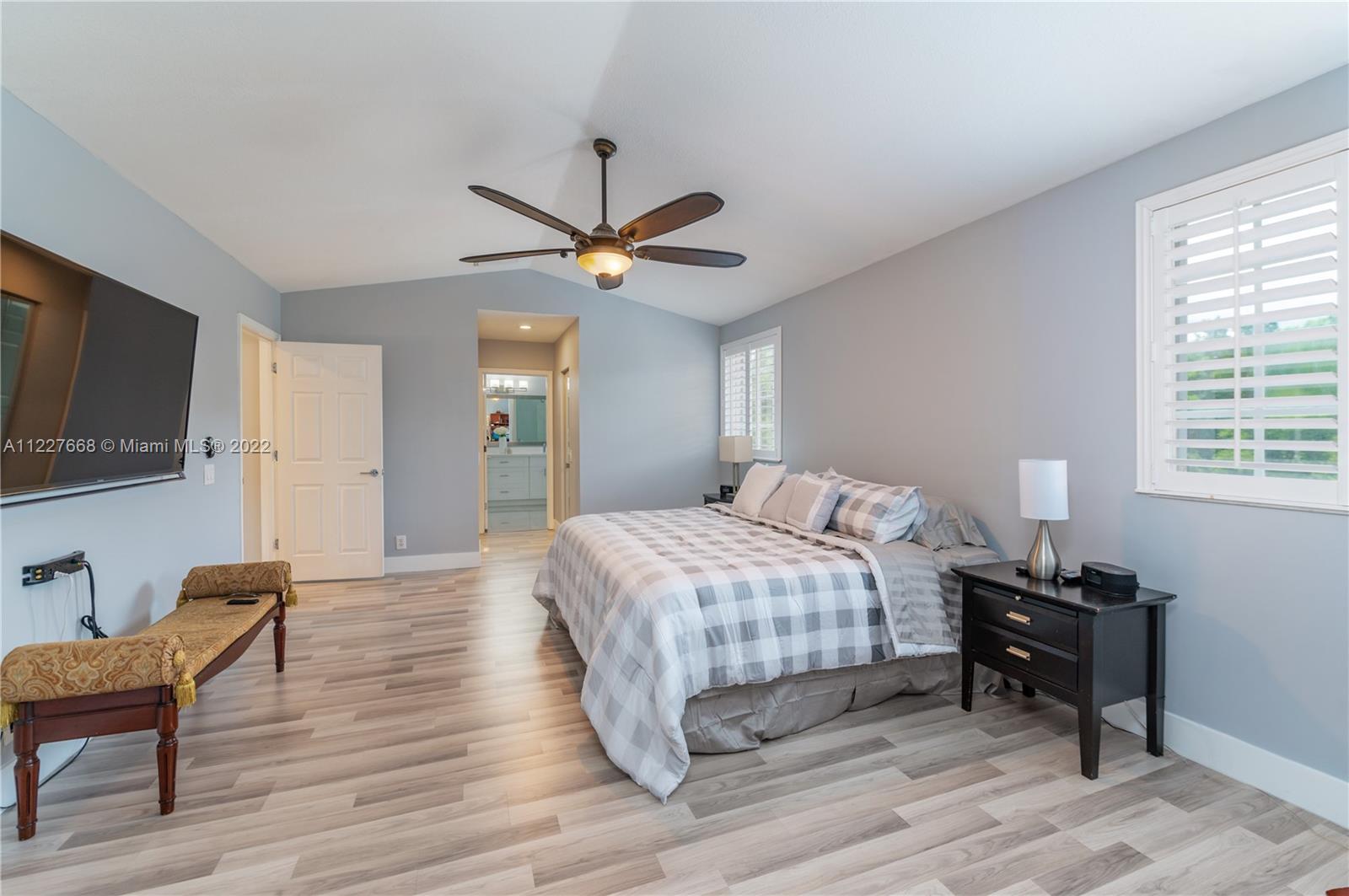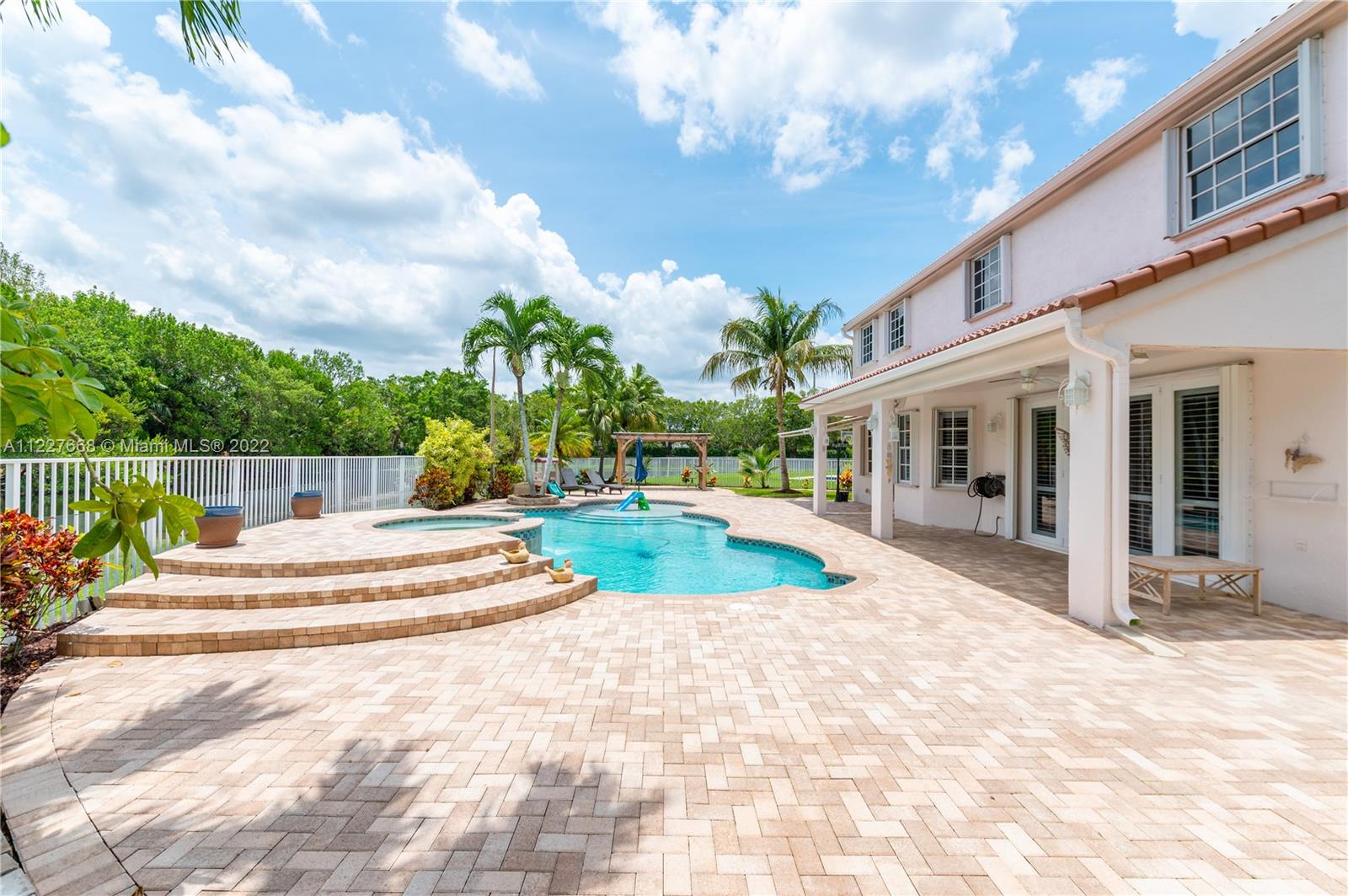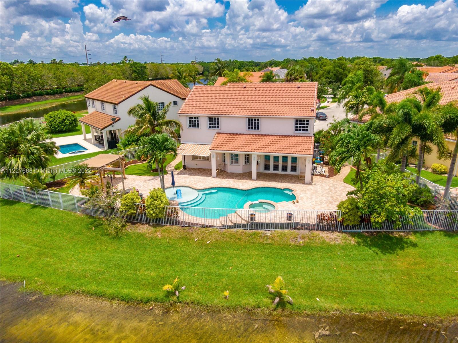 This unique home is located at the end of Cameron Drive peninsula on a cul de sac over a 12,383 sq ft lot. This provides ultimate privacy, a serene water view, and trees that make the sunsets an incomparable spectacle. The private backyard has a magical oversized pool and the patio has been paved and manicured turning the space into one you never want to leave. A brand new roof, installed on 10/2021 will give your family, security, and peace of mind for many years to come. The huge master bedroom offers an additional space that could be used as an office, nursing room or TV area, and his and hers walk-in closets. Accordion shutters throughout the house. This home has been fully upgraded and it's within walking distance from elementary school Eagle Point.