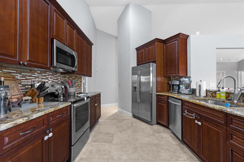 Priced to sell! Here's your chance to own this Beautiful 4 bed 3 bath corner lot home in Fox Run at Jacaranda with Low HOA fees. This home features an updated kitchen that provides stainless steel Applicances, Custom Maple Cabinets with soft close doors and European Granite Counter Tops with Glass Mosaic back splash. Additionally this house has a split floor plan with vaulted ceilings and an open concept which is great for entertainment along with a spacious fenced back yard, accordion shutters and a beautiful landscaping package. This home offers peaceful living while being conveniently close to shopping, restaurants, turnpike and much more!