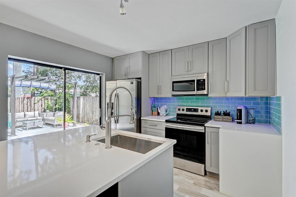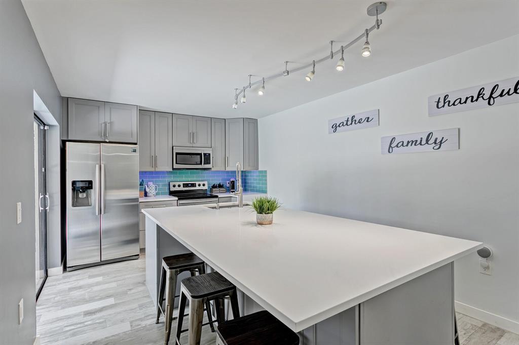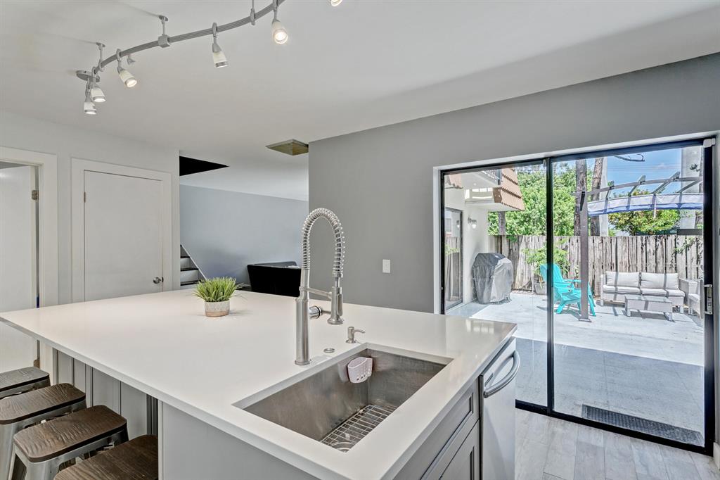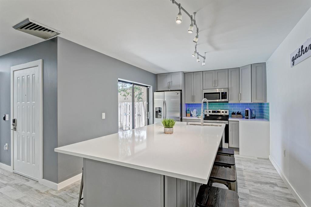 From the outside you'll never guess what awaits you within the walls of this 2 bedroom, 2.5 bath townhouse. This is a 'kick-off-your-shoes' home and is a soothing retreat from your busy life. It has been recently renovated with designer flair and offers a beautiful combination of modernity and charm. If you value position and style, do not pass this one up. The unique, well-designed kitchen makes preparing yummy home cooked meals a pleasure. Guaranteed to satisfy the fussiest of gourmands, the kitchen flows into the dining area, separated only by a large island measuring a whopping 10x5 feet. This is the perfect spot to converse with guests while preparing your dinner party appetizers or could double as a comfortable workstation. Adjoining the kitchen/dining area is a bank of doors that