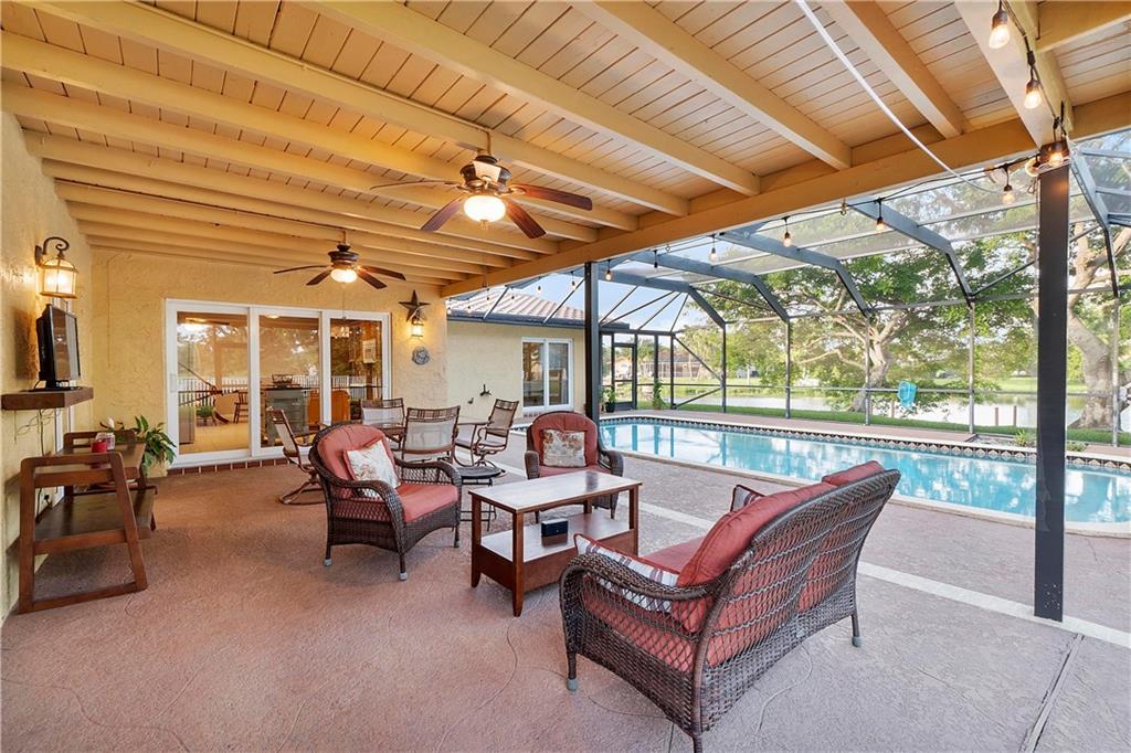 Amazing! This 5bed/2 bath 2300+ sq. ft. home with a long canal view is located on 150+ft of water frontage AND a desirable OVER 13,000 SQ. FT cul de sac lot! This home boasts hurricane rated impact windows and doors as well as a hurricane resistant screen enclosure around the generous sized pool and deck. Pool is solar heated for enjoyment even in winter. Updated bathrooms, tile flooring throughout, and a rare indoor wood burning fireplace, as well as, a stone firepit Kitchen even has a skylight. Home has newer barrel tile roofing. Enjoy the park like setting with no HOA fees. Don't wait, come and get this while it's still available. This is quite an opportunity! MULTIPLE OFFER SCENARIO: HIGHEST/BEST OFFER DUE BY TUES 6/28/22 @10AM