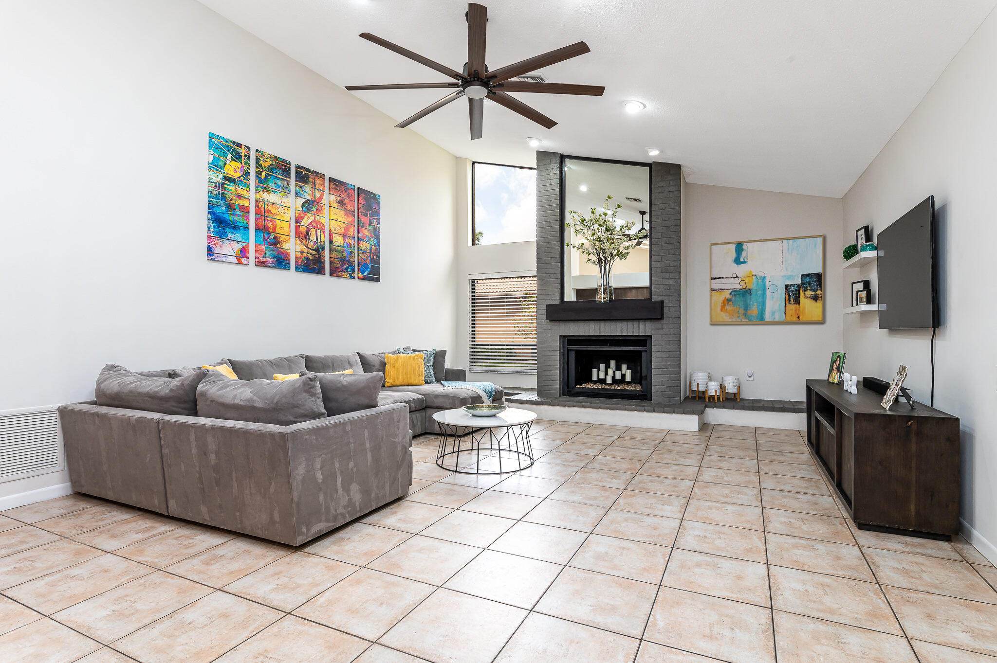 Custom designed by architect, this updated home in Encantada has 4 bedrooms and 2.5 baths, high volume ceilings, remodeled kitchen with granite counters, stainless steel appliances and a wine cooler. Very spacious and private yard with in-ground pool is perfect for entertaining. Cul-de-sac lot.