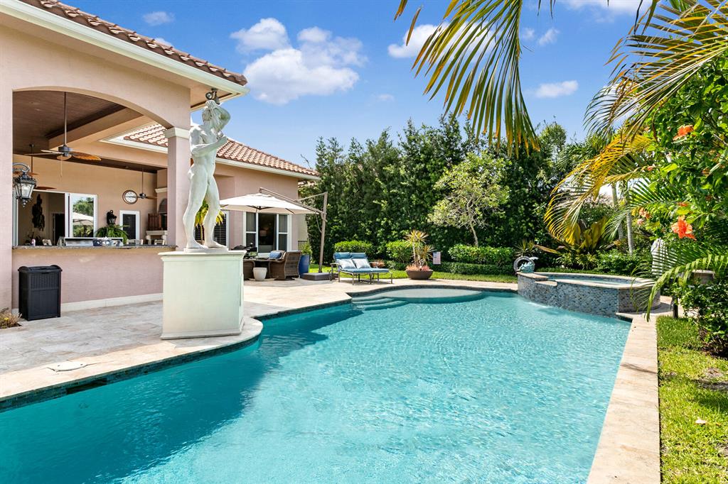 This SPECTACULAR home with BREATHTAKING views can be your own private TROPICAL oasis. Impeccably maintained and so much to fall in love with! Stunning marble floors, soaring ceilings, exquisite woodwork and architectural details throughout. A newly designed kitchen at the heart of it all features a massive quartzite island, new appliances, custom range hood, smoked glass backsplash, and adjoining beverage center. 4 BR PLUS 2 additional rooms suitable for office, den or media purposes. In this lovely home, you'll experience a cohesive marriage of luxurious sophistication and fun. Perfect for entertaining both inside and out! Outdoor kitchen, bar, fireplace, and numerous pool updates in 2019 include resurfacing, lighting, saltwater system, heater - all controlled with an app from your phone