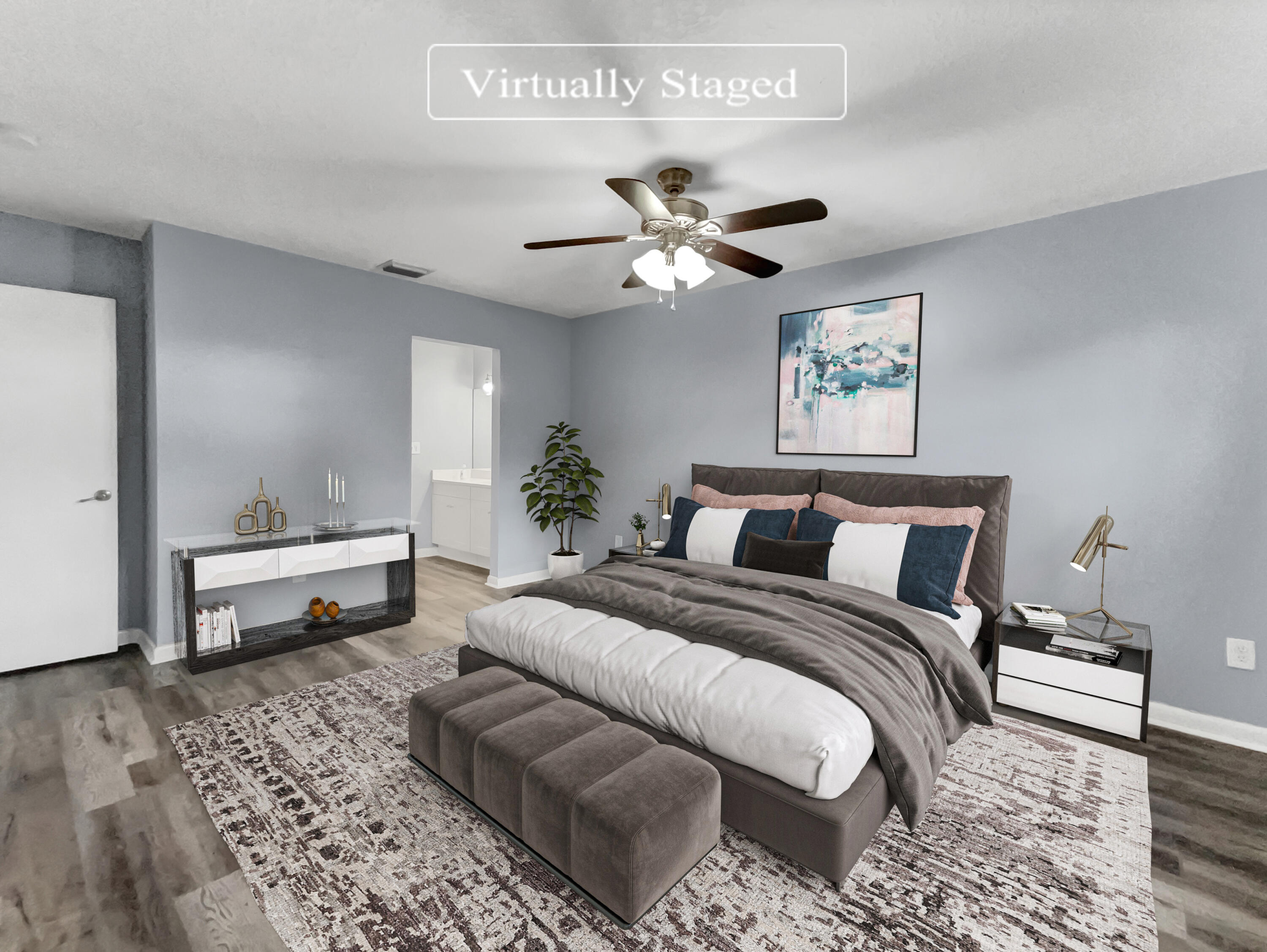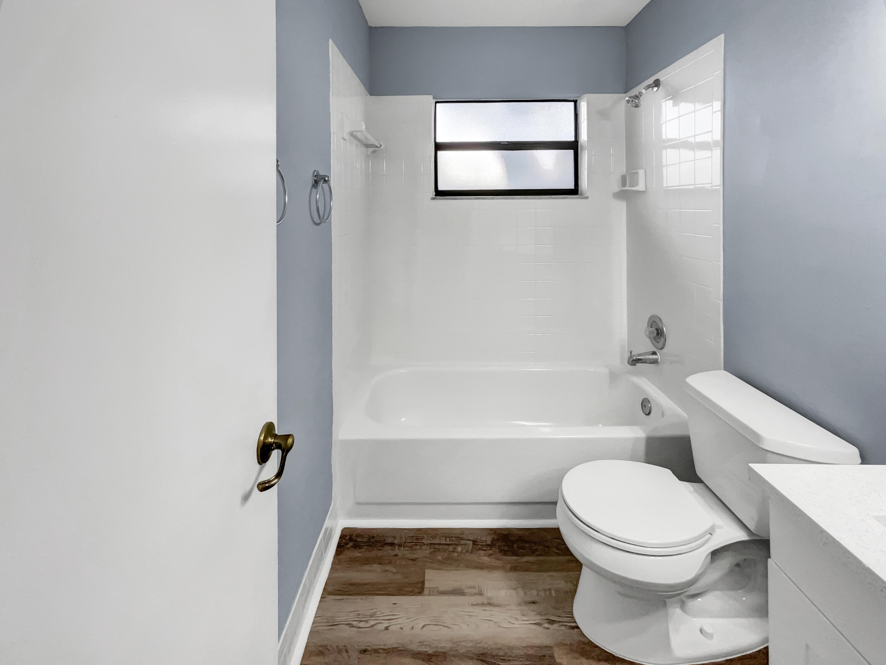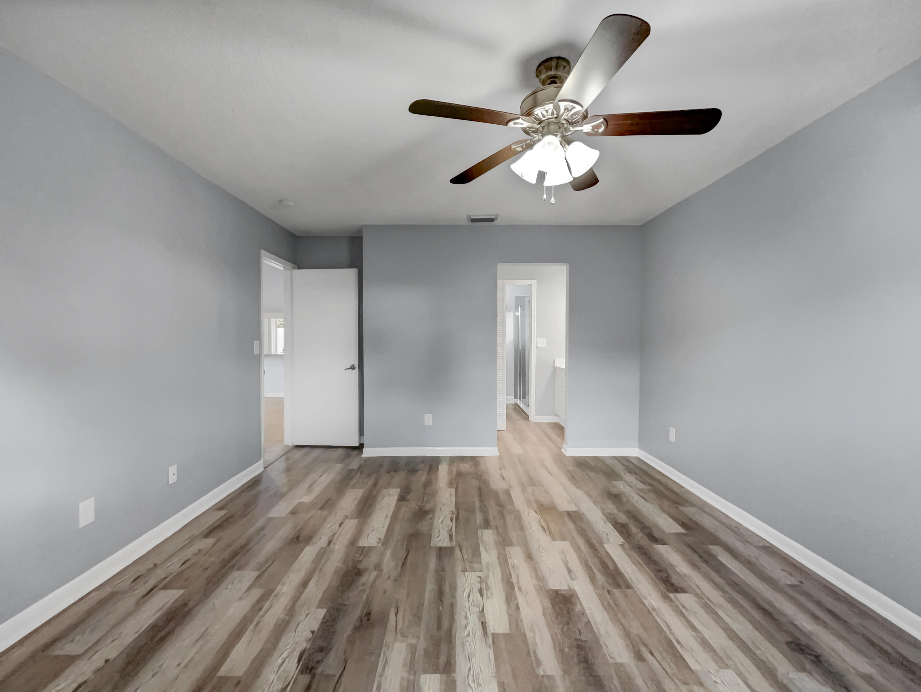 Welcome! This charming home has 2 bathrooms updated in January 2023! The kitchen boasts generous counter space and a breakfast bar, making cooking and entertaining a delight. Step inside this beautiful interior with tile and hardwood floors throughout, plenty of natural light, and neutral palette. The main bedroom boasts a private ensuite and walk-in closet. Other bedrooms offer ceiling fans, and sizable closets. Entertain on the back patio, perfect for barbecues. Don't miss this incredible opportunity.