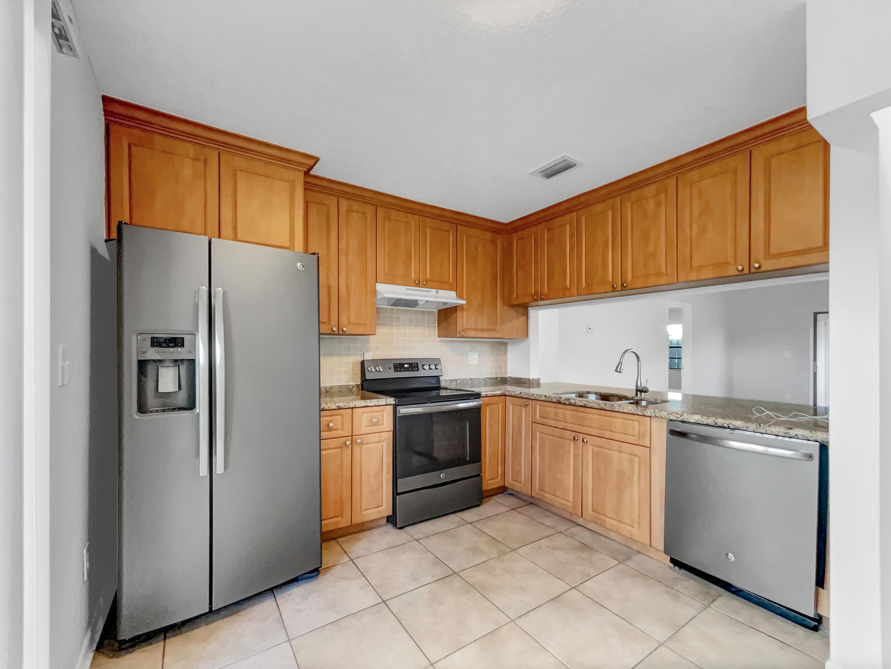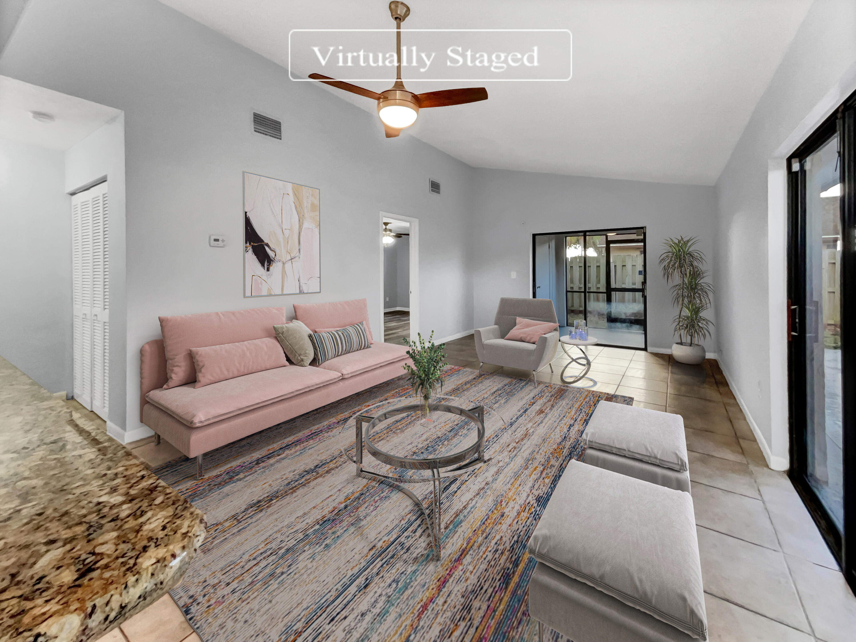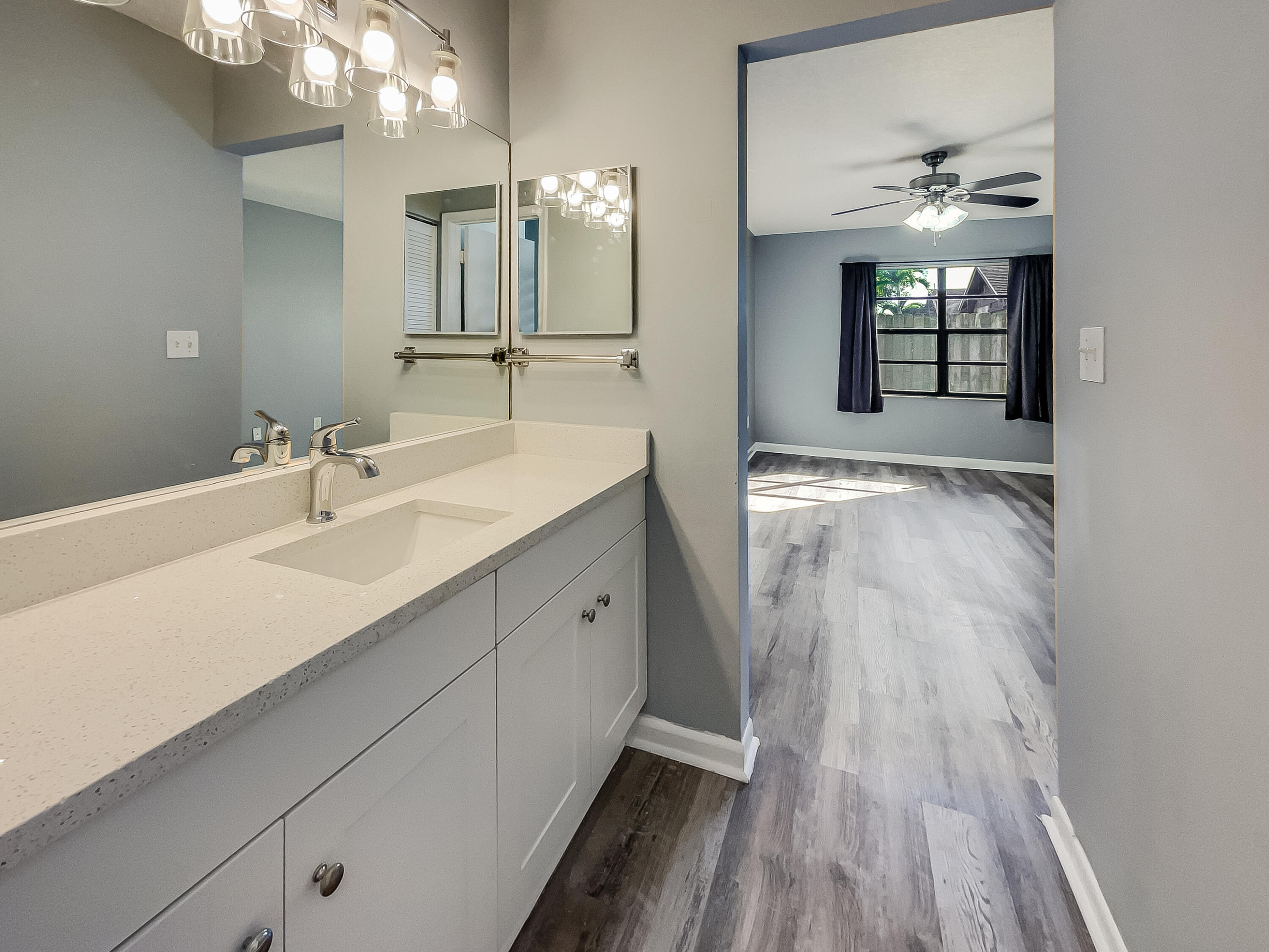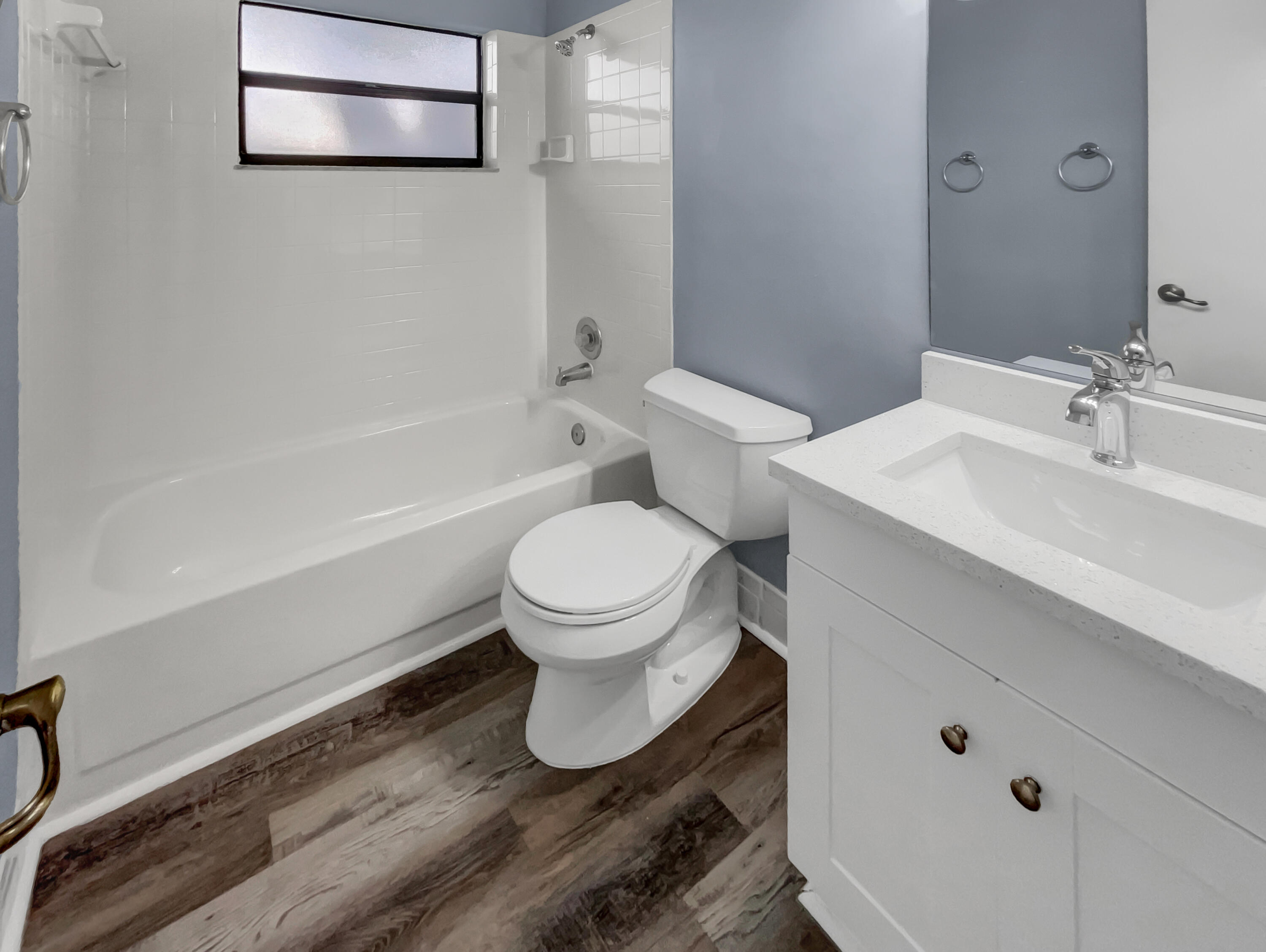 Welcome! This charming home has 2 bathrooms updated in January 2023! The kitchen boasts generous counter space and a breakfast bar, making cooking and entertaining a delight. Step inside this beautiful interior with tile and hardwood floors throughout, plenty of natural light, and neutral palette. The main bedroom boasts a private ensuite and walk-in closet. Other bedrooms offer ceiling fans, and sizable closets. Entertain on the back patio, perfect for barbecues. Don't miss this incredible opportunity.