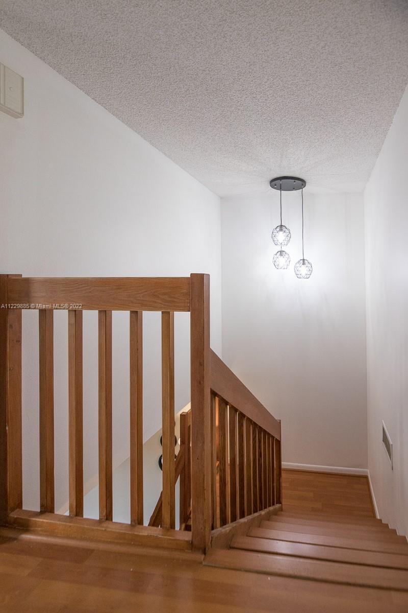 Welcome to a desirable 3/2.5 townhouse in Village at Lake Pine II. Private entry to fenced in courtyard/patio. One bedroom & half bath on the first floor. Laundry room, open upgraded kitchen & lots of storage. Upstairs find spacious Master bedroom w/ slider to open balcony, 2 closets & sitting area. Recently Updated master bathroom. Hurricane shutters. Low HOA fee includes lawn, roof repairs/replacement, pool, tennis, basketball & children's play area. All schools are "A" rated. Great close-in location convenient to restaurants, shopping & parks. Easy access to Dade, Broward & Palm Beach. Don't miss this opportunity! Sold partially furnished (negotiable) - on lockbox use showing time. - Baseboard and floor dividers upstairs will be install prior to closing.