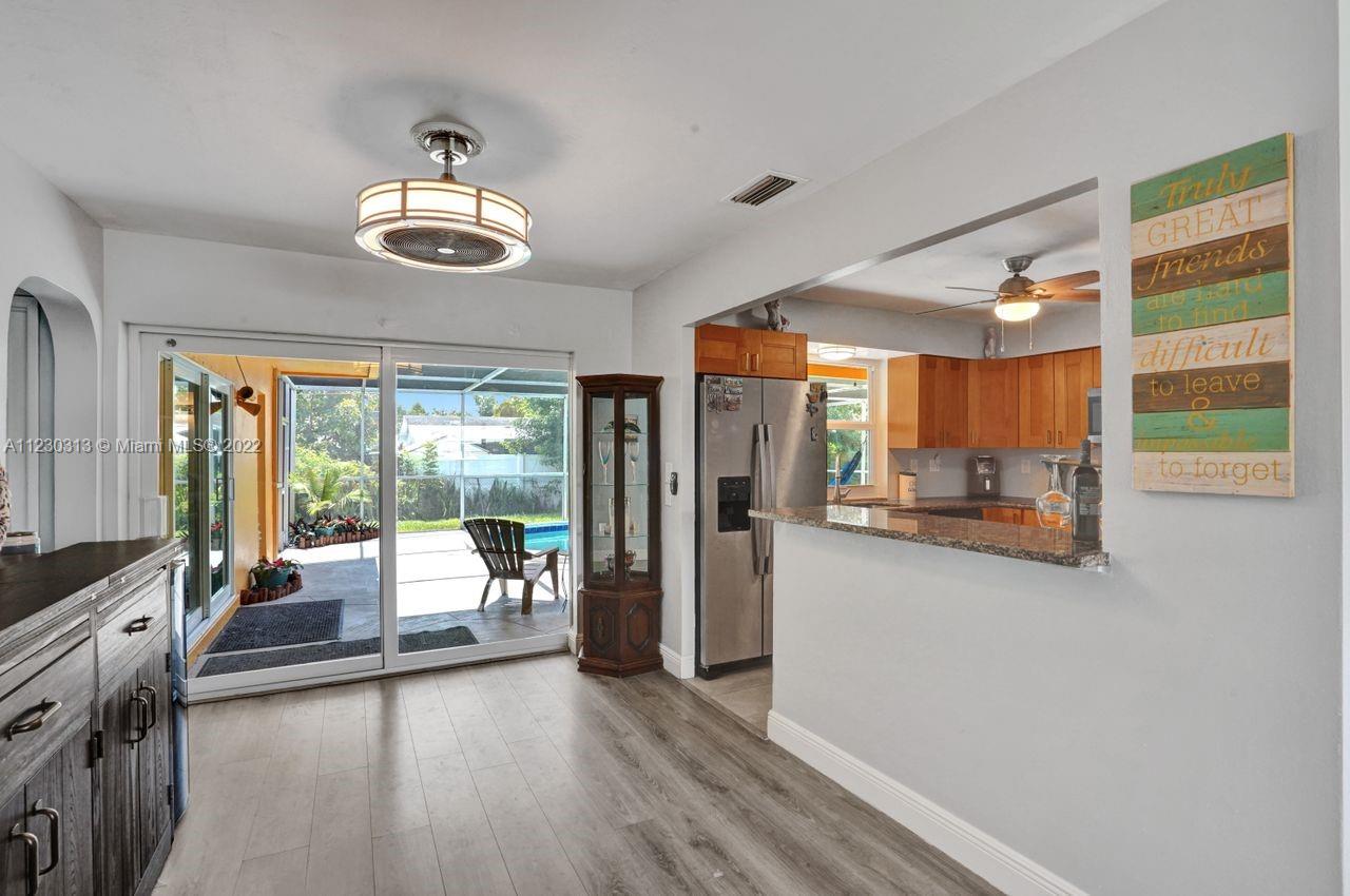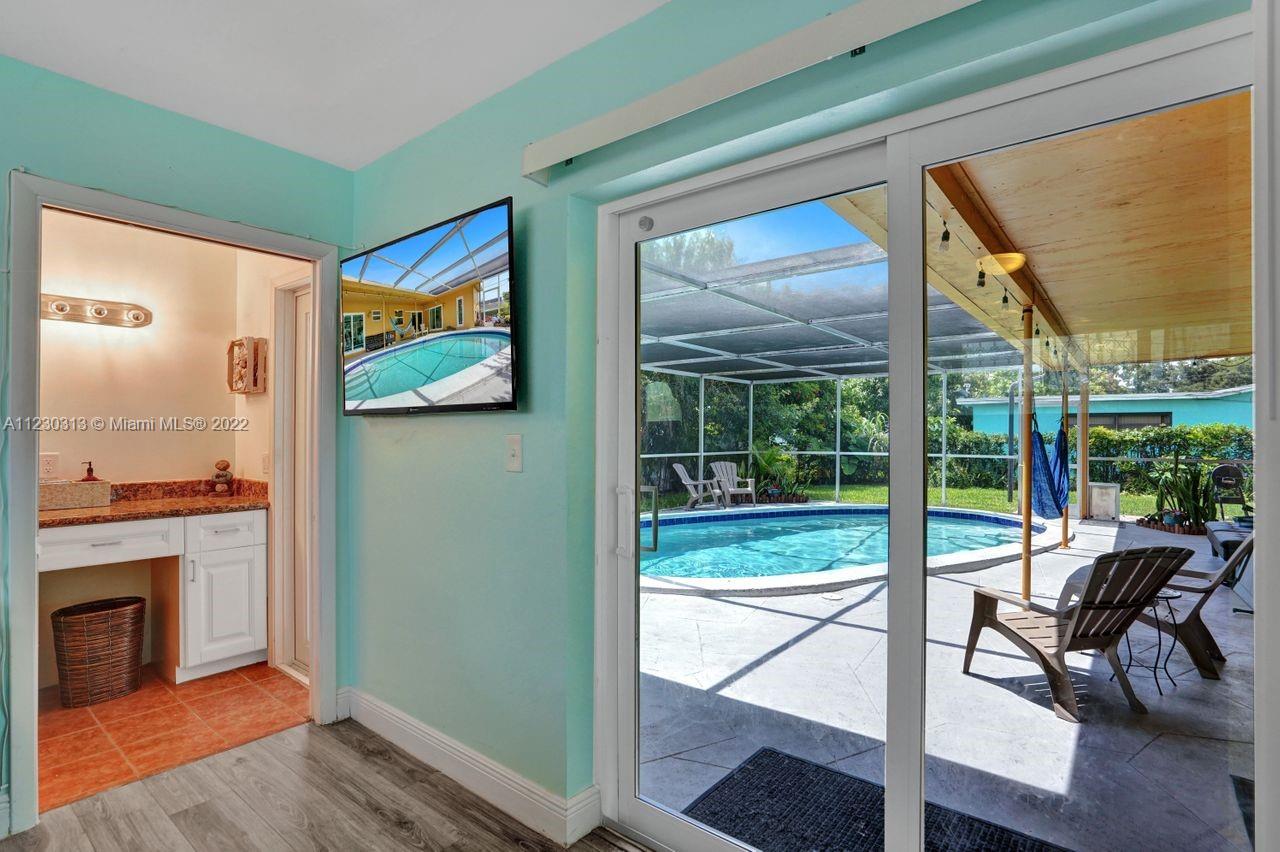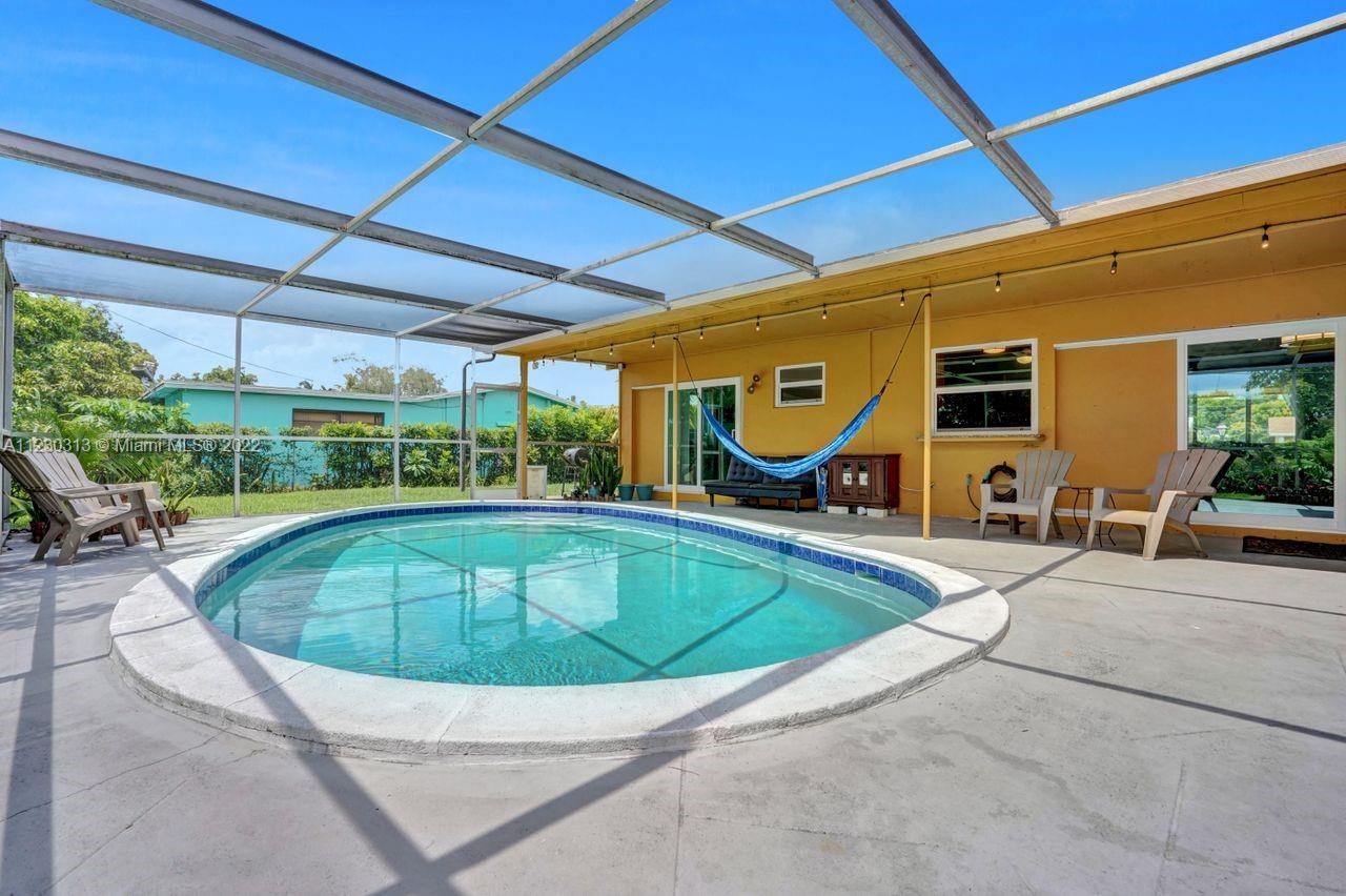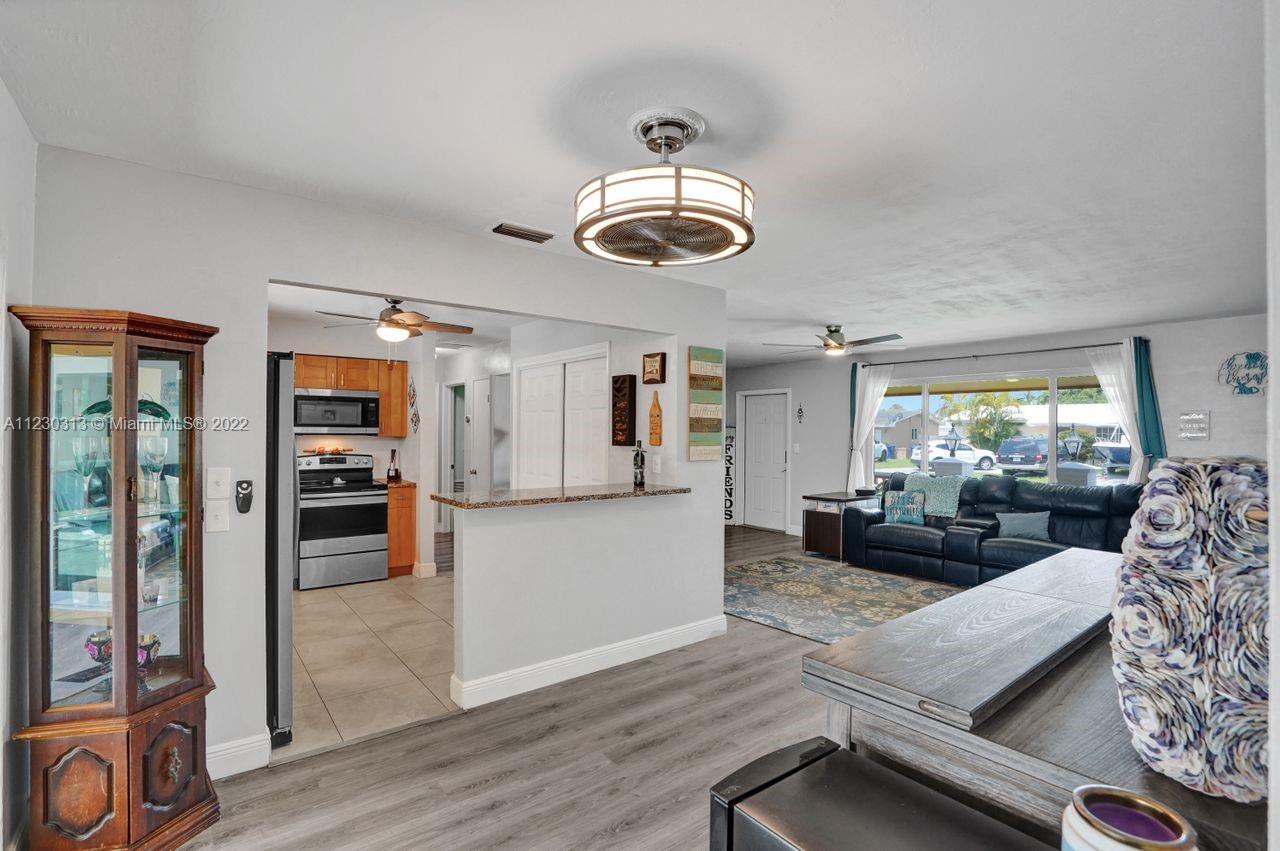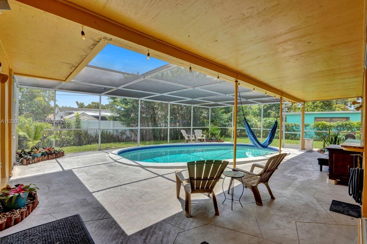 Unique home sitting on a 12,000-square-foot lot (double lot just over 1/4 acre). In-ground pool with a patio screen enclosure. Brand new impact windows and doors. Spacious 2-car garage with laundry area. Laminate wood flooring throughout the house. Split bedroom plan. All appliances, ceiling fans, curtain rods, and window treatments stay. Surround sound music in the pool and patio area stays. The kitchen and the bathrooms have granite countertops and wood cabinets. Stainless steel appliances. Smart homes feature Ring doorbell, Nest, and Smart front door lock. The property is currently covered under an American Home Shield warranty.