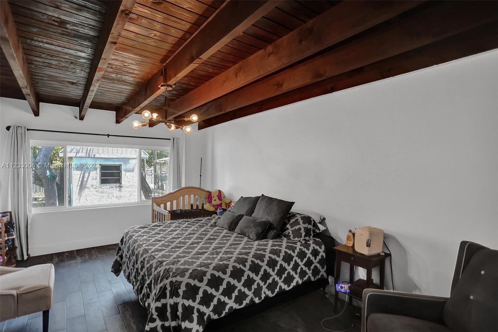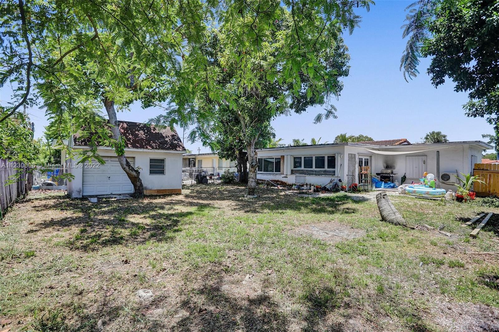 AMAZING opportunity! Beautiful home ready for your finishing touches: $20k could gain you an additional $30k+ in INSTANT EQUITY. NEW wood-like porcelain tile; MASSIVE kitchen featuring NEW cabinets, an island and farmhouse sink ready to install, gorgeous EXPOSED WOOD BEAMS, lots of windows. Primary bedroom features a huge WALK-IN CLOSET, brand NEW bathroom, exposed wood beams and large windows. Half-bath has plumbing in place to design to your taste. Third bedroom and second bathroom are split from the other two, allowing ease in creating a IN-LAWS SUITE. 1 CAR-GARAGE, large concrete SHED, large lot with ROOM FOR A POOL. Avocado trees, Mango, and more! Central location near Biscayne Boulevard, Enchanted Forest Park, minutes away from the beach, Bal Harbour Shops, Aventura and more!