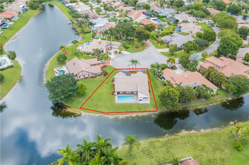 One of a kind 5-bed/2.5 bath waterfront/pool home in prestigious Glen Isle located in cul-de-sac of only 3 homes. Sits on an oversized waterfront point lot over 15,000 sq. ft. with southwest exposure. Bright and airy, cathedral ceilings with LED lighting. Custom kitchen has quartz countertops, upgraded cabinets & hardware, under cabinet lighting. Stainless steel upgraded appliances. Split plan offers 4 bed 2.5 bath on main level, includes large master suite w/water views, walk-in closets. Master bath w/separate cabana bath for easy pool access. From family room spiral staircase leads to large 5th room which can be used as office, den, bedroom or game room. Circular driveway & large 2 car garage w/room for storage. Attic w/ storage space. Split AC system. Accordion shutters. No Assoc fees.