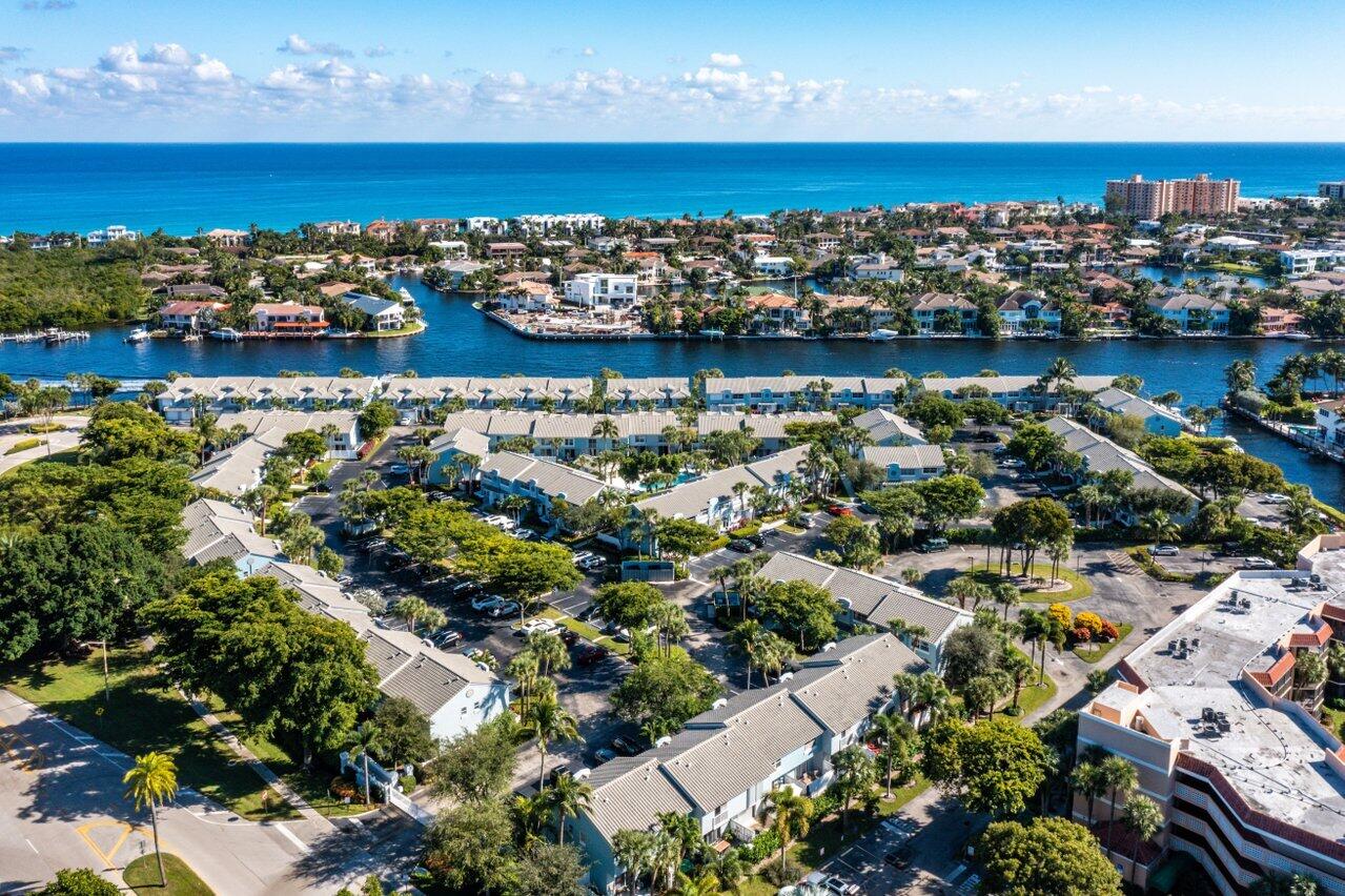 Beautiful 3 bedroom, 2.5 bathroom, 1 car garage Townhome in one of the nicest Waterfront Communities in East Boca. These properties rarely come to market; Especially the 3bd/2.5ba units. New Roof (2018). This specific unit exhibits great interior natural lighting, an open concept floor plan, and is within steps of amazing views on the water. The Main living space has porcelain tile floors, a chefs kitchen, and separate dining area. The upstairs rooms, including the staircase, have hardwood floors. Spacious rear patio opens up and you are a stones throw away from the heated community pool. Accordion Hurricane shutters throughout. Entire community has undergone a recent facelift. New Seawall is scheduled to be completed, no assessment.