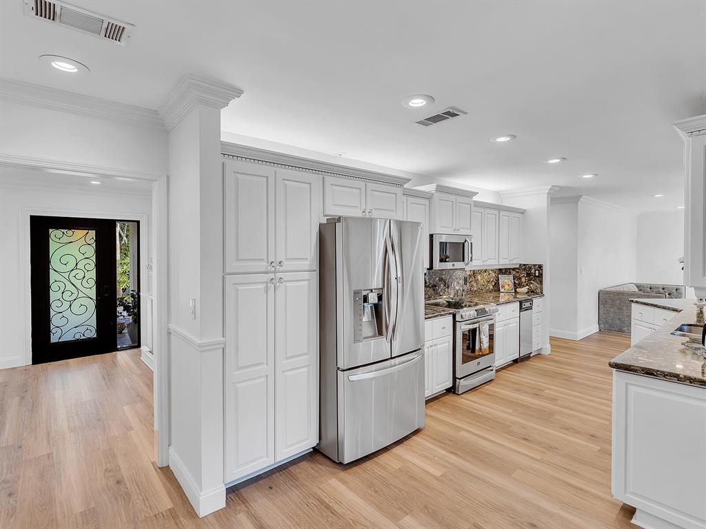 This 3 bed/2 bath single family with no neighbors in front, situated with a view of the park, is located in ''Paseos'', a sought after and highly-desirable gated community in the heart of Boca Raton, Florida. This home has been recently renovated. New flooring throughout the entire house. The large main bedroom with walk in closet, comes with a remodeled en suite bathroom that features a large and luxurious marble walk in shower. Lots of natural light, with a bright & open living area. Custom chandelier lighting and crown molding throughout. Spacious kitchen with stainless steel appliances. Separate/inside laundry room and a 2 car garage. Tranquil large pool and screened in patio. Prime location, centrally located with a great A-rated school district. Walking distance to shopping, the