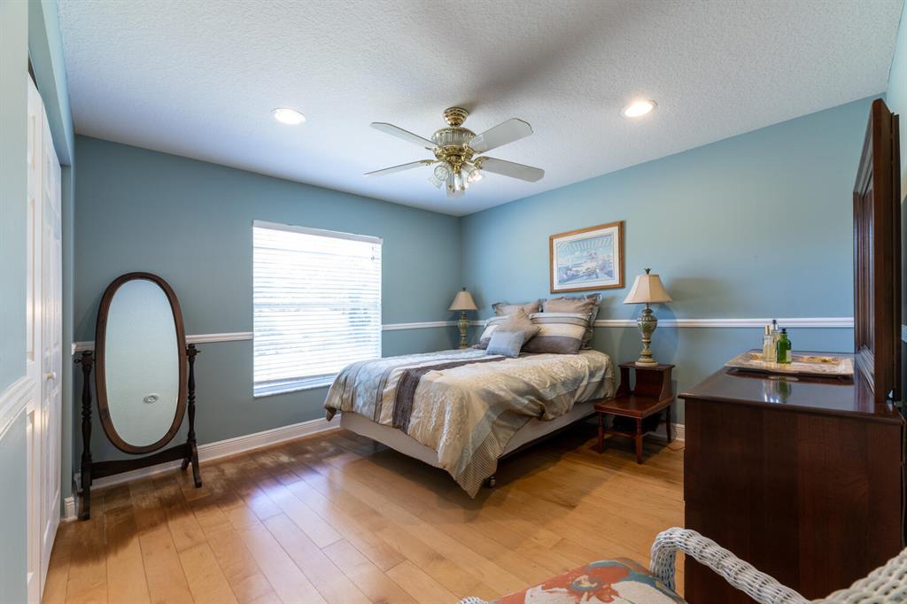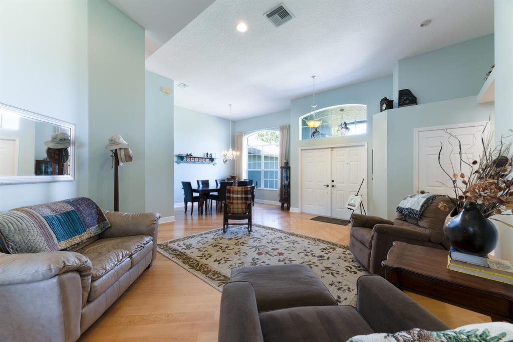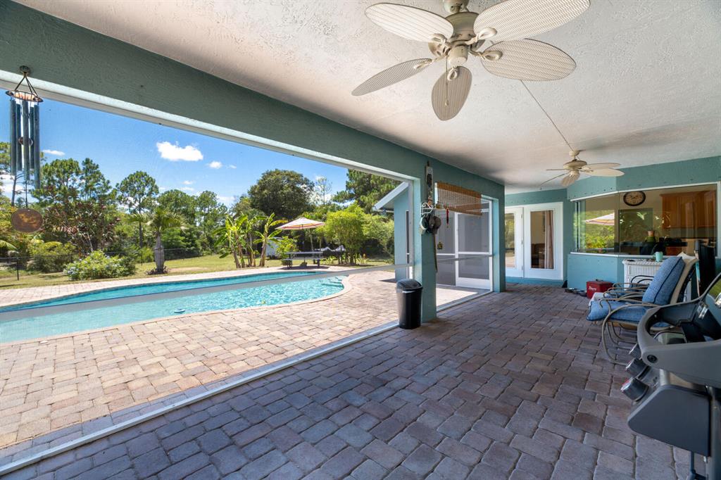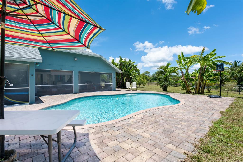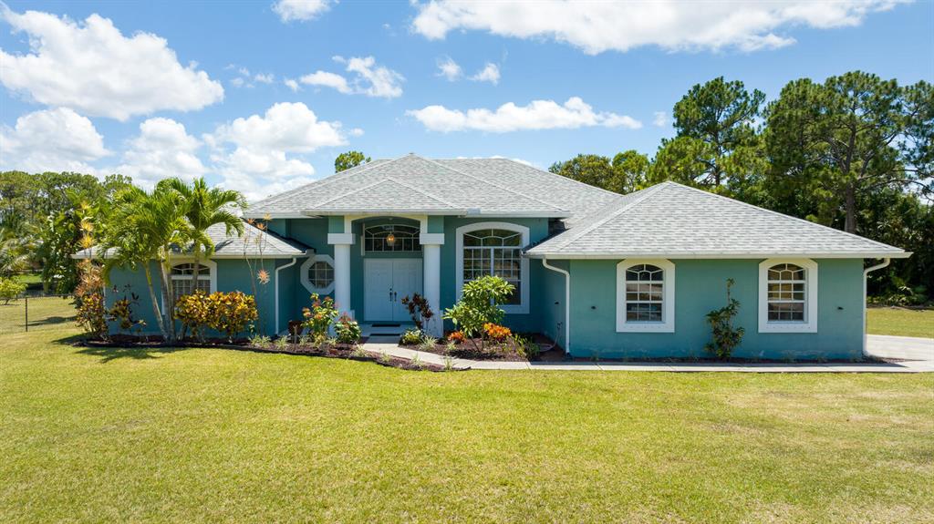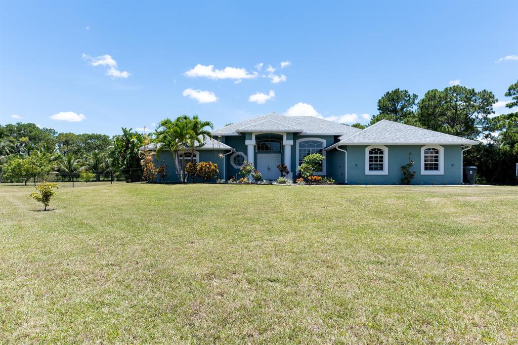 2.46 acres with water views and privacy! This 3 bedroom plus den, 2.5 bath, pool home is located on a large lot with canals on the eastern and southern portions of the property. It features a spacious open floor plan with split bedrooms and room to entertain. Enjoy your screened in back porch, overlooking your private pool, large yard, and relaxing water views! The kitchen features wood cabinets, breakfast nook, pantry, and a bar. Wood floors and high hat lighting throughout. The den can be utilized as a 4th bedroom or office. The master has french doors to patio area, a large walk-in closet, and dual sinks. Roof was replaced in 2019, exterior paint in 2020, gutters, irrigation system and pool pump within the last year. Check out this beautiful home on a unique lot before it's gone!