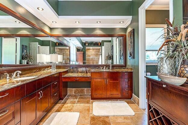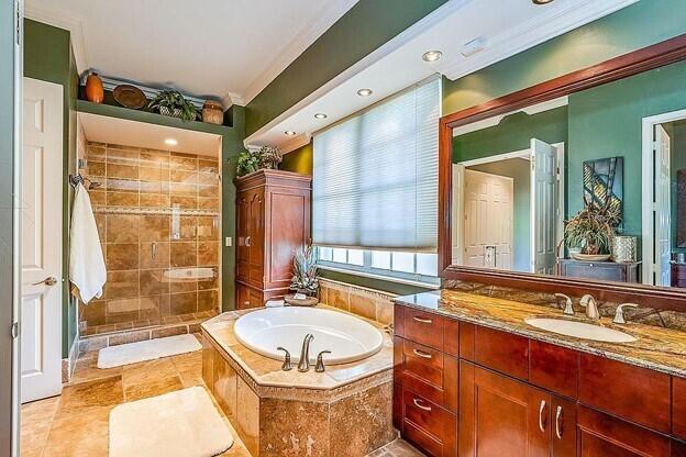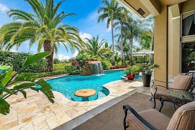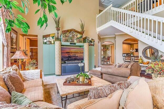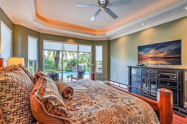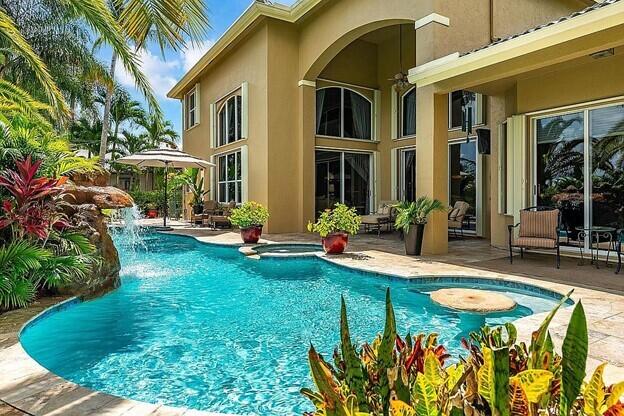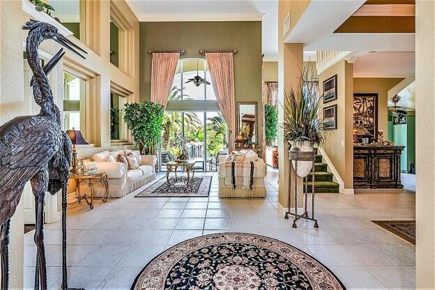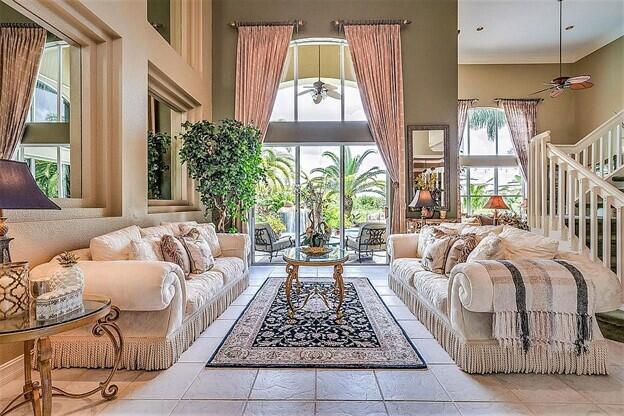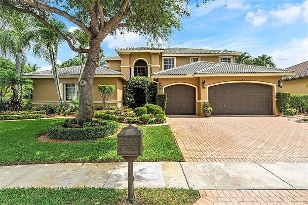 Vacation at home in this wonderfully appointed Mediterranean style executive residence in the desirable Estates of Pembroke Shores. This home features a long list of decorator touches including soaring 20-foot ceilings, custom mirrors, crown molding and walls of glass. The spacious ground floor master suite includes 2 huge closets that can be used for storage, an exercise room or even a nursery. The master bath boasts dual vanities, jacuzzi style tub, marble floors, recessed lighting and a double shower. The second floor includes a second master suite and two additional bedrooms with a large loft area overlooking both the living room and family room. The main living space provides an open floorplan w/ living room, dining room, family room and breakfast room. A comfortable media room...