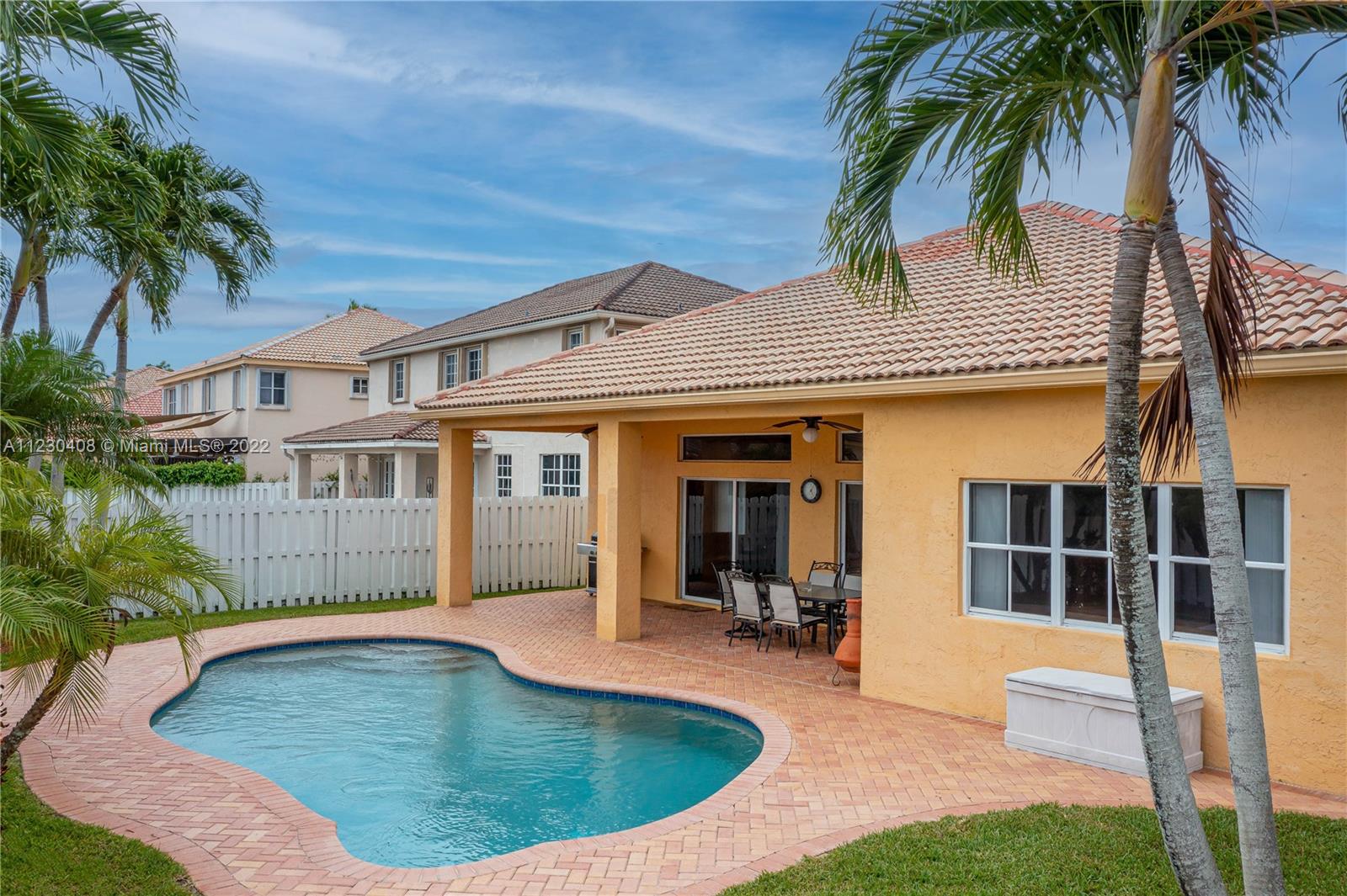 Perfect opportunity to own this fantastic and very well-maintained single-family home. Pride of ownership! This gem is located in “The Meadows”, a gated community surrounded by A+ rated schools. 3 bdrm, + den/office, which could be used as a 4th bedroom. Property has been recently painted both inside and the exterior. Stainless steel appliances in the kitchen, with plenty of room for a breakfast/eat-in kitchen. Split bedrooms offer a lot of privacy to the master bedroom. Double sinks in master bath, separate shower and bath tub; a spacious W.I.C in master bdrm. Diamond brite pool, combined with an extended covered patio area and fenced back yard, provides plenty of privacy; perfect for entertainment. Separate indoor laundry room. Community provides a pool, basketball court & playground.