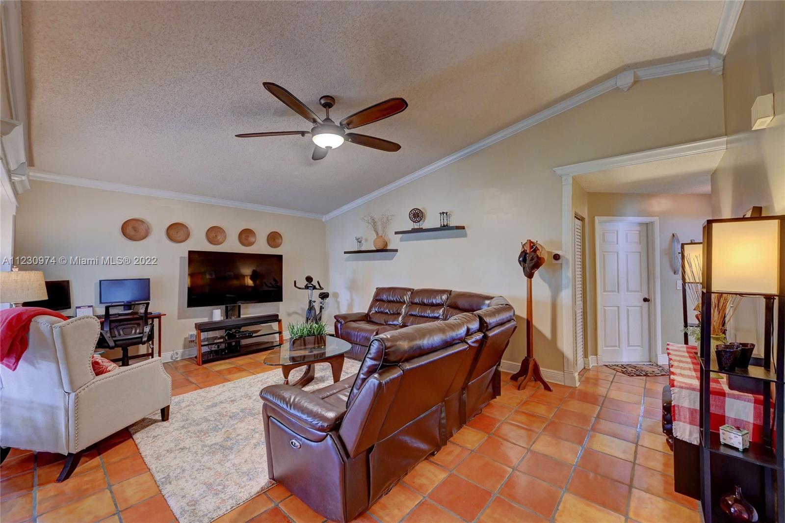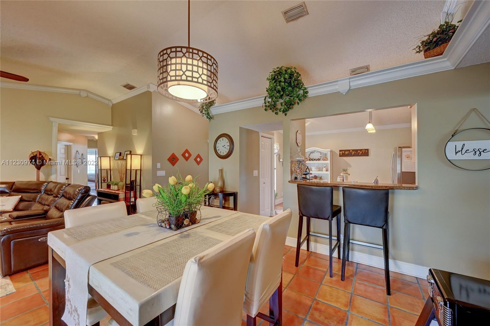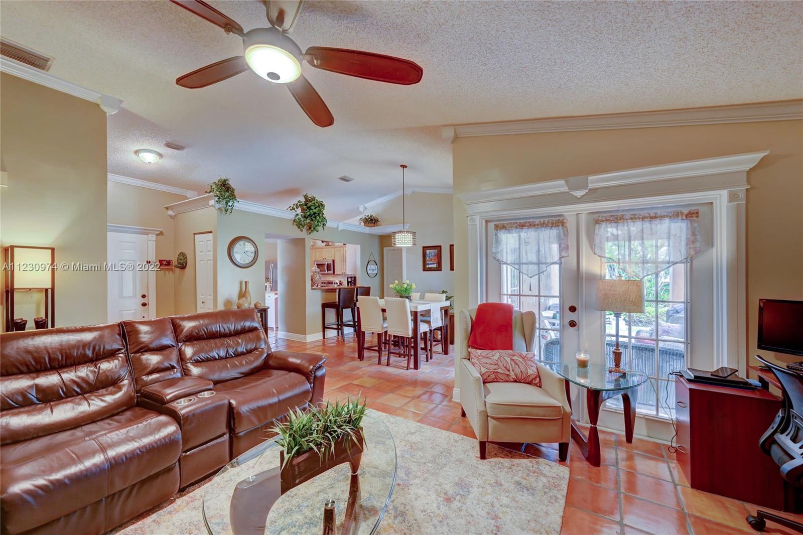 Come see this gorgeous super clean home that has 3-bedrooms, 2-bathrooms with an upgraded kitchen and bathrooms along with a 2-car garage. The interior features Mexican tile flooring, French doors, crown molding, and many upgrades! The kitchen offers a granite countertops and new stainless-steel appliances. You'll love the master bedroom's spacious walkthrough closet and the double sink bathroom vanity with barn doors. The home has accordion shutters, and the back patio has a spacious covered porch with a beautifully landscaped and fenced backyard. This home is situated in an excellent neighborhood in Sunrise and is zoned for Weston public schools.