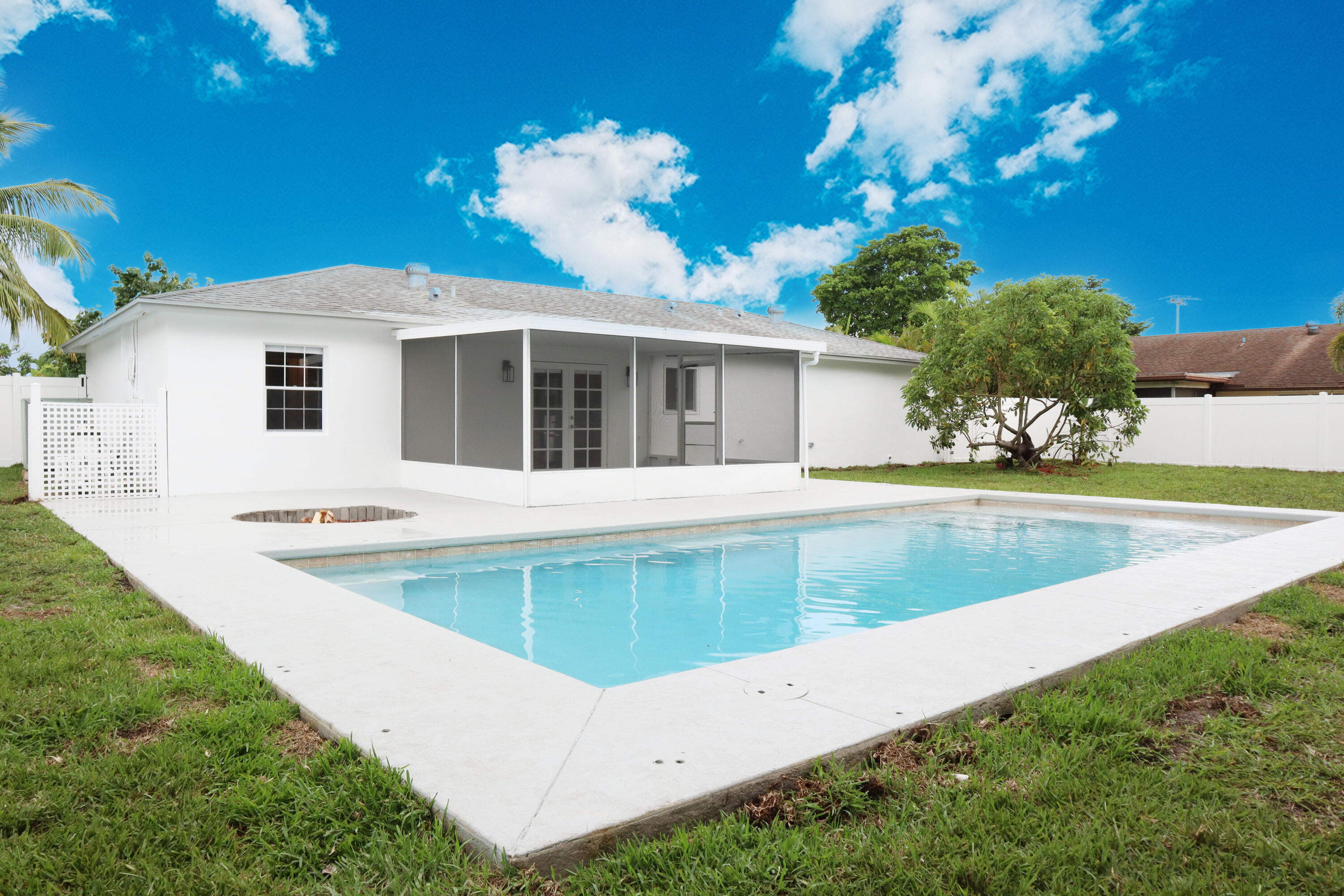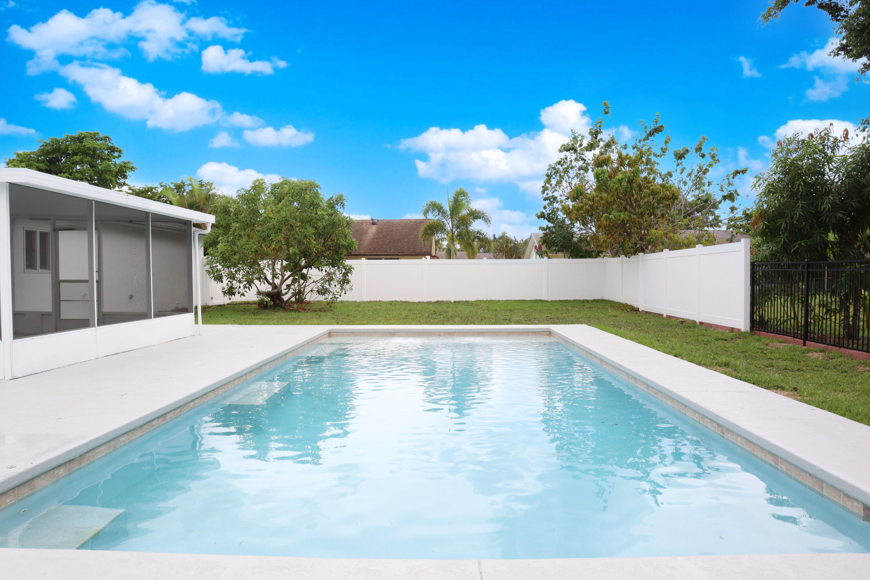 You will love the 3/2 that has a prime location and a pool. The CBS home has a split design. The location is near the park which is a huge plus. You will love having an endless play area down the street. Your backyard is large with plenty of room to play, an oversized pool and a fire pit. You have numerous fruit trees that will soon be your favorite to enjoy including a coconut and avocado tree. The home has been freshly painted inside and out. The kitchen has wood cabinets, granite countertops and stainless steel appliances.The primary bath has an open shower and jetted tub. There is a closet area by the primary bath. There is parking for your boat (up to 22') or other toys at the side driveway behind the gate. Run to see this home! You will be glad to call this home.