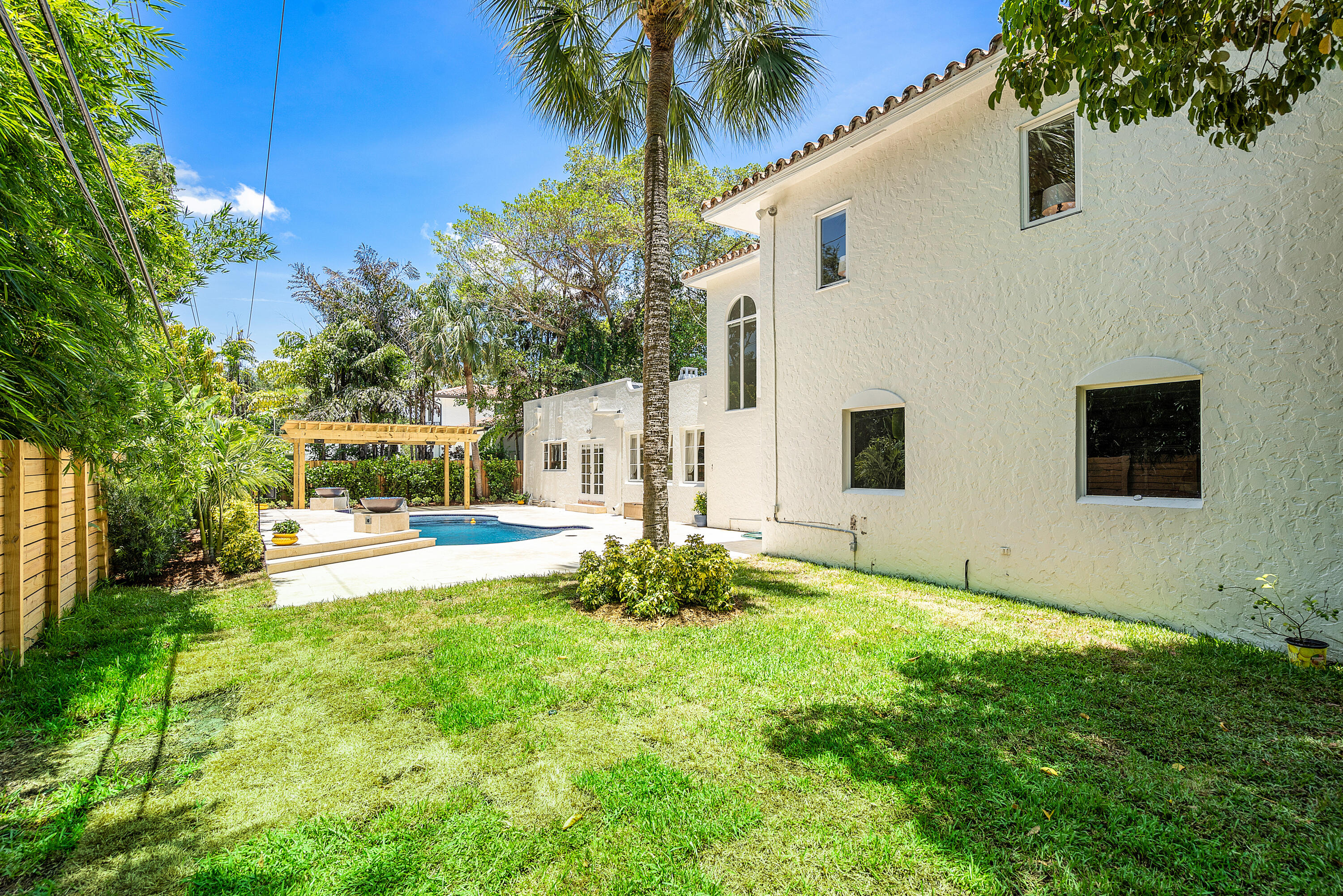 Rarely available, this authentic Mizner jewel dates back to 1926 and is an original Addison Mizner home nestled in Boca Raton's highly sought after historic neighborhood of Old Floresta. This historically designated 3 bedroom, 3 bathroom home presents stunning architectural details including Pecky Cypress ceilings, handmade tiles, hard wood floors, 10' and 14' ceilings throughout and wood burning fireplace. A tropical oasis surrounds the newly renovated pool with firepit waterfalls, new pebble tech diamond brite, a new sun shelf with umbrella, all new travertine pavers and a new pergola with lights and fans All new sprinkler system & all new mosquito misting system complete this million dollar backyard. The kitchen also features a new gas cooktop and refrigerator. An Addison Mizner jewel,