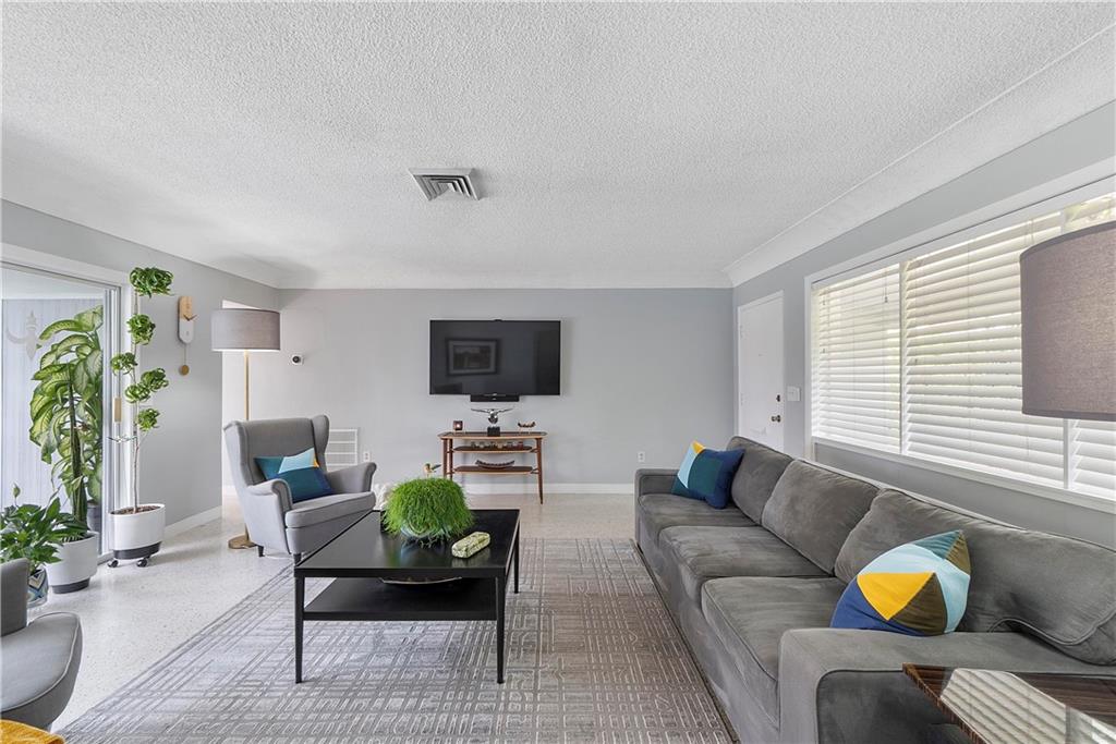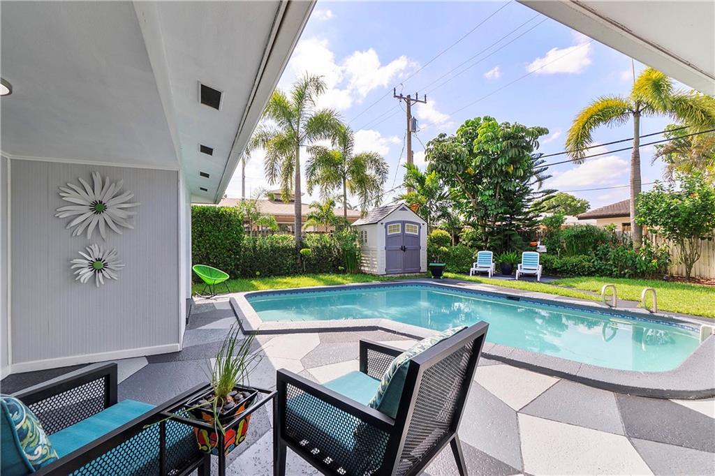 A charming 2/2 + 2-car garage with a circular driveway in the heart of Coral Ridge. Home is in pristine condition with terrazzo floors throughout. Spacious split floor plan with two master suites, each with walk-in closets and attached bathrooms. A ton of natural light throughout the home. Ideal spot for indoor/outdoor entertaining with a beautifully landscaped back yard, pool, ambient lighting and storage shed. Privacy fence on all sides, great for pets. Centrally located only 1.7 miles to Lauderdale By The Sea.