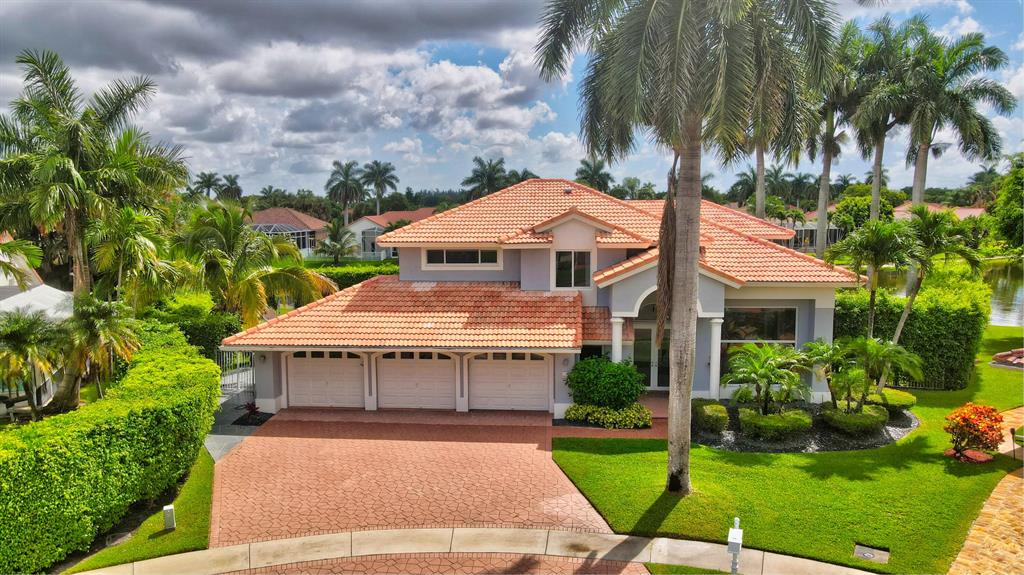 WELCOME HOME TO THIS ONE OF A KIND BOCA RATON ESTATE HOME! A true oasis awaits in this private cul-de-sac gated lakefront community. Enter and you are surrounded by a light filled entertainment room with hurricane impact windows plus sliders throughout the home. An array of custom fixtures paired with Tiled Flooring that compliment each other perfectly. As you move through the home you see each space is filled with an abundance of natural light allowing views of the aqua blue water of the pool/hot tub. This estate home showcases 6 bedrooms/3 bathrooms pristine craftsmanship, w/soaring ceilings on the main level, modern white soft close kitchen cabinets along with a massive island, one-of-a-kind custom-made designed perfectly for indoor & outdoor living & entertainment.