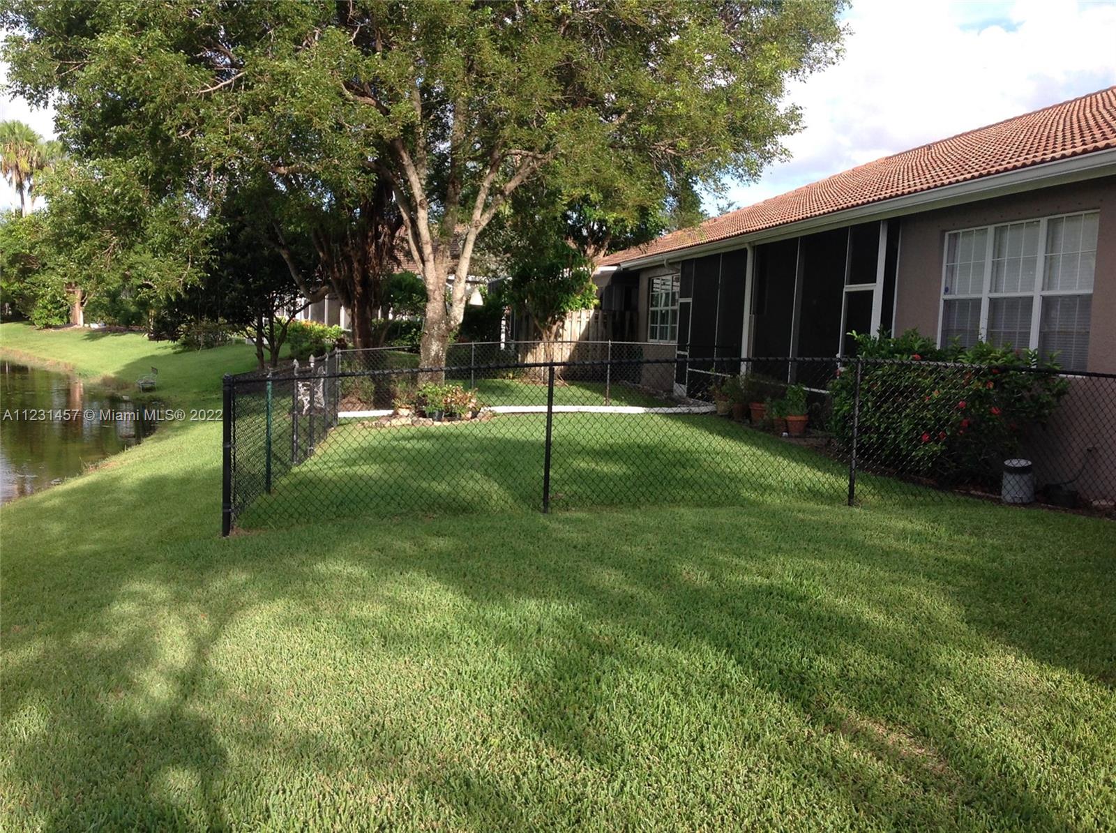 Beautiful spacious 2/2 villa located in a gated community in sunrise .Two car garage , small court yard between the garage and the front door vaulted ceiling big master bedroom separate shower and tub walk in closet. Community offer 2 pools ,gym ,tennis and basket ball court and a club house. Fence in back yard for your pets .New washer and dryer appliances in the kitchen are three years old. The property has hook up to run a generator when there is a hurricane and there is no power. Security patrol the community at night . Lake at the back of the house . Close to malls ,restaurants and shopping A great place to live .
