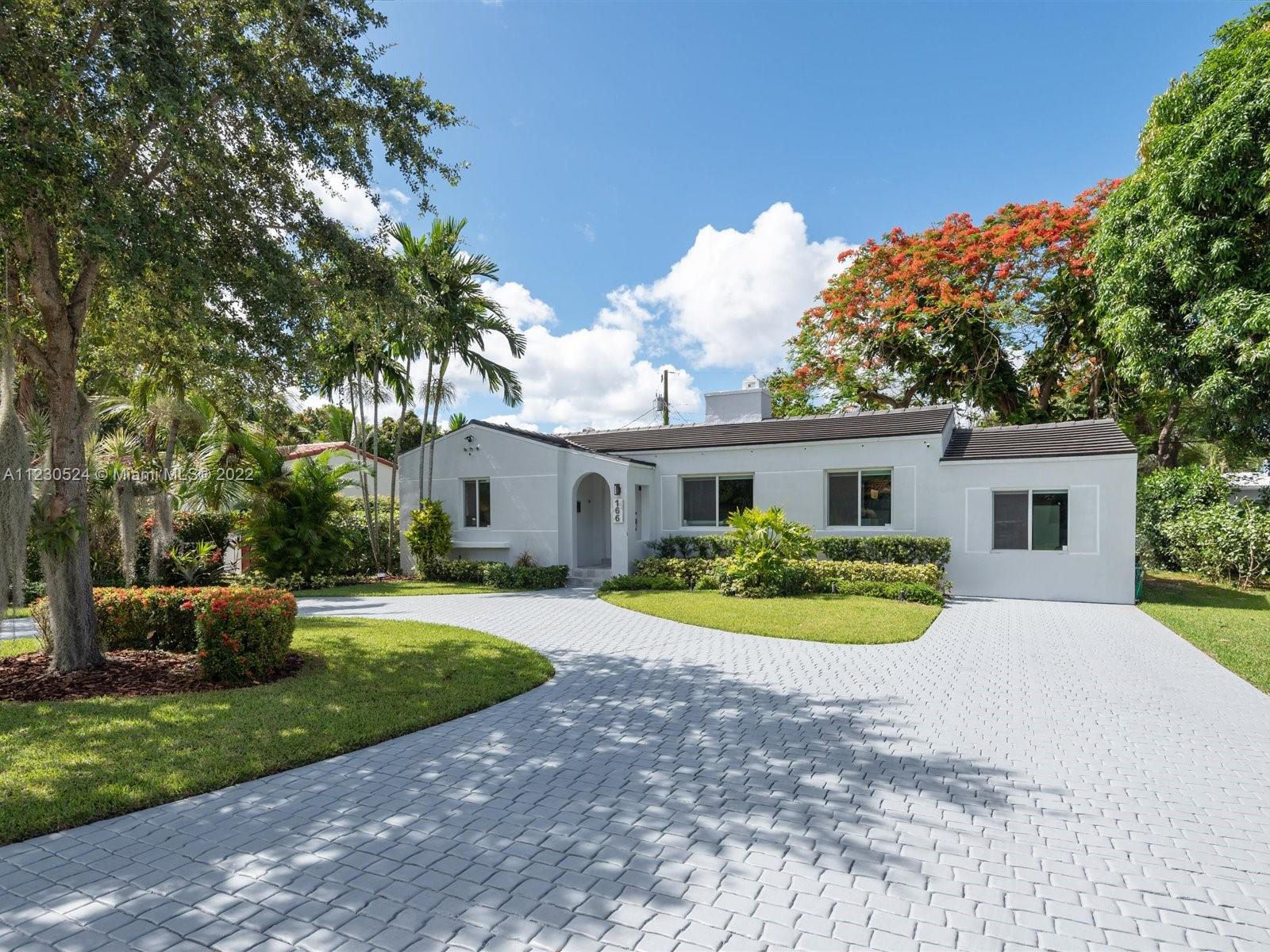 Stunning Art Deco Home in Miami Shores! This 2 bed/1 bath w/1347 SqFt has been completly updated. Interior features: AC (2015), Tankless water heater (2022), freshley painted exterior (2022), Kitchen w/level 5 cabinets, granite counters, built-in microwave & oven and separate cooktop & hood (2015), Bathroom w/shower panel & lighted fog free mirror (2015), restored original hard wood floors & interior solid wood doors, beautiful wood buring art deco fireplace, Bonus Room w/approved for 2nd bath addition. Exterior features: Roof (2019), Hurricane Impact windows & doors (2015), freshly painted circular stamped driveway(2022), backyard oasis w/travertine patio, Royal Poinciana & avocado trees, fenced yard w/privacy hedge and room for a pool. Truly a move-in ready home!