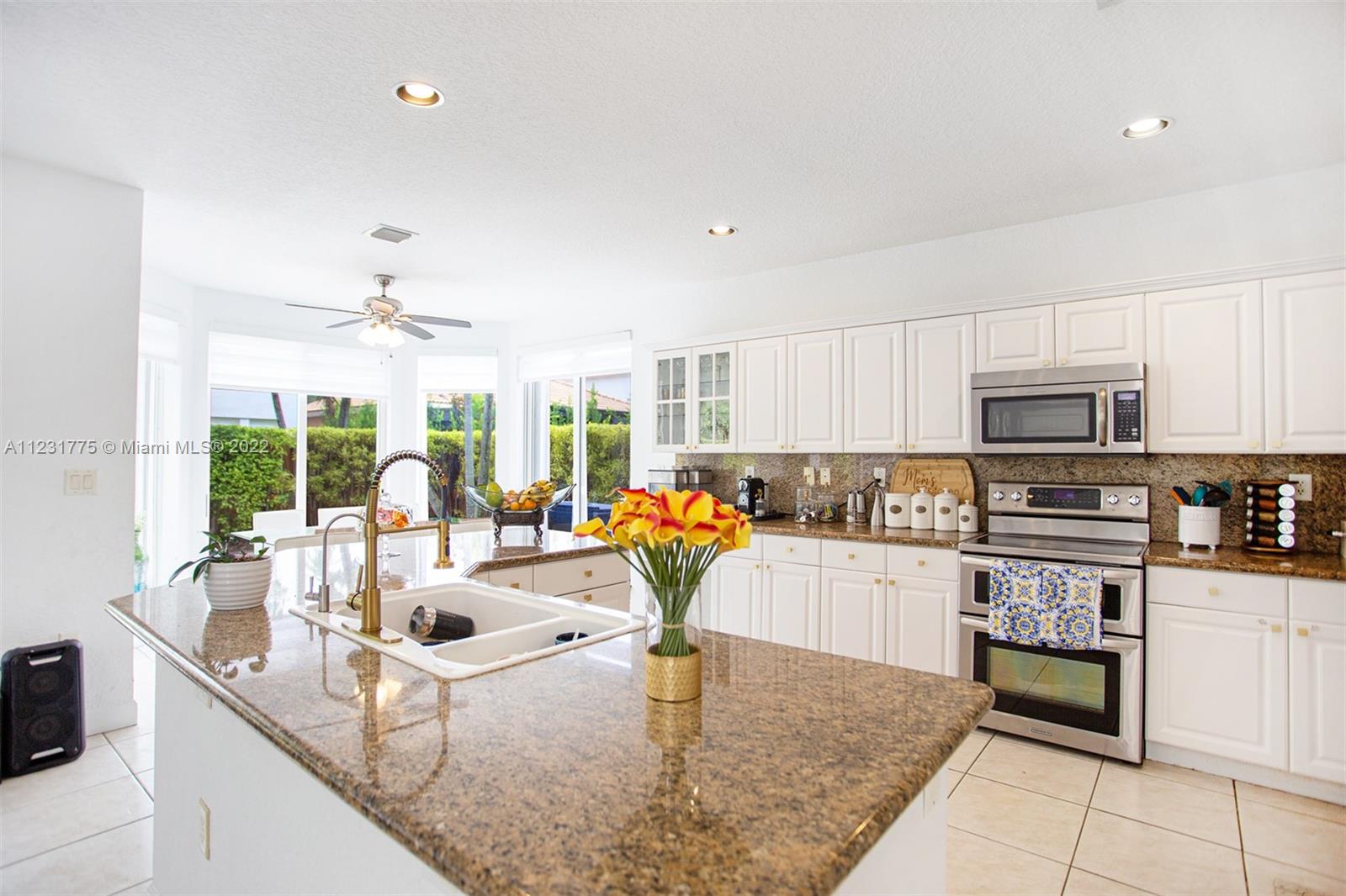 Dream Home in Doral, 5 Bed 3 Bath, Freshly painted completely inside and outside and roof has been freshly pressure cleaned. Kitchen has Refrigerator, Microwave, and Dishwasher. Custom Closets, Three Renovated Bathrooms with new cabinets and faucets, 3 Car Garage, With Space for 3 More Cars in the Driveway, New Alarm System, Brand New Blinds throughtout the entire house, living room has remote control blinds, Black Out Blinds in upper bedroom windows, Patio has an installed fan with light, dining room has a new lamp with fan, new lamps in entire house, Laundry Room has a custom sink with a new faucet and bottom storage. Water filtered throughout house with guarantee.Wonderful Club House with Resort Style Amenities, Gym, Sauna, Pool, Volleyball, Tennis and Basketball Courts,Soccer Field etc