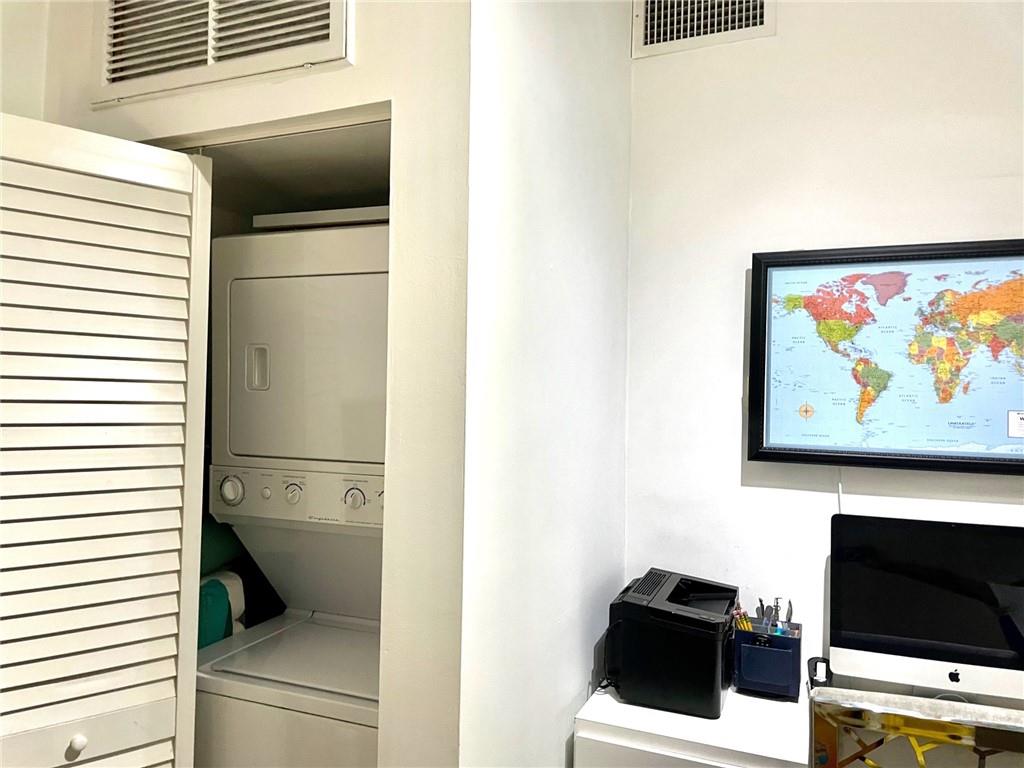 Unique and spacious Townhouse style condo with vaulted ceilings. Centrally located near Wilton Manors, Downtown Fort Lauderdale and Fort Lauderdale Beach. HOA includes water and building insurance. 2 assigned parking spaces right at your front door. First and second floor bedrooms with laminated floors. Walk-in closet and full bathroom in each room. Jacuzzi tub in upstairs bathroom. Loft area makes perfect office room. Washer and Dryer on the loft level. Stainless Steel Appliances. Sunny patio overlooking large common pool area. BBQ grill allowed in the private patio. Pets allowed. Low maintenance fee.
