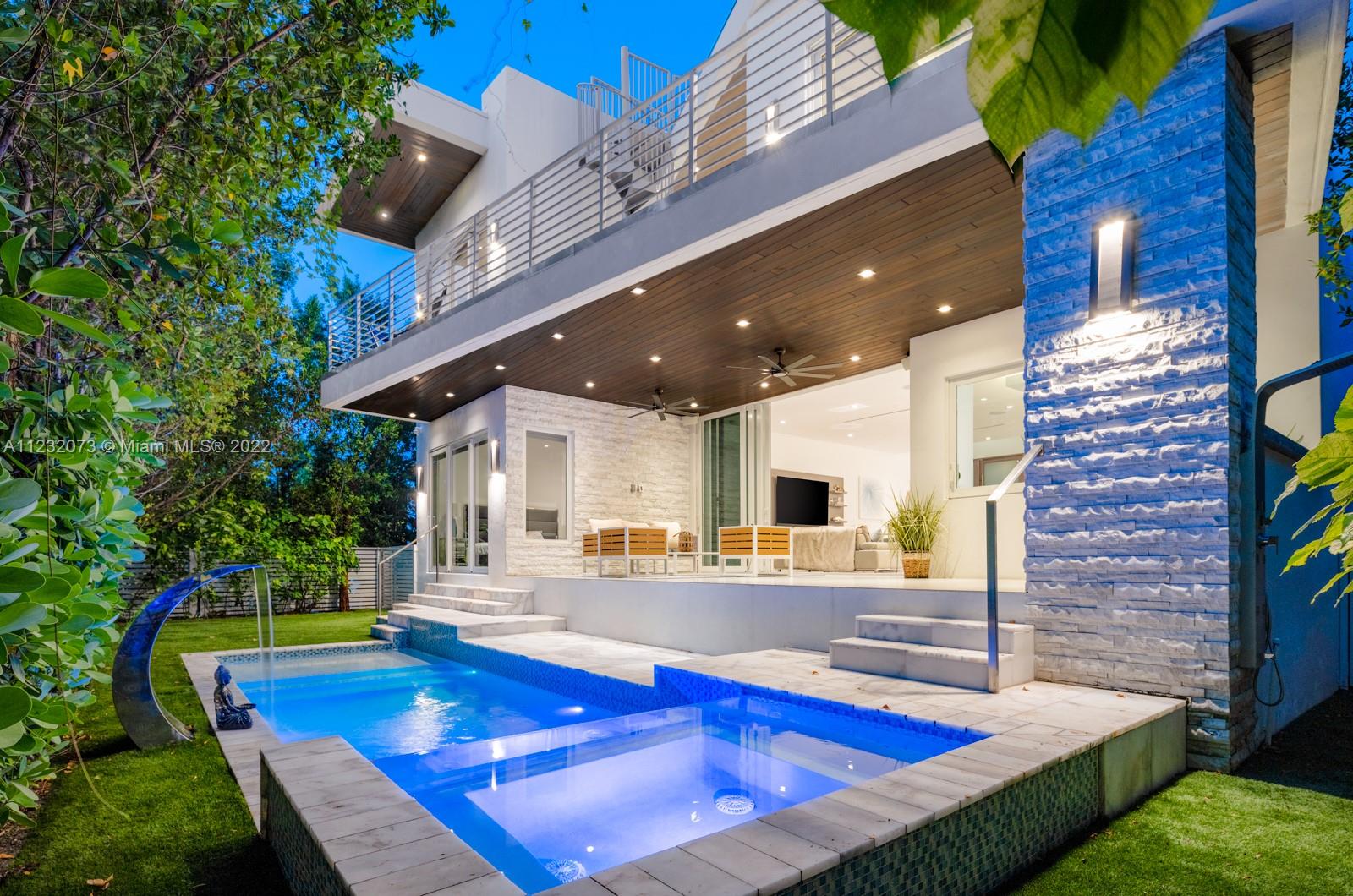 Sophisticated contemporary elegance awaits in Miami Beach's finest smart home being offered fully furnished turn-key. A recently constructed home with over 5000 sqft of indoor/outdoor space, this is an entertainer’s masterpiece featuring two living/entertainment areas, each equipped with a kitchen, suited for hosting guests and family. Curated with top of the line finishes and interior design, Meile appliances, custom artistic glass and steel staircase, dramatic chandelier, media/game lounge with wet bar, exotic acrylic glass spa/heated pool with automated water and ambient lighting features, you are sure to make the most memorable impressions. Open each of the living room areas completely for a true indoor-outdoor lifestyle as you make your way to the incredible 3rd level private rooftop