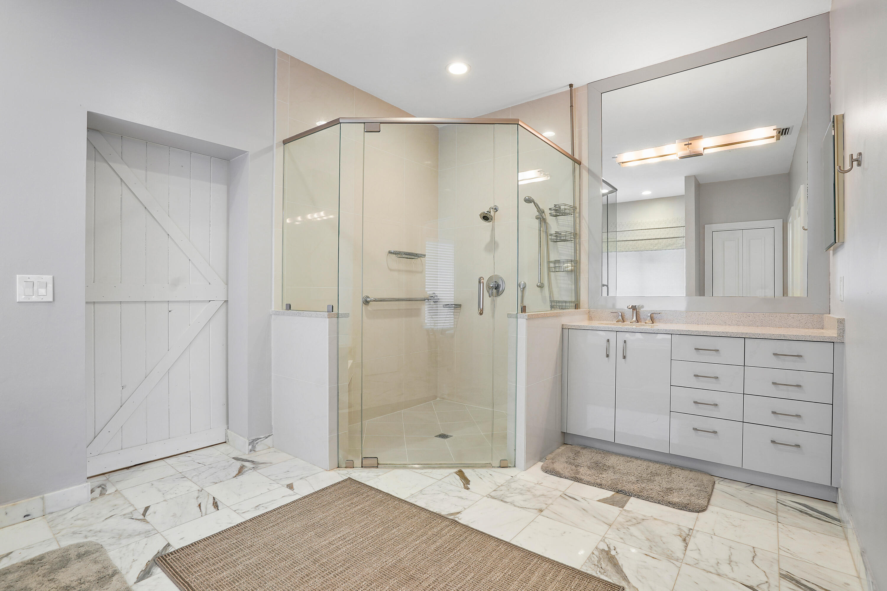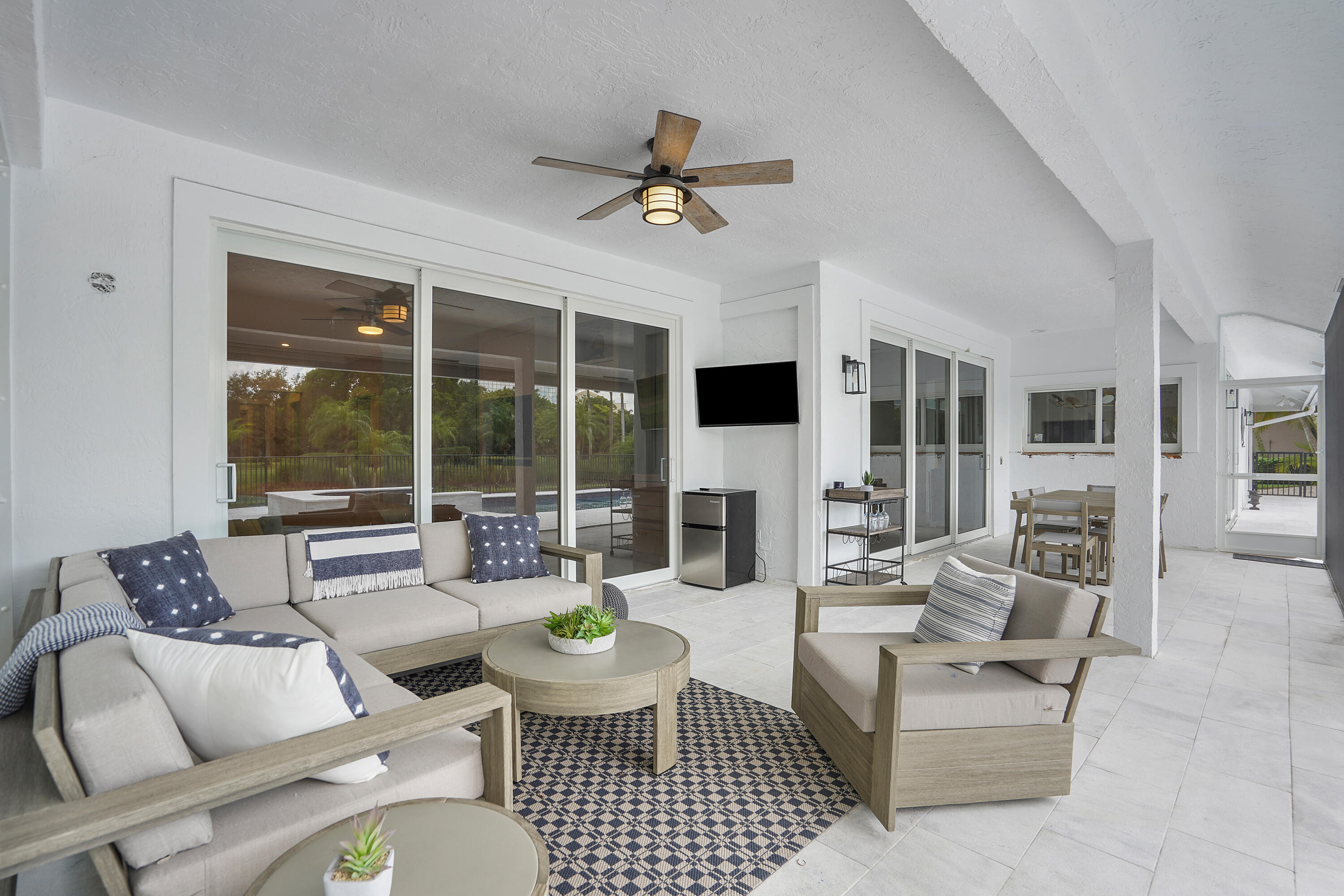 Beautifully updated 4BR/3.5BA ranch style home situated on the 8th fairway in Boca Grove with stunning lake and golf vistas and no rear neighbor. The vaulted ceilings allow for plenty of light and the impact sliders maximize the view. The split bedroom plan provides privacy for all family members. The kitchen is prepped and ready to be completed by the Buyer. New, high end appliances are already in house. The backyard retreat features a 34 foot screened-in lanai, newly renovated salt water pool with spa, marble patio, completely automated pool equipment and lush landscaping. Full hurricane protection and a whole house generator complete the package. This home is close to great shopping, fine dining and houses of worship. Come and experience all that Boca Grove has to offer.