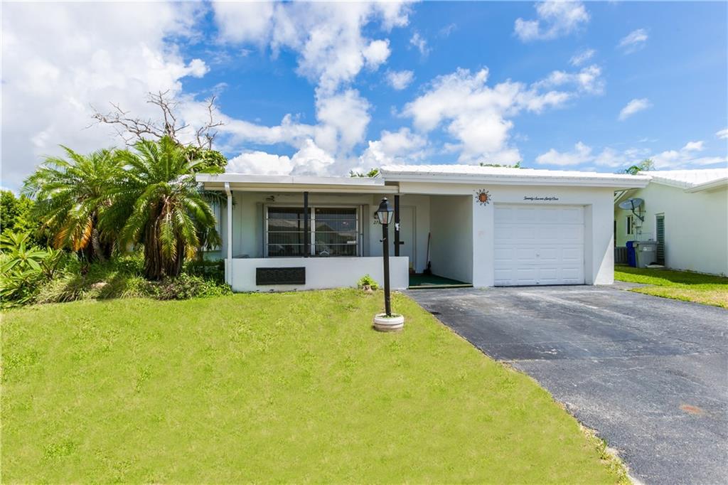 THIS 2/3 BED 2 BATH 1 CAR GAR WHERE 3RD BEDROOM (WITH PRIVATE ENTRANCE) COULD BE OFFICE/DEN LOCATED IN 55+ COMM WHERE YOU CAN GOLF FOR FREE OR FLOAT IN ONE OF THE TWO BEAUTIFUL COMMUNITY POOLS, OR GET IN YOUR CAR AND DRIVE TO POMPANO BEACH APPROX 4 MILES. COMMUNITY HAS SHUTTLE BUS. TILE THROUGHOUT, TANKLESS H20 HEATER, UPDATED ELECTRICAL PANEL, ACCORDIAN SHUTTERS. ROOF PAINTED JUNE 2022. PET FRIENDLY AND RENT IMMEDIATELY. NOOO POPCORN CEILINGS. WITH INTERIOR PAINTING, MAYBE SOME NEW INTERIOR DOORS AND UPDATES TO GUEST BATH AND SOME LANDSCAPING THIS HOME COULD BE YOUR COMFORTABLE PARADISE...