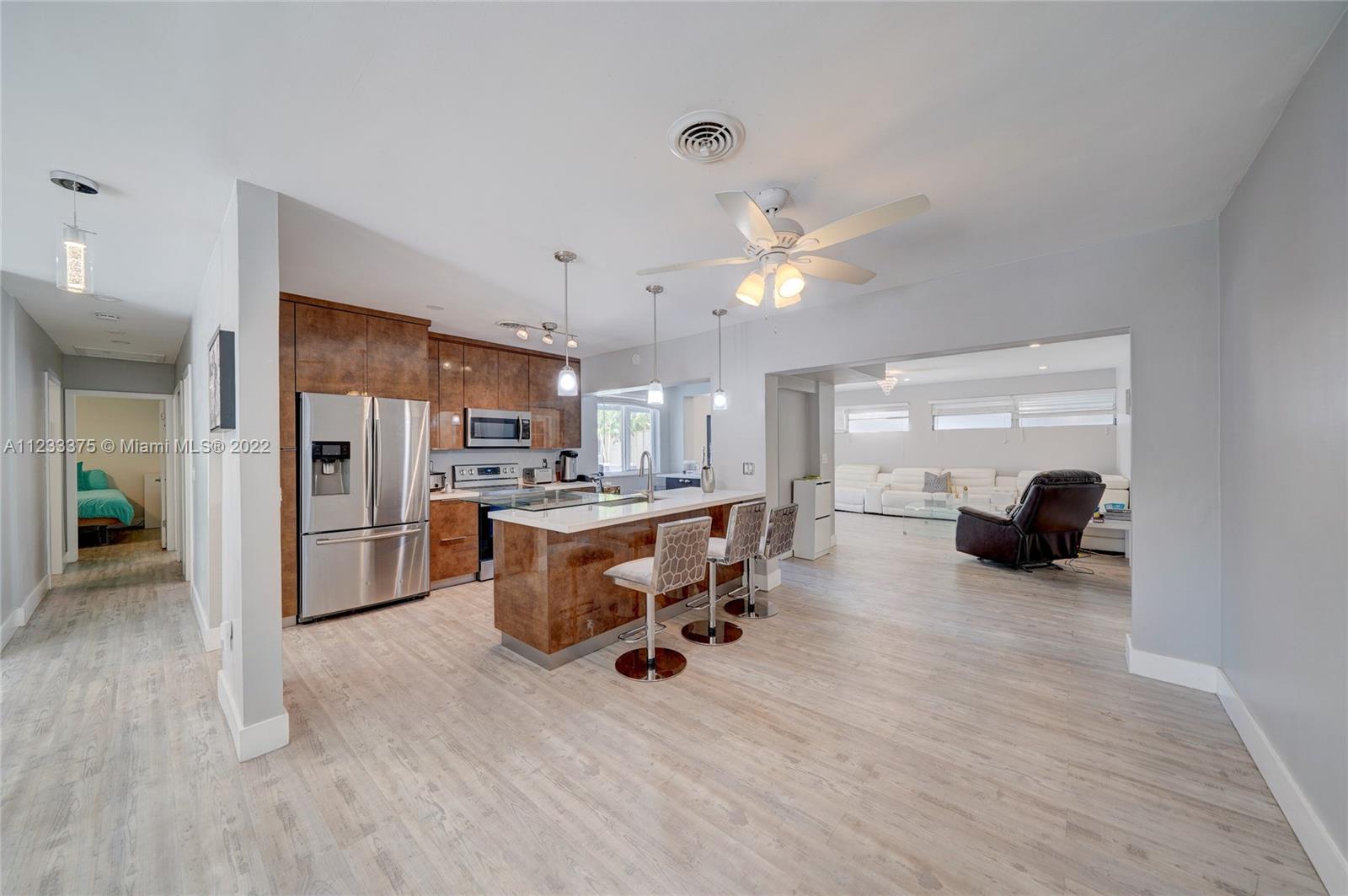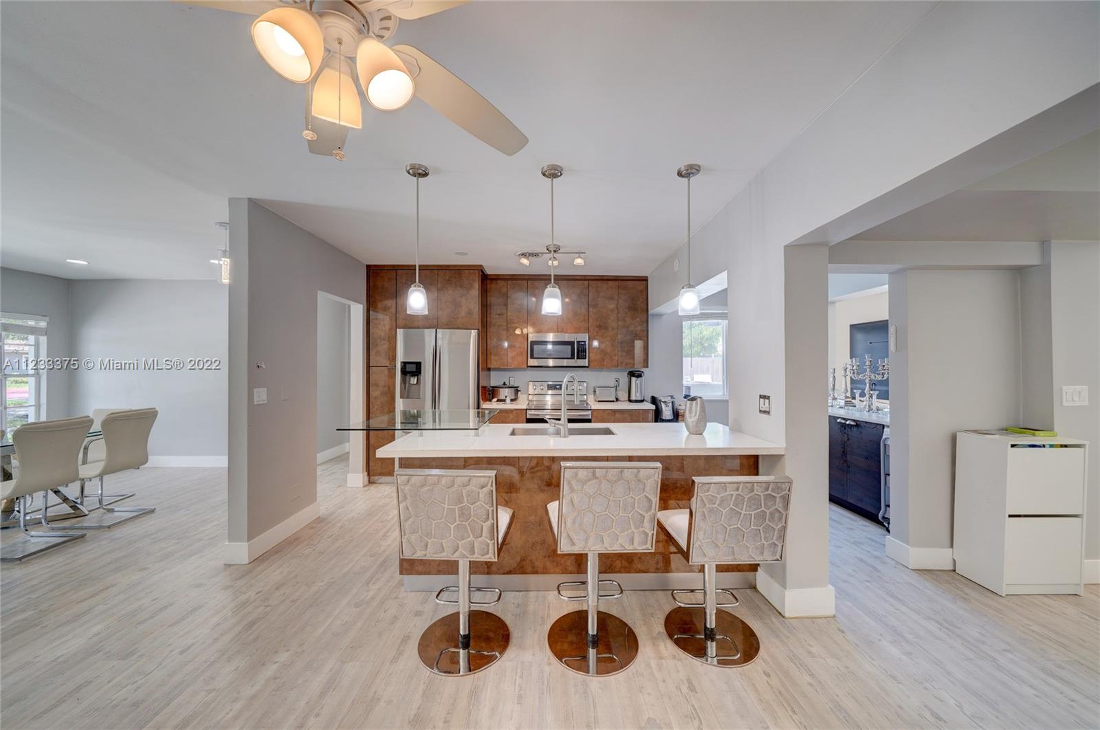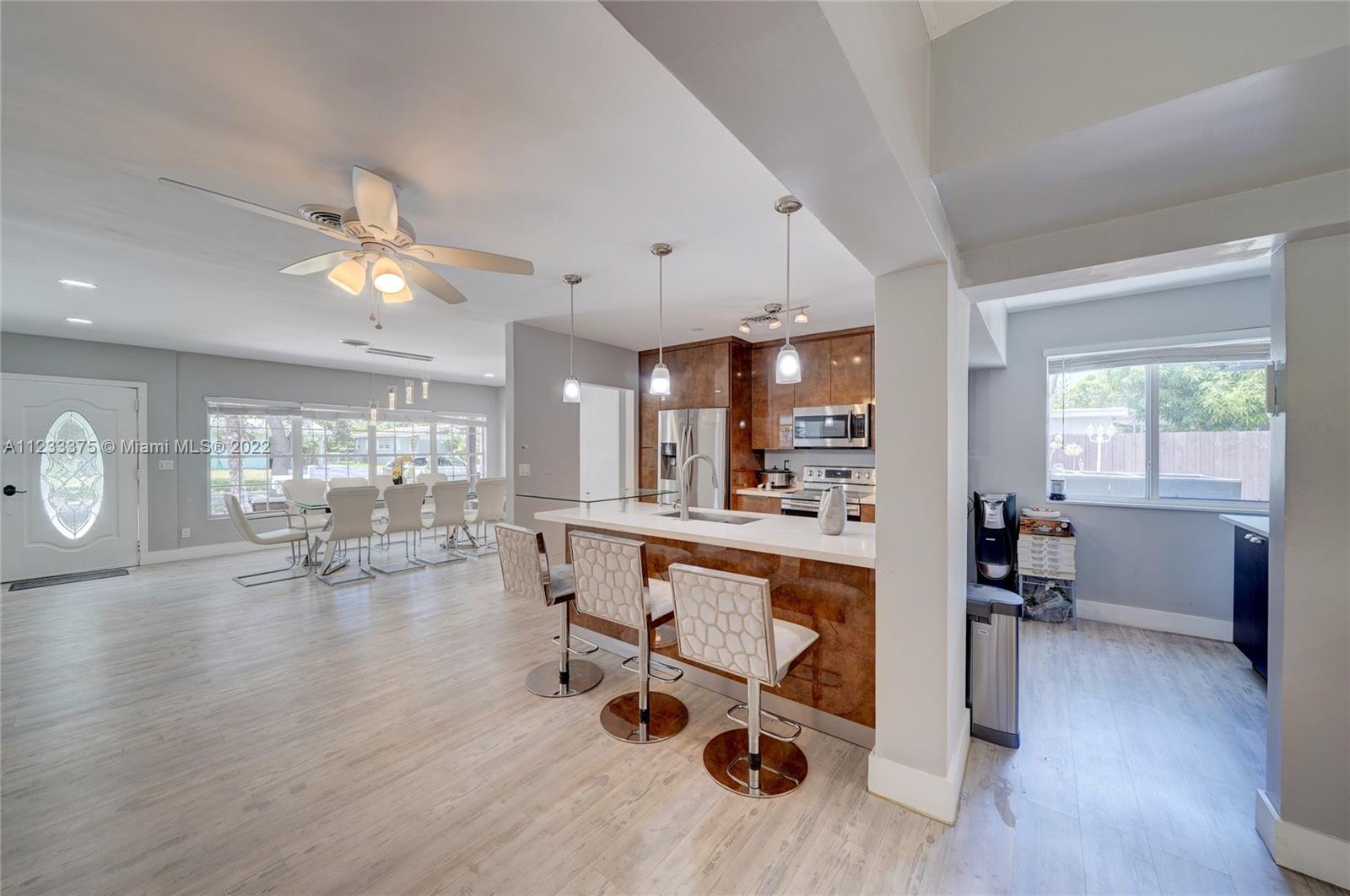 In the heart of Pickwick Lake Estates! Rarely available completely remodeled home with heated pool. FULLY FURNISHED. Everything was updated/replaced including new hurricane impact windows & patio door. Owner’s spacious suite+3 large bedrooms +1 room for in-laws/ home office/kids’ game room. Open concept modern kitchen/living/dining area ideal for large family gatherings. Outdoor living space is ready for your little ones or for relaxing w/friends & family. Private fenced patio, heated pool, outdoor dining/entertaining, & 3 pergolas for shade & added privacy + storage room. Home feels brand new! A peaceful private retreat for all to enjoy! No HOA! Minutes from shops, restaurants. Walking distance to Places of Worship. Easy access to the I-95 highway. FULLY FURNISHED.