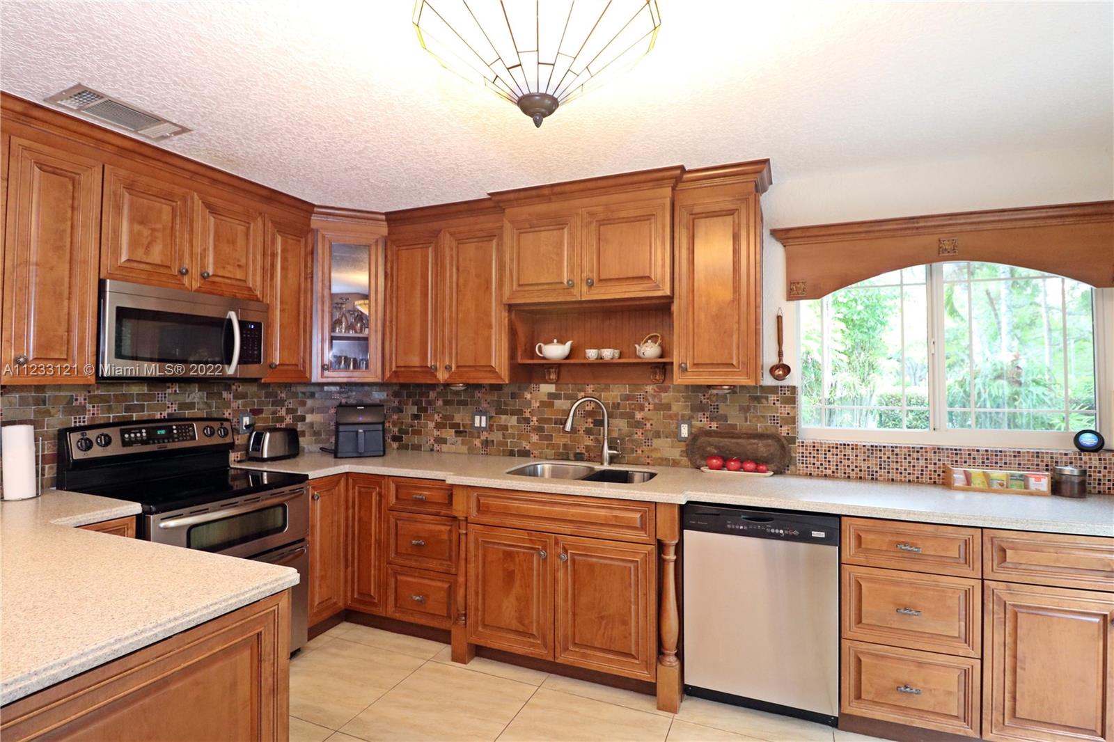 Beautiful two-story single-family home with free-form swimming pool, 4 bedrooms, 2.5 baths fenced patio with tropical landscape, in sought-after Chapel Trail community in west Pembroke Pines, close to schools. No back neighbors, Living room with vaulted ceiling, neutral color and plenty of natural light, upgraded bathrooms, upgraded kitchen with stainless steel appliances wood cabinets & Corian countertops. Tile flooring downstairs and wood upstairs. Garage partially converted into a storage area laundry room with washer/dryer connectors (washer and dryer not included) laundry tub and small office. All bedrooms upstairs. Accordion shutters upstairs and panels downstairs, crown molding, painted inside 2021, replaced roof 2006, air conditioning and pool pump 2019. Must see it to appreciate!
