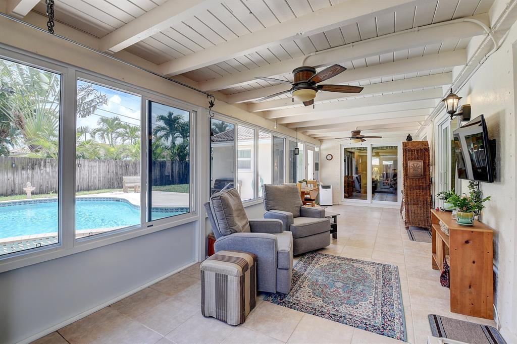 Rarely available in this neighborhood - a true 4-bedroom, 2-bath home with a 2-car garage! Now's your chance to own this charming pool home located in the heart of Boca - near downtown with close proximity to Mizner Park, FAU and the beaches! This home has been lovingly maintained and features an updated kitchen that any chef would love with custom wood cabinetry, granite counters, stainless appliances, and a pass-through window to the sunroom. Fourteen new windows and two doors were recently installed to fully enclose the large sunroom making it easy to enjoy all year long. This home offers a true split-bedroom floor plan allowing for privacy for both the owners and guests. Three sets of sliding glass doors lead out to the sunroom with access to the pool and back yard. Once outside you