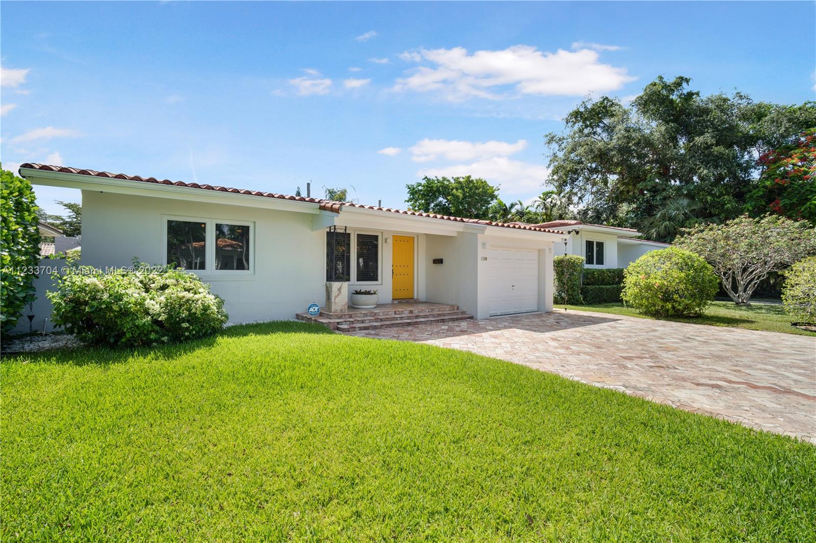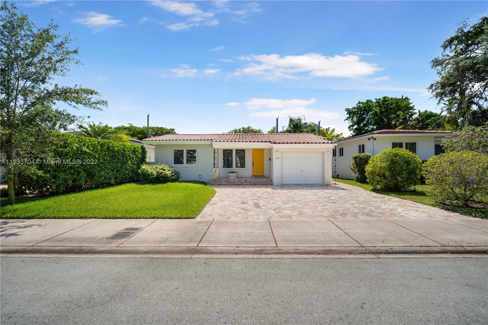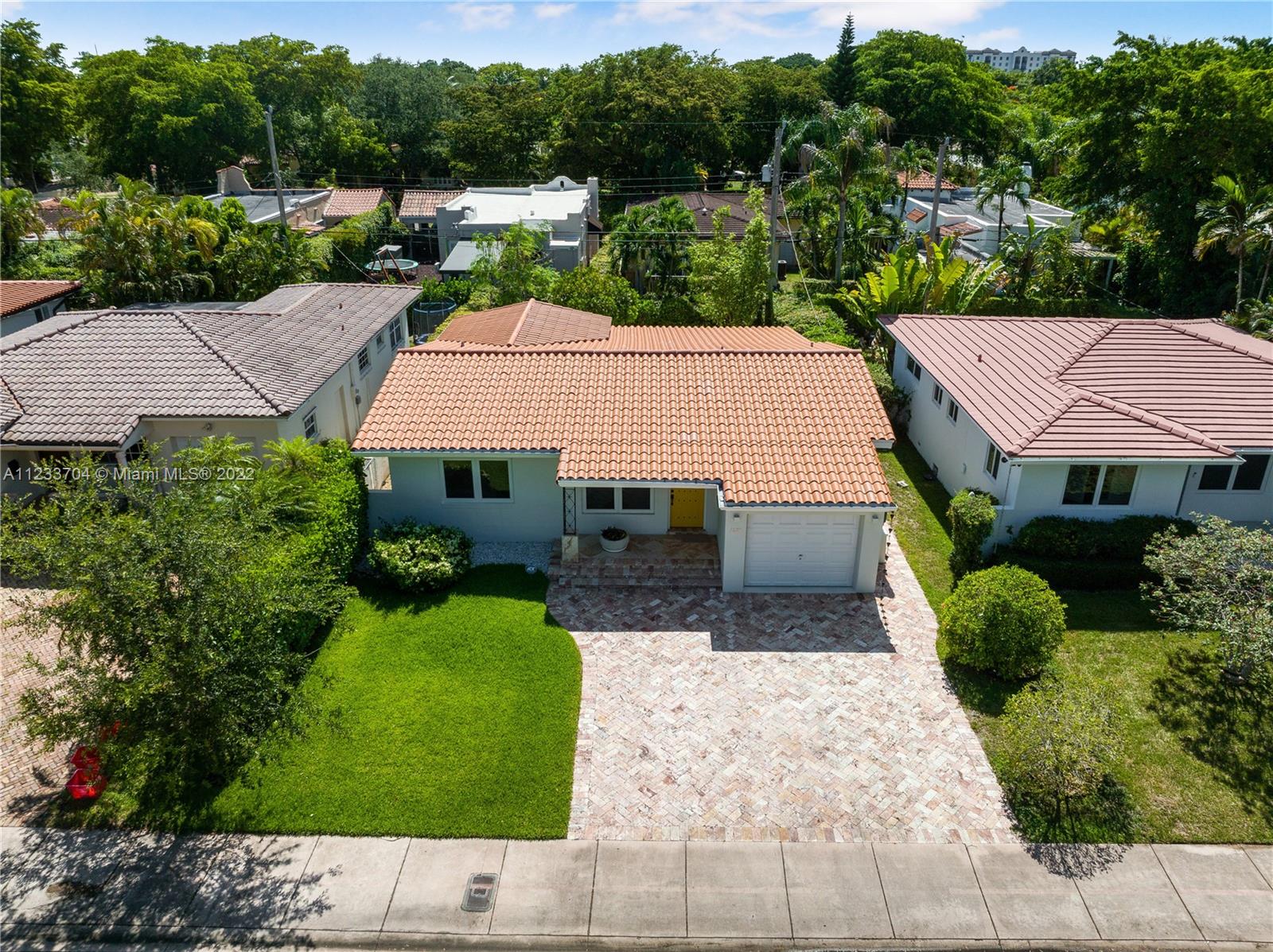 Gorgeous 2 bed, 2 full bath house located in North Coral Gables has been completely remodeled w/ the most exquisite touches. The kitchen comes equipped w/ stainless steel appliances. Elegant wood floor flows throughout the main living areas & bedrooms. The stone patio creates an elegant addition & requires very low maintenance since it is designed w/ fewer grassy areas to care for. Some other great features of this home are the hurricane impact windows, alarm, security camera & a 1 car garage, a true Florida Room ideal for entertaining.