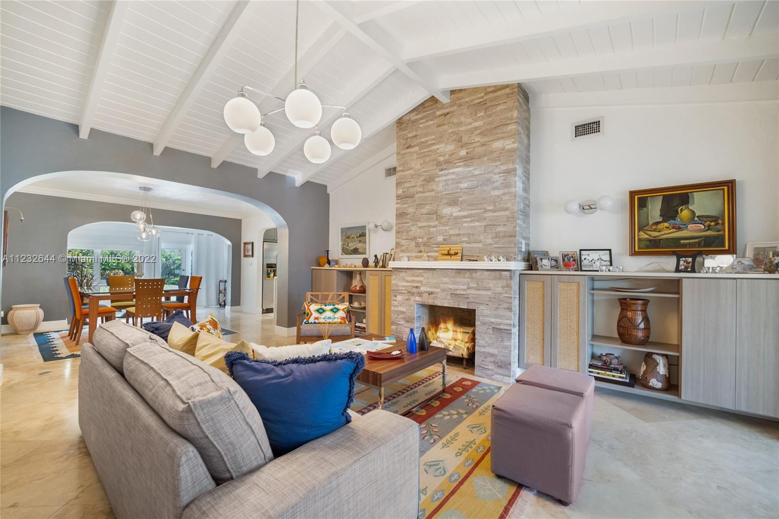 Gorgeous home in the heart of Miami Beach! This 3 bed/3 bath beautiful property features marble flooring throughout, vaulted wood beam ceilings, foyer entry & French doors that give you access to the private backyard with marble terrace & storage. Enjoy relaxing in the living room with a charming fireplace. The garage has been converted to a bedroom with a bathroom for additional space. Love the kitchen with Spanish stone tile floors & countertops, appliances, and wood kitchen cabinets. Beautiful bathrooms with floor-to-ceiling marble tiles, jacuzzi & designer fixtures. Interior wood/glass doors, wood window treatment throughout, barrel tile roof, & natural gas stove. Located just steps from the Normandy Shores Golf Course, Large City park, Youth Center & Normandy Village. Bike to beach!!