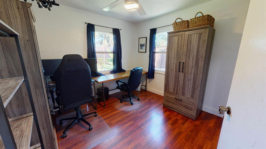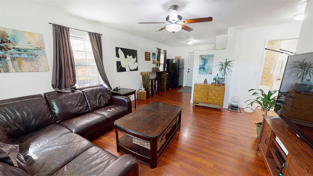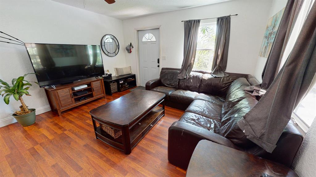 Take the 3D virtual tour of this cozy 2 bedroom 1 bathroom home today. The space is incredibly efficient and there isn't an inch of carpet to be found. The roof is 2 years old, tankless water heater is 2 years old, central AC is 4 years old, and there are complete impact glass windows. The kitchen and bathroom are updated and the yard is completely fenced and landscaped with tons of ornamentals for privacy and fruit trees for your enjoyment! This isn't one you're going to want to miss.
