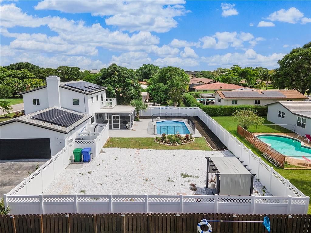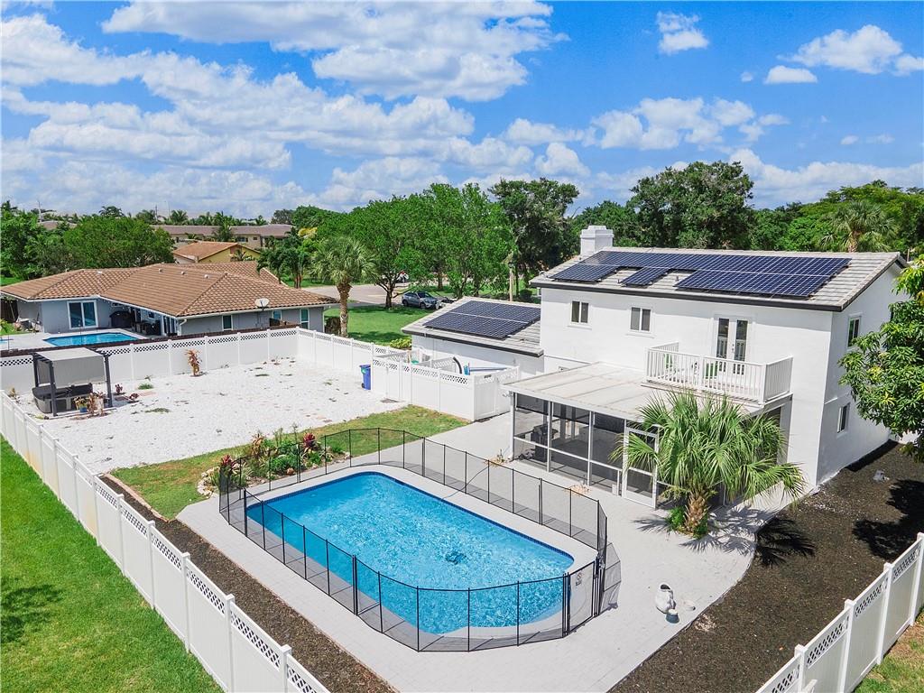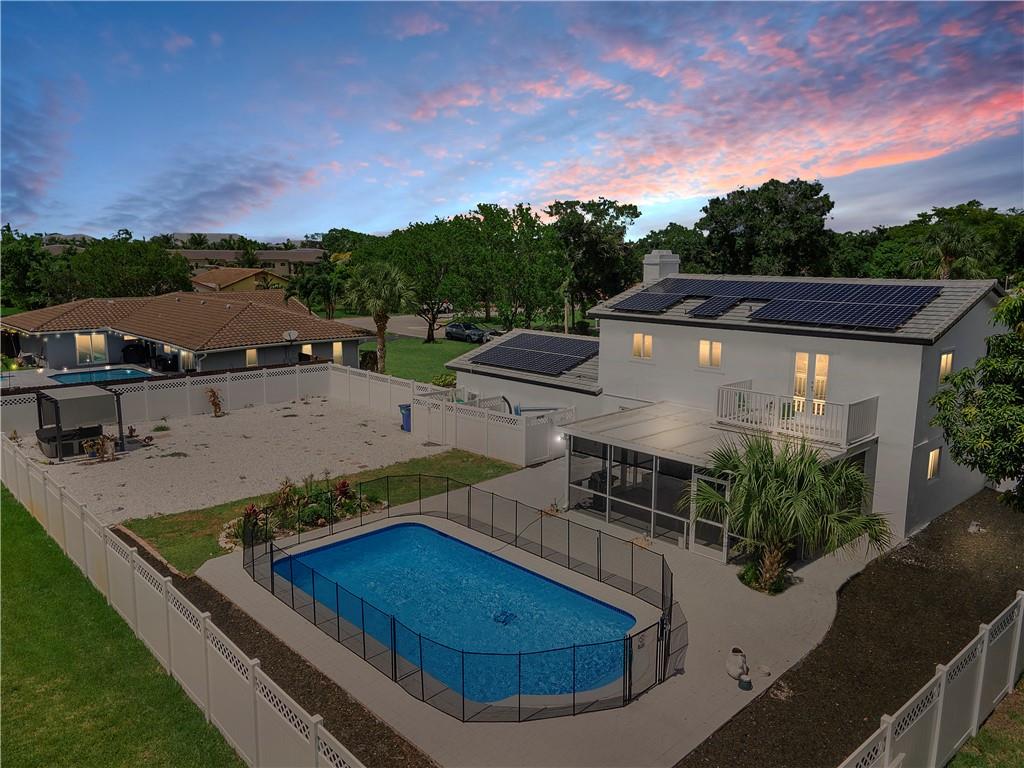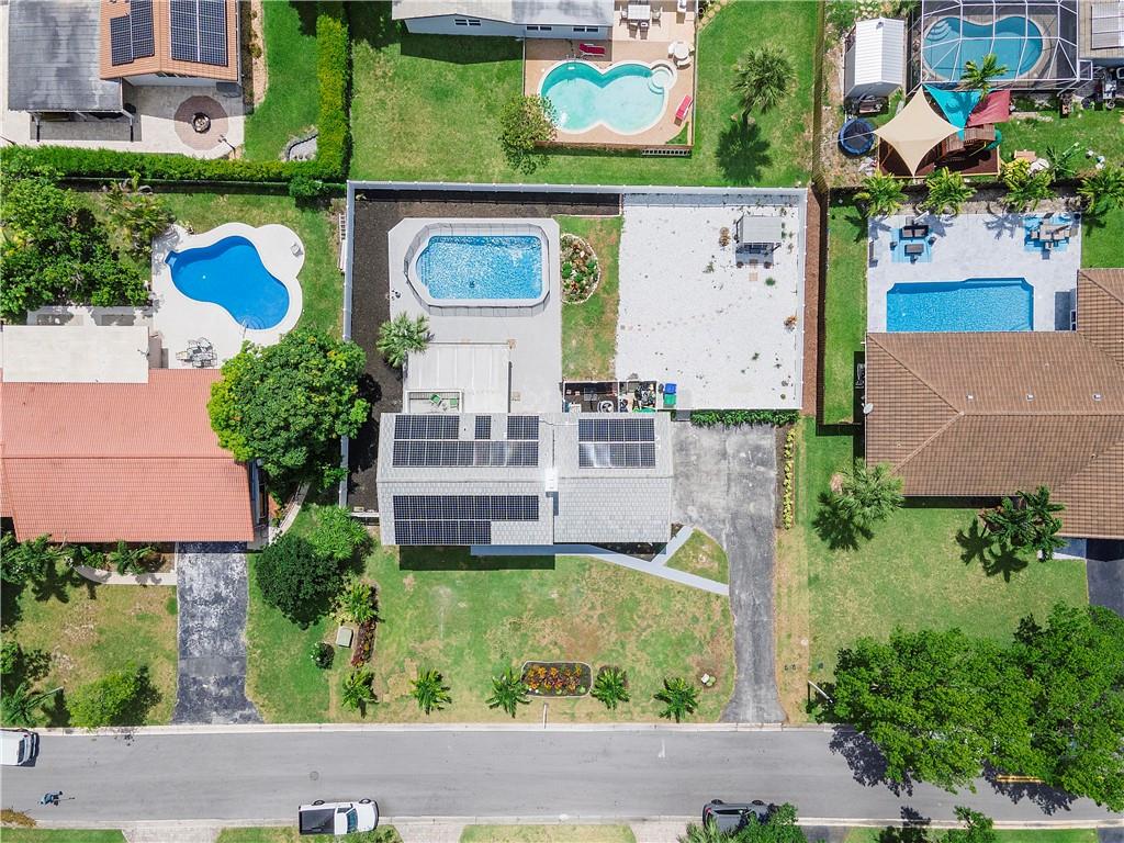 Welcome to a modern redesign in Village Green! This spacious property boasts: freshly painted exterior & new landscaping, New Roof (2021), New impact windows/doors, New solar panels (2022), New A/C, New PVC Fence w/4 gates & storage. Tropical & low maintenance back yard complete w/private outdoor pool shower, pool safety fence, New Hawaiian blue pool surface w/salt-water system, pergola w/brand New hot tub! New spray foam insulation in attic, New water heater, new top of the line high efficiency LG washer/dryer w/self-adjust timing. Top of the line Magic Glass hurricane windows that provide insulation, protection from storms & security. All windows are double tinted for energy conservation and privacy. NO hoa! Walk to CS Charter School & NW Regional library 1 block away.