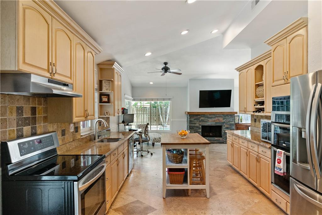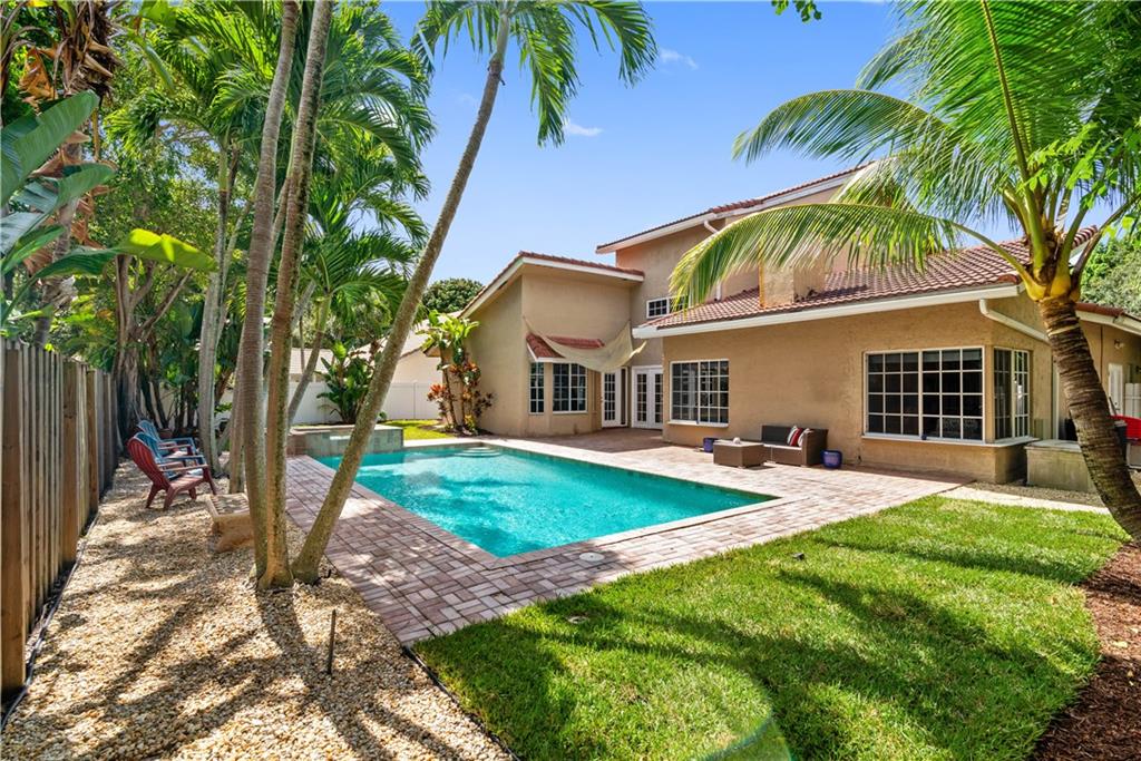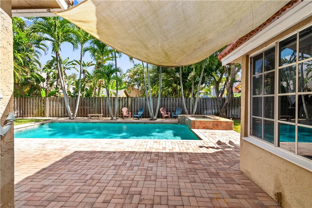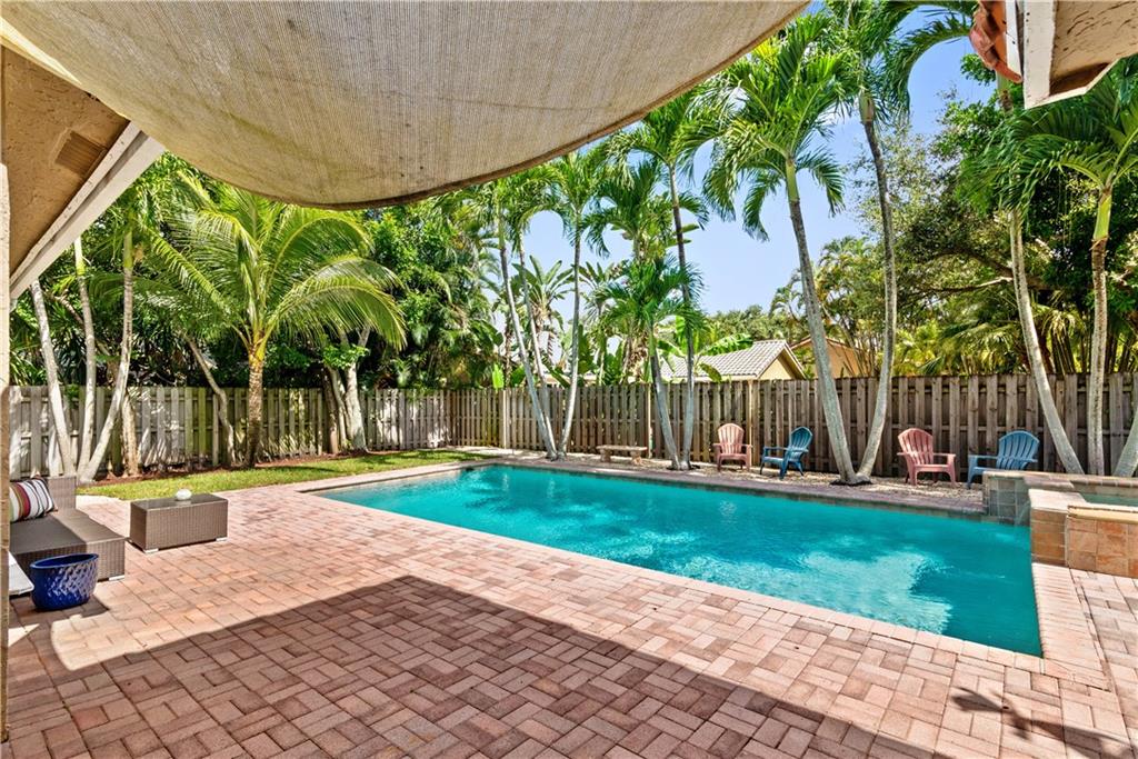Come see this beautiful pool home in the desirable Colonnade. As you drive in you will see the majestic oak trees create a canopy across the streets. This 2,440 sq ft 4 bed 3 full bath home features voluminous ceilings w/plenty of light, Travertine flooring across most of the home, large kitchen with light oak wood cabinets, granite counter-tops, stainless steel appliances, & a breakfast nook area. The adjacent family room is highlighted by the decorative wood burning fireplace. The oversized primary suite has a separate seating area, a walk-in closet & access to the pool area. Home has a utility room with W/D & a 2 car garage. Walk to Boca Tierra Park that has a tennis court, basketball court & playground, close to public/private schools, universities, the mall, I95 Ex & 10mns from beach.